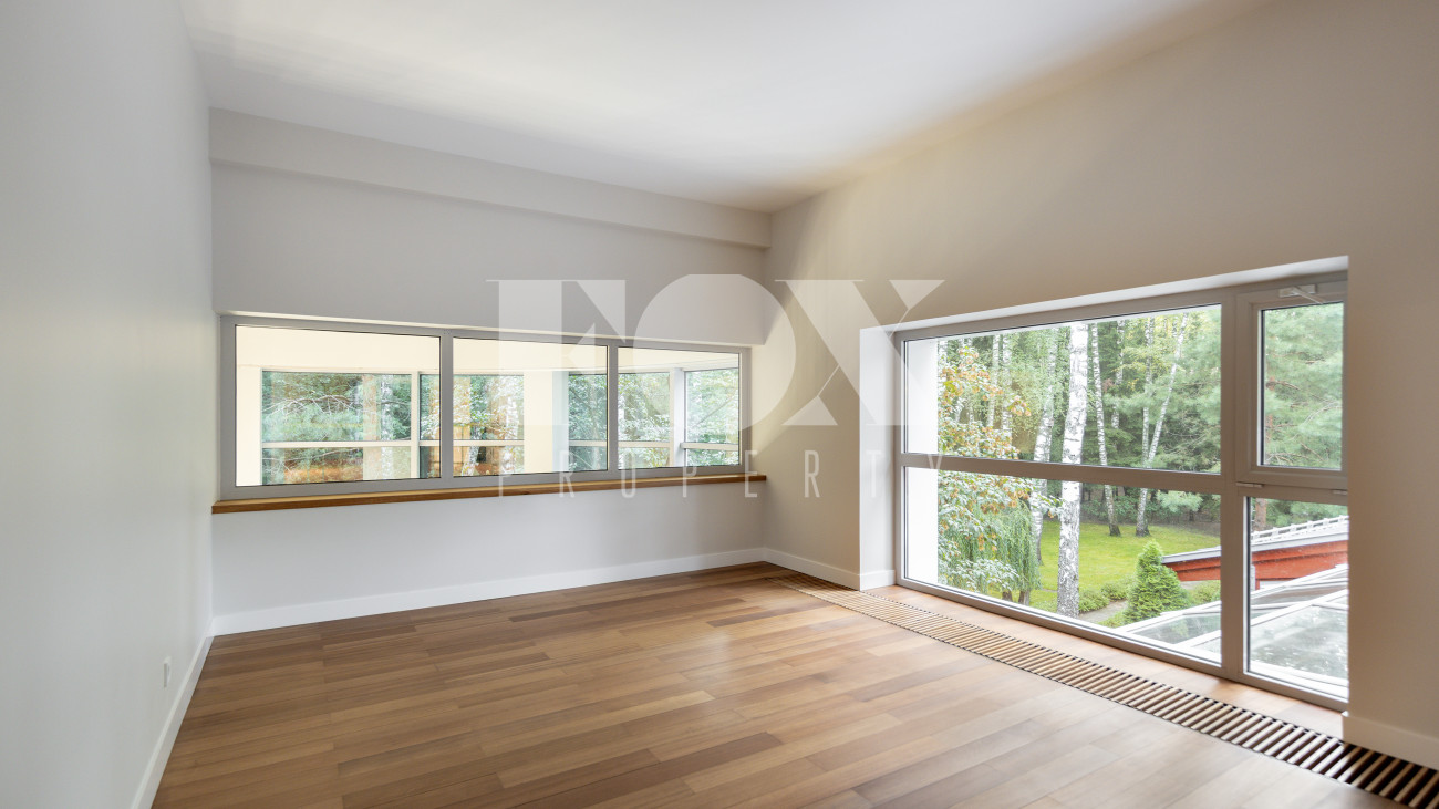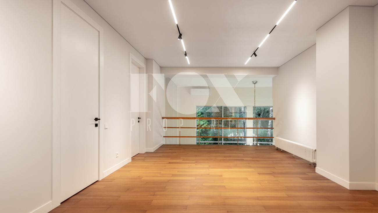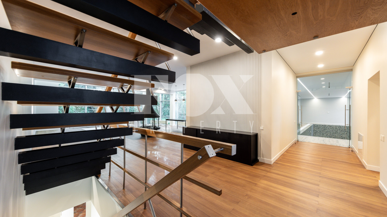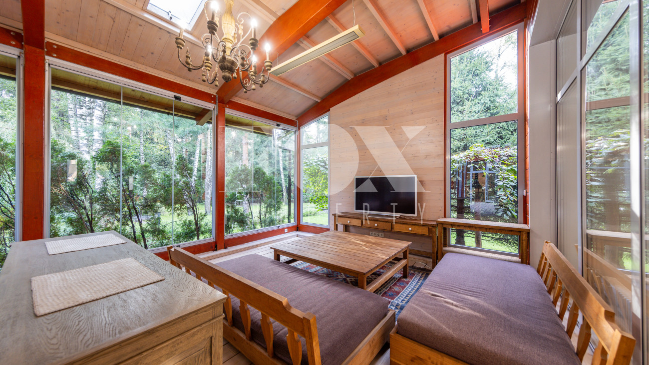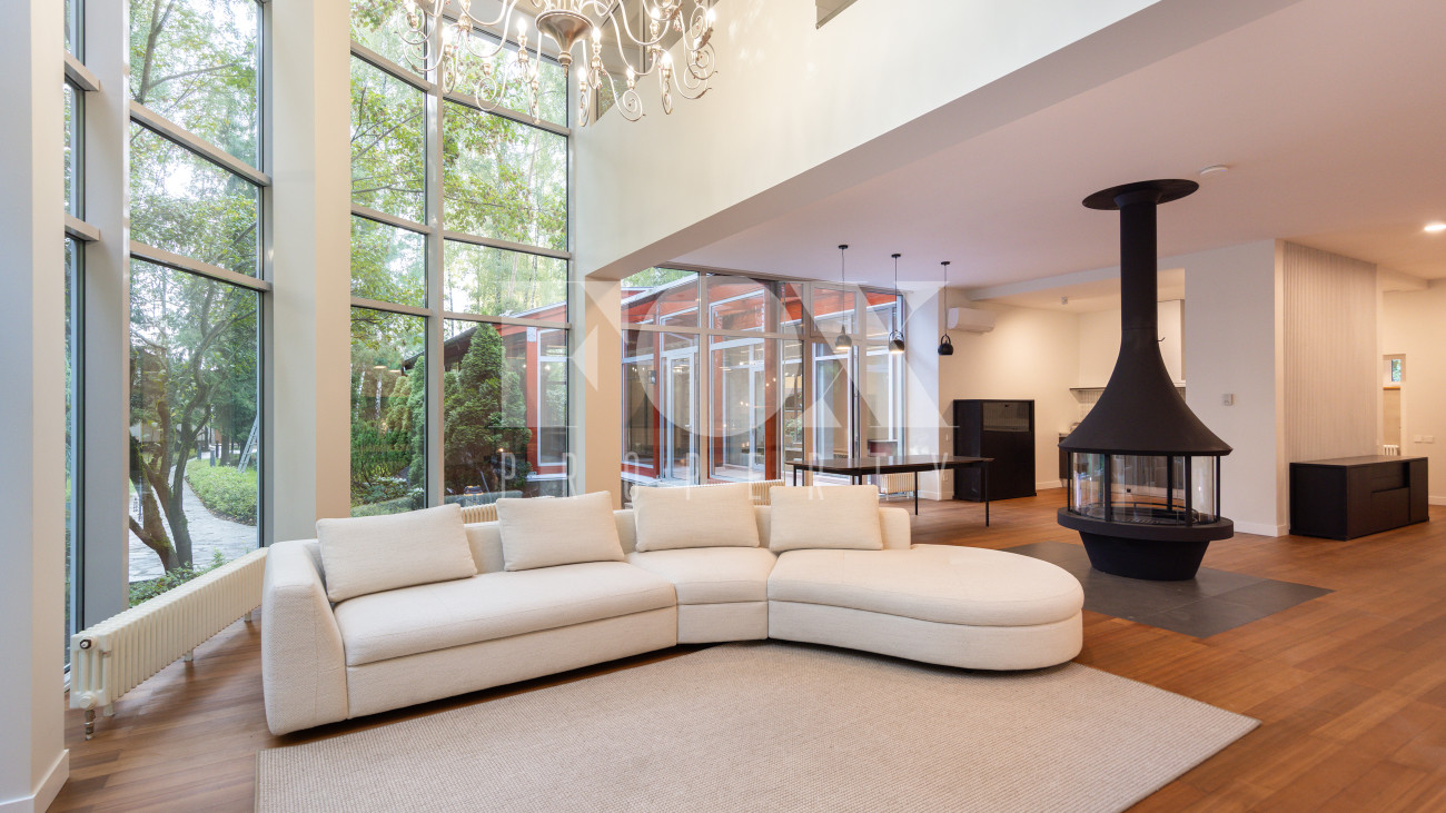 Дом в современном стиле на просторном лесном участке 50 соток в д. Новинки. Современный дизайн, большая площадь остекления, панорамные виды.
