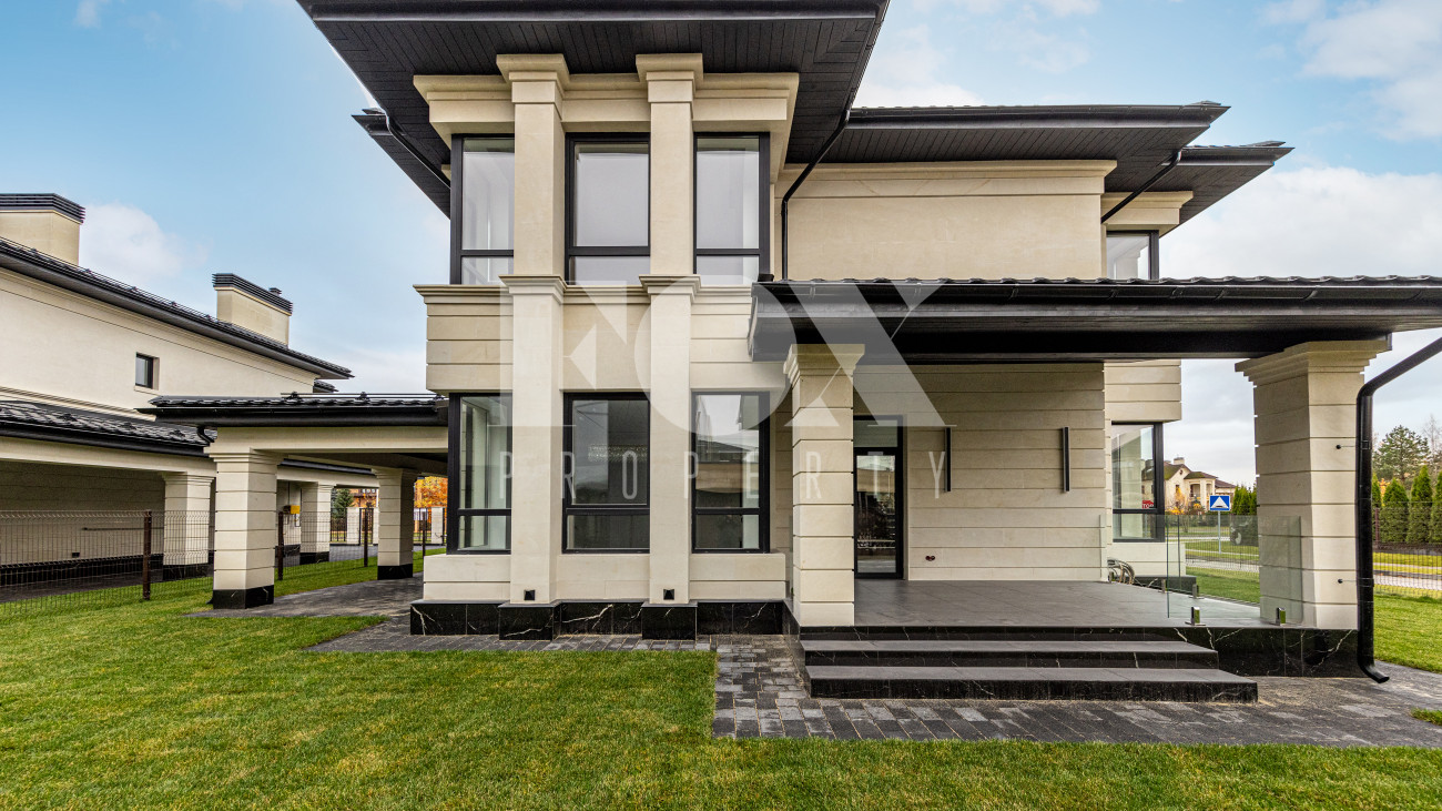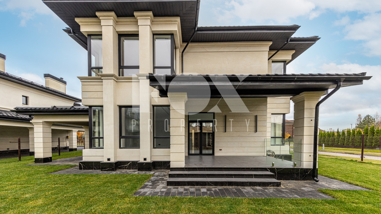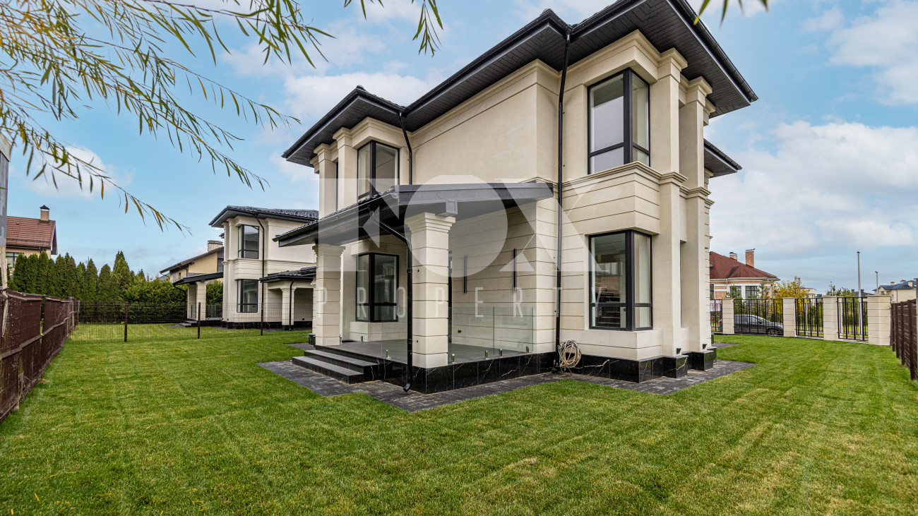 Новый дом в охраняемом коттеджном посёлке «Новорижский». Железобетонный монолитный фундамент с железобетонными межэтажными перекрытиями. Дом возведён из газосиликатного блока. Фасад - известняк, ночная подсветка дома. На участке рулонный газон. Летняя терраса. Система «умное отопление». Разводка кондиционирования по всему дому. Первый этаж, второй этаж холл и с/у - тёплый пол. Подоконники и лестница выполнены из камня. Навес на 2 автомобиля. Посёлок с широкими дорогами из брусчатки, в 24 км от МКАД, есть два пруда с прогулочными территориями, волейбольная площадка с кварцевым песком, детская и универсальная спортивная площадки, детский сад.