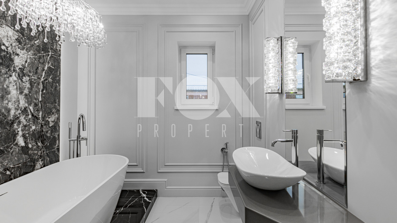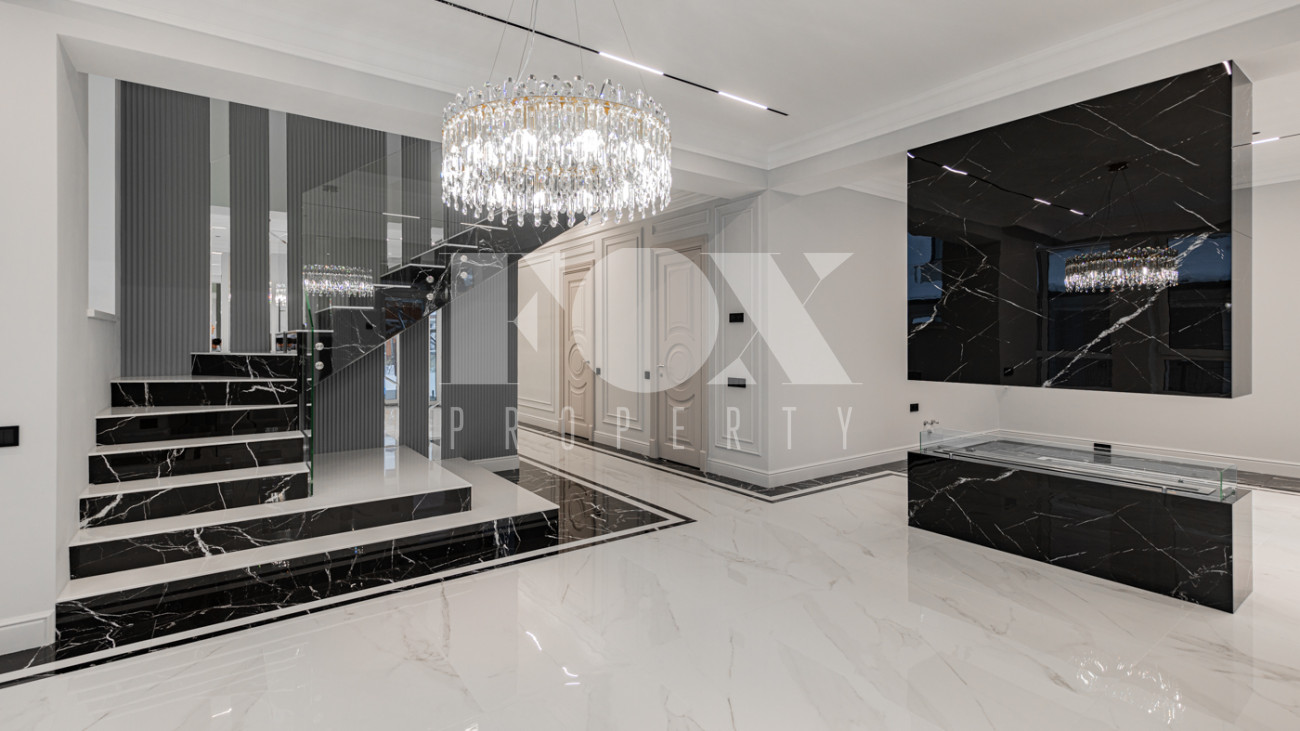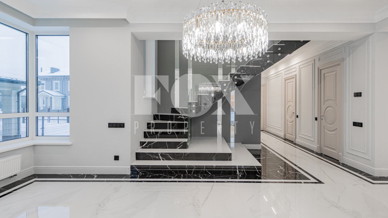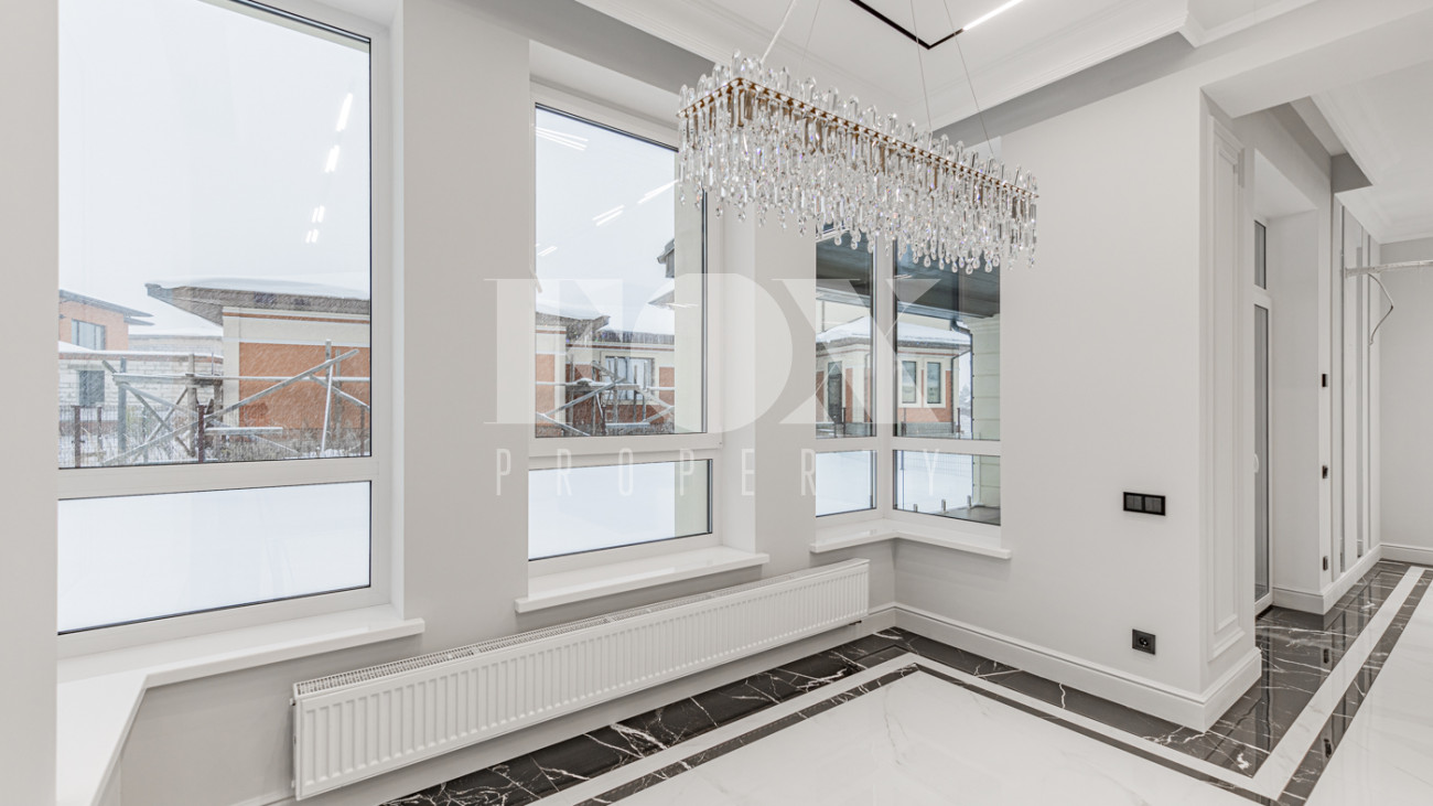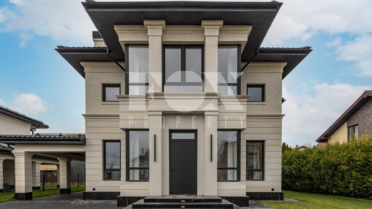 Новый дом в охраняемом коттеджном посёлке «Новорижский». Железобетонный монолитный фундамент с железобетонными межэтажными перекрытиями. Дом возведён из газосиликатного блока. Фасад - известняк, ночная подсветка дома. На участке рулонный газон. Летняя терраса. Система «умное отопление». Разводка кондиционирования по всему дому. Первый этаж, второй этаж холл и с/у - тёплый пол. Подоконники и лестница выполнены из камня. Навес на 2 автомобиля. Посёлок с широкими дорогами из брусчатки, в 24 км от МКАД, есть два пруда с прогулочными территориями, волейбольная площадка с кварцевым песком, детская и универсальная спортивная площадки, детский сад.