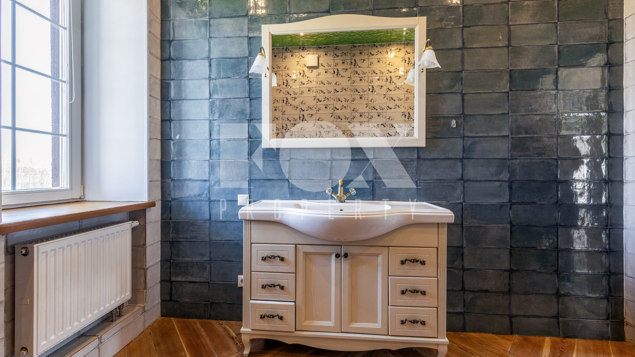 Дом с 4 спальнями в охраняемом коттеджном поселке Онегино. В отделке использованы натуральные материалы (дуб, лиственница). Участок правильной формы, окружен зеленью. Отдельно расположена деревянная баня, теплица, зона барбекю, а также ухоженный фруктовый сад с декоративными хвойными деревьями, цветниками. Дополнительно предусмотрен навес для автомобиля.