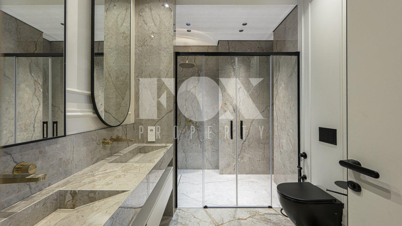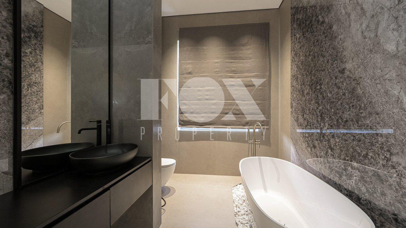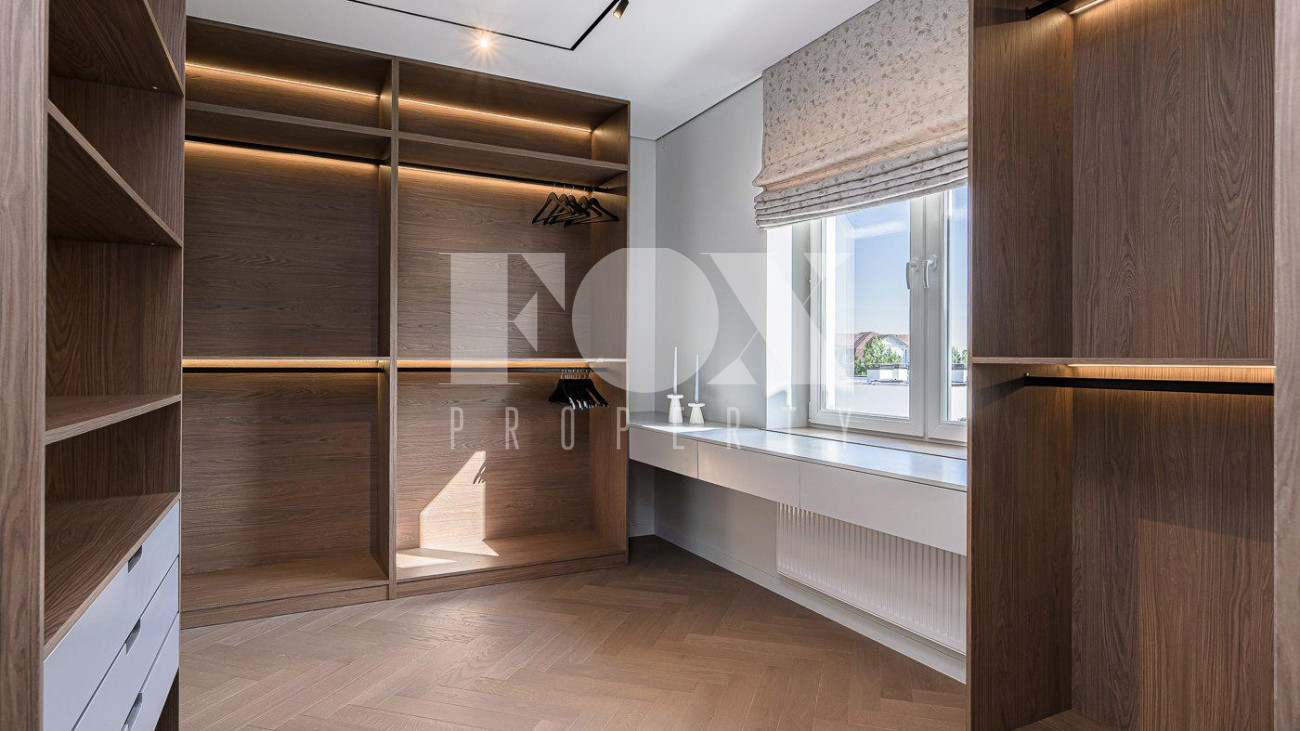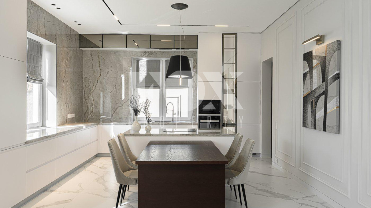 Фасад дома отделан высококачественным светлым натуральным камнем. Кровля из премиальной композитной черепицы. В доме продуманная планировка. На участке расположен вместительный гараж на 2 м/м: 1 этаж: 2 машиноместа, котельная, прихожая; 2 этаж: блок персонала.
