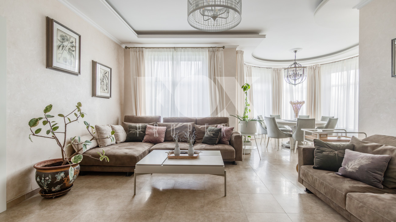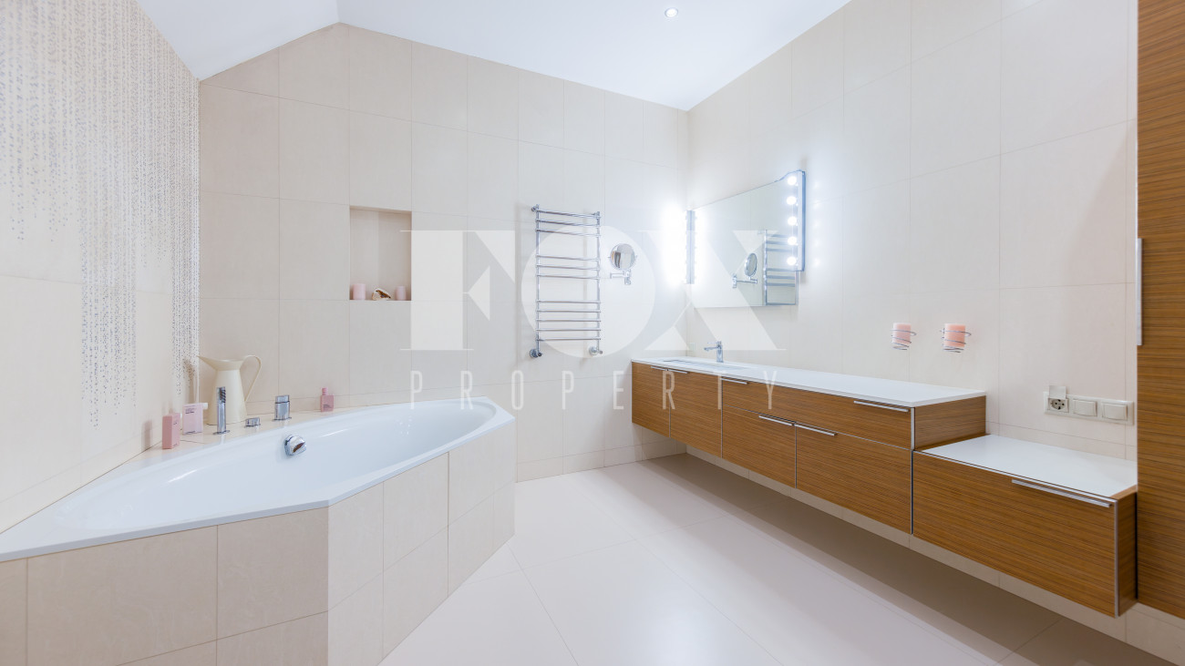 В продаже светлый и уютный дом всего в 25 км по Новорижскому шоссе. Состояние идеальное! Расположен на дальней линии деревни Падиково, в тихом и приватном мини поселке на 6 домов. Дом кирпичный с монолитными перекрытиями. Кровля - натуральная черепица. Внутри сделан свежий ремонт меньше года назад. Дом полностью меблирован и готов к проживанию. Обставлен дизайнерской итальянской мебелью. Новая кухня Scavolini. Установлены кондиционеры, теплые полы. Дом с отличной современной планировкой. Есть отдельный гостевой блок (блок для персонала) со своим входом и кухней. Подключен резервный генератор. Очень красивый и ухоженный участок . Установлен летний бассейн. Высажены хвойные, плодовые деревья и кустарники. Парковка на 3 м/м. Есть теплица. В поселке все соседи проживают постоянно. В шаговой доступности продуктовый магазин, озеро, КСК Дивный. В соседнем поселке расположен филиал гимназии им. Пушкина. В 1,5 км находится Novaya Riga Outlet Village и вся необходимая развитая инфраструктура в п. Покровское. В 7-10 мин езды п.Павловская Слобода, технолицей им. Долгих.