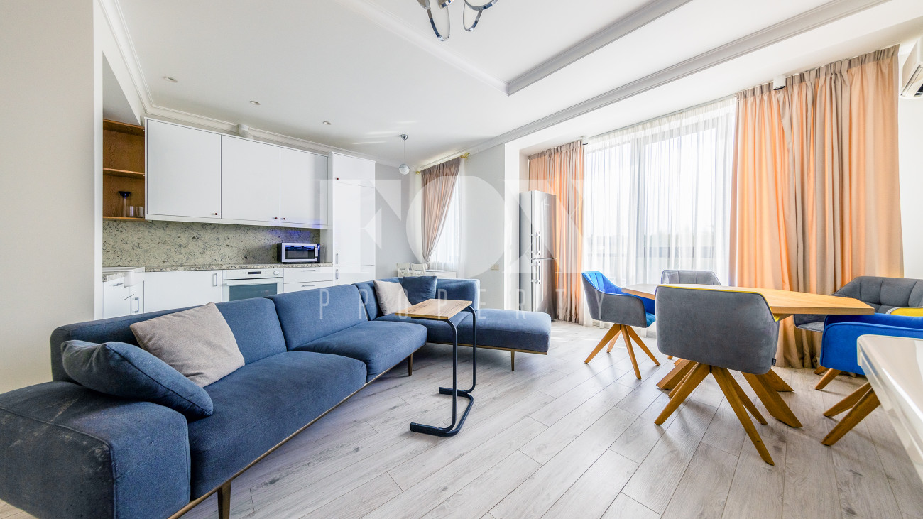 В продаже светлая и уютная квартира в элитном охраняемом ЖК «Парк Авеню». Полностью меблирована и готова к проживанию. Состояние идеальное. Сделан качественный, дорогой ремонт. Установлены кондиционеры. Большая парковка перед домом.