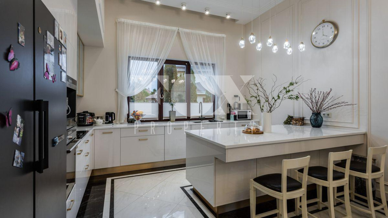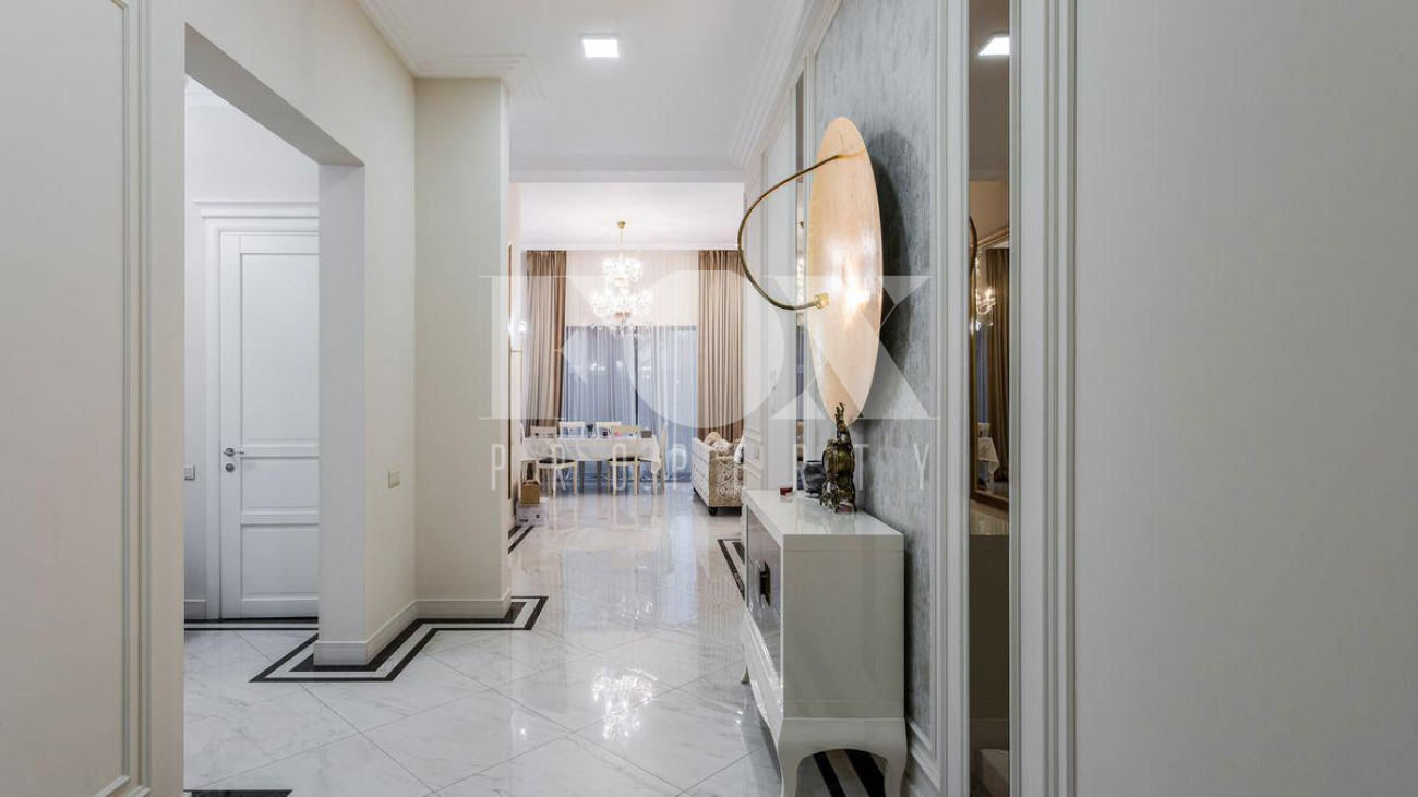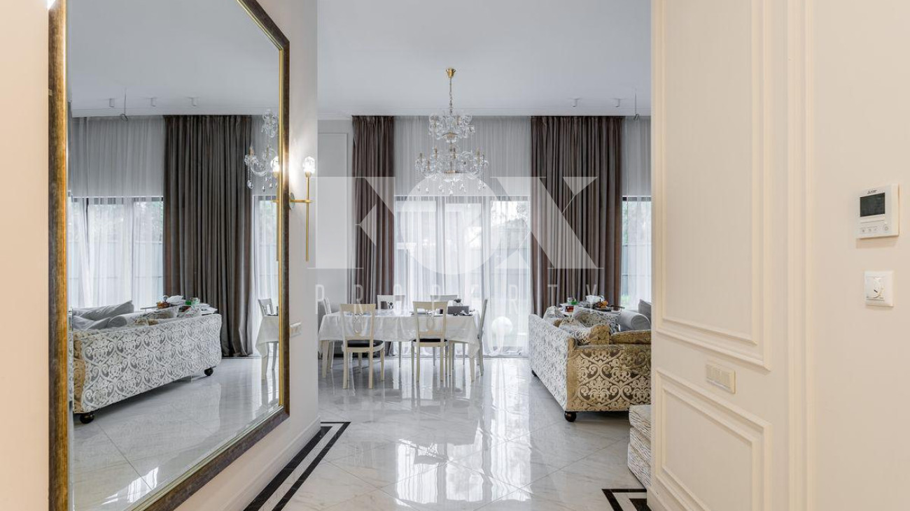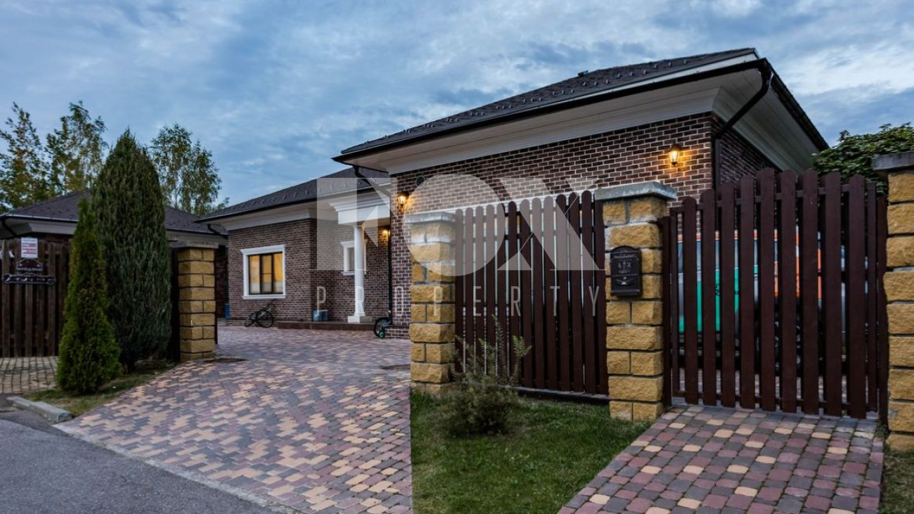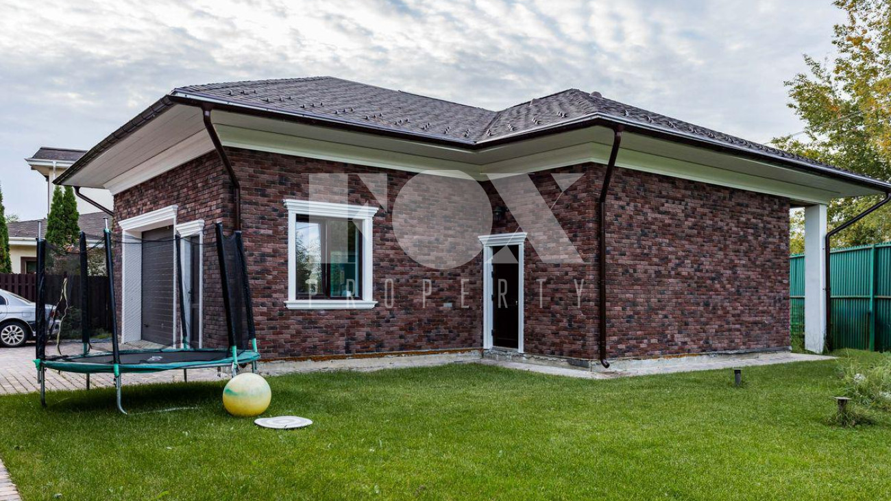 Одноэтажный дом с отделкой под ключ, современный интерьер, качественная мебель. В отделке использованы премиальные материалы. Есть терраса с мебелью. Снаружи отделка облицовочным кирпичом. Все коммуникации центральные.