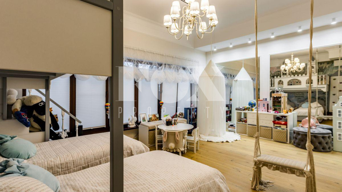 Участок 14,6 соток с ландшафтным дизайном. Есть гараж на 2 машиноместа с 2-комнатной квартирой для персонала.