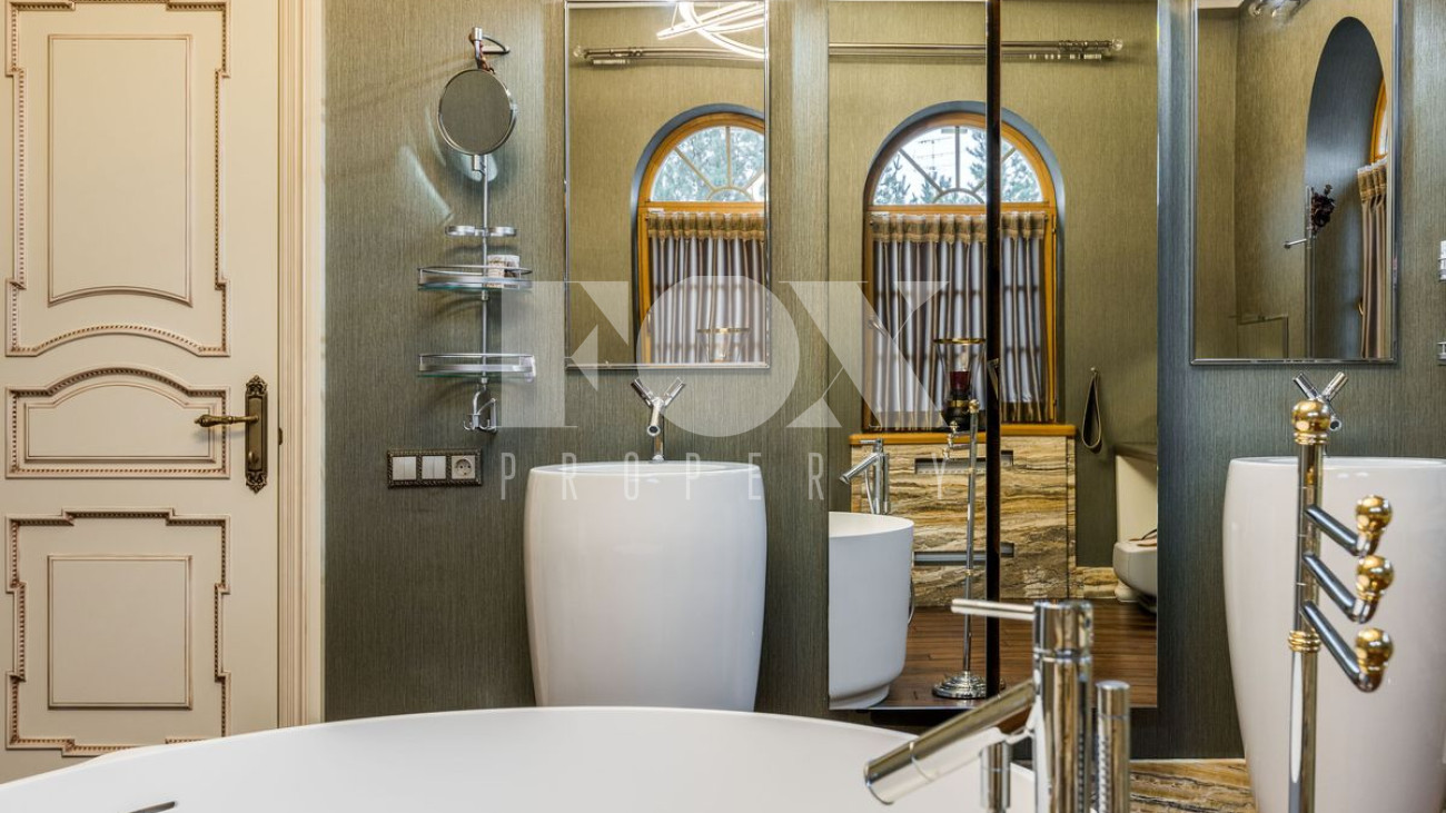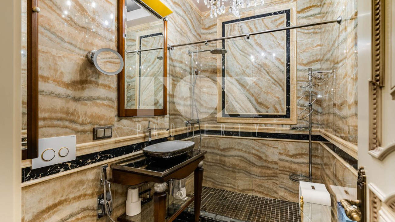 Интерьер выполнен в эксклюзивном ремонте с использованием премиальных материалов: натурального дерева, мрамора, высококачественной керамики и тканей. Мебель от итальянских производителей сочетает стиль и функциональность, а бытовая техника Miele обеспечивает надежность и энергоэффективность.