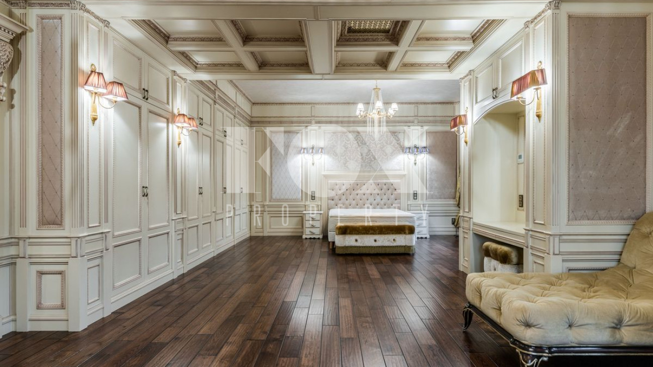 Второй этаж ориентирован на приватные спальни и рабочие зоны: парадный холл с удобной лестницей, главная мастер- спальня площадью около 50 кв. м с собственной гардеробной на 20 кв. м и просторной ванной комнатой (душевая кабина, ванна, биде), две дополнительные спальни (каждая по 25–30 кв. м) с индивидуальными ванными комнатами для по