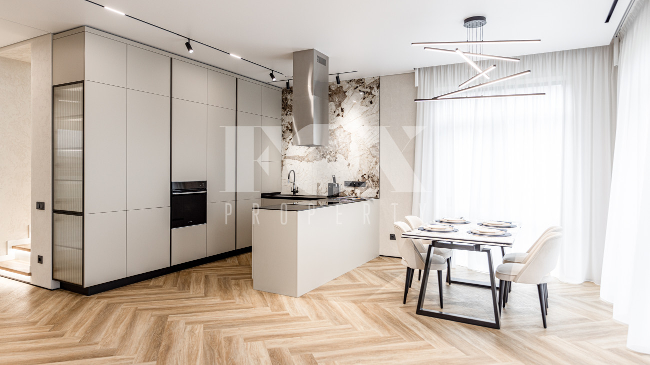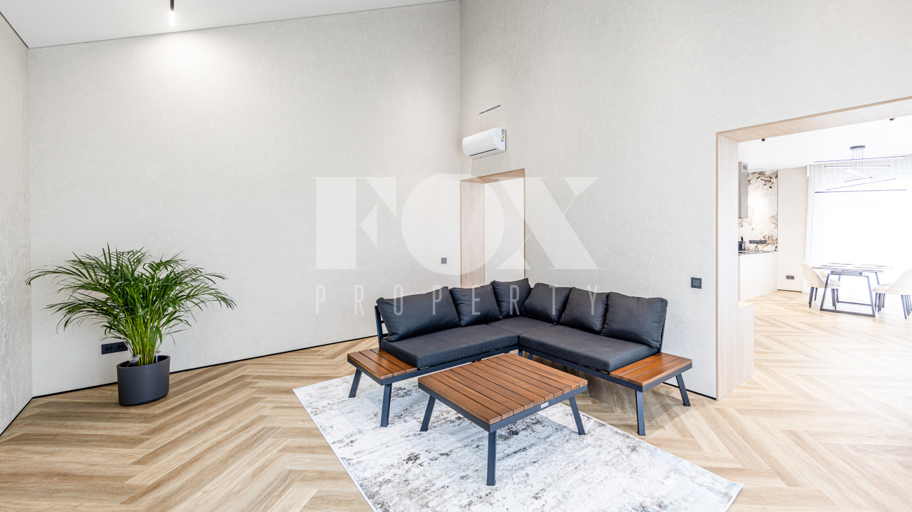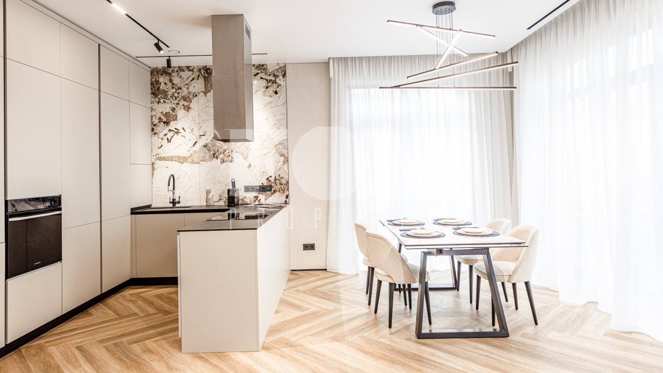 - Просторная кухня-гостиная с панорамными окнами включает 4 зоны: кухня с современной встроенной техникой, обеденная зона с большим столом на 8-12 человек, уютная гостиная с биокамином и ТВ-зоной, скрытая зона отдыха (хобби-рум), пространство, которое можно адаптировать под ваши увлечения: геймерский уголок, домашний кинотеатр + VR, детская игровая зона, спортивная зона, творческая мастерская, музыкальная студия.