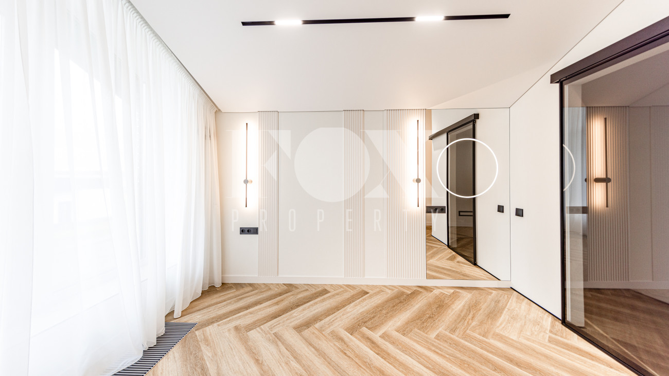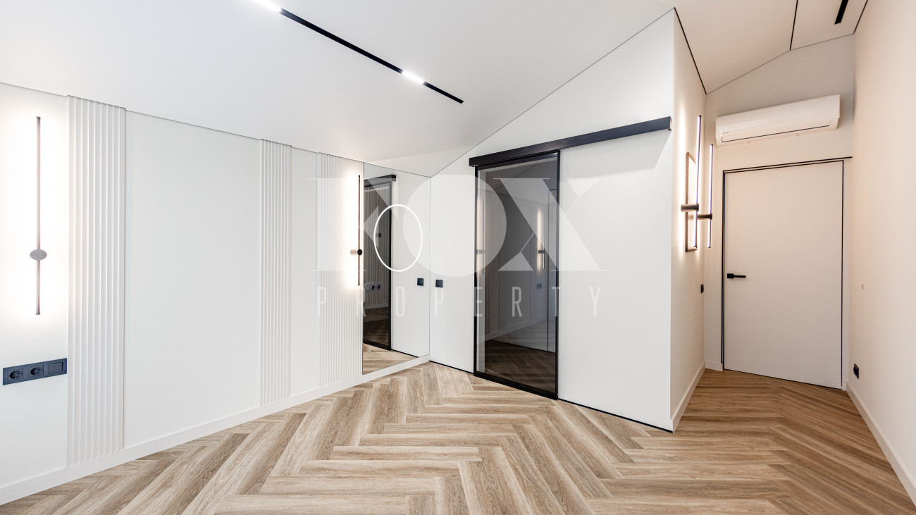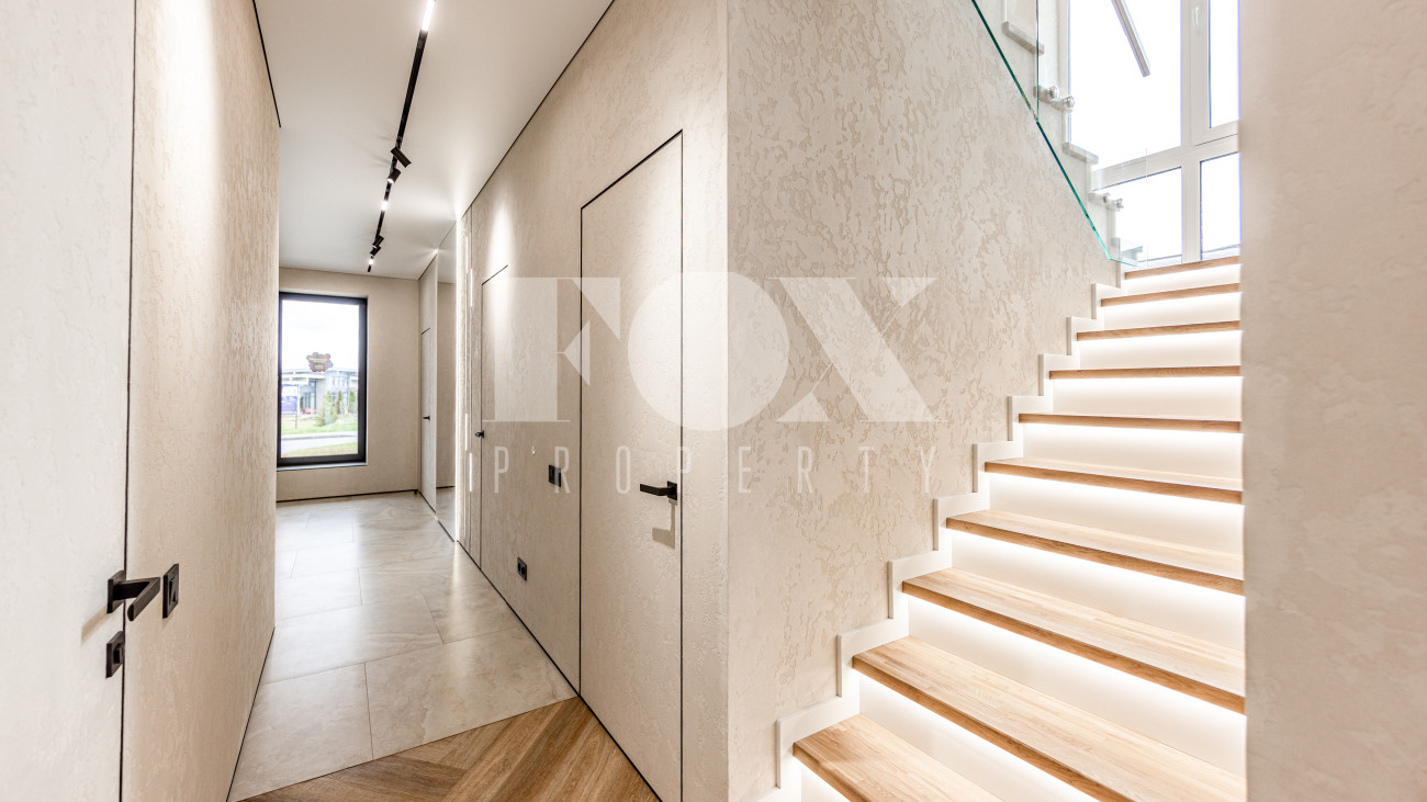 Приватная зона на втором этаже включает 4 спальни, из которых 2 — мастер-спальни с собственными ванными комнатами и гардеробными.