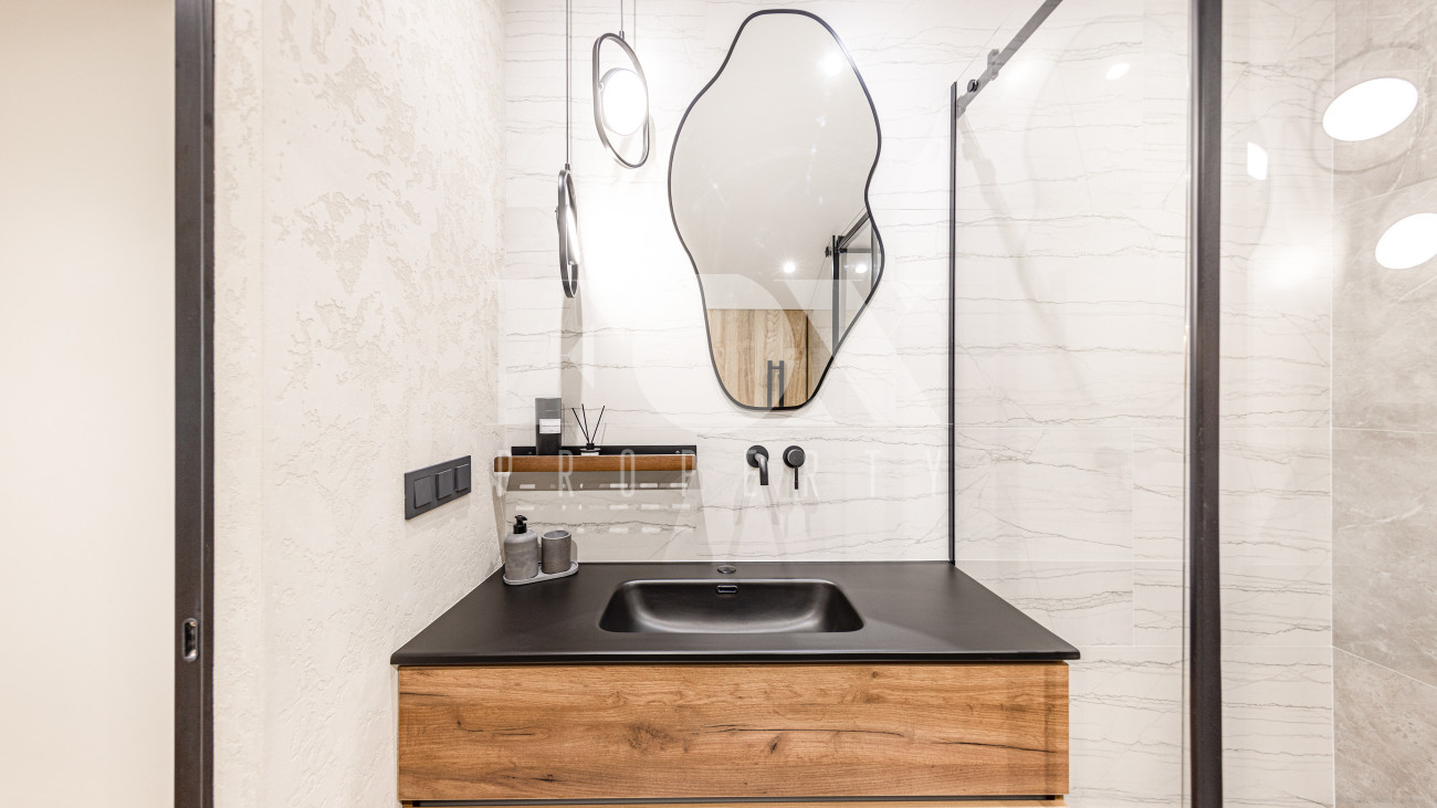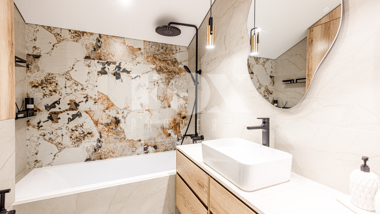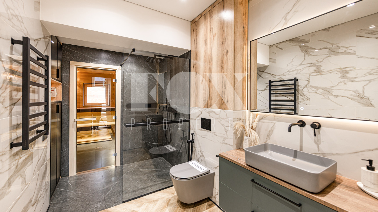 - отделка стен в санузлах: плитка от брендов Vitra, ARTCER (Италия) и Creatile;