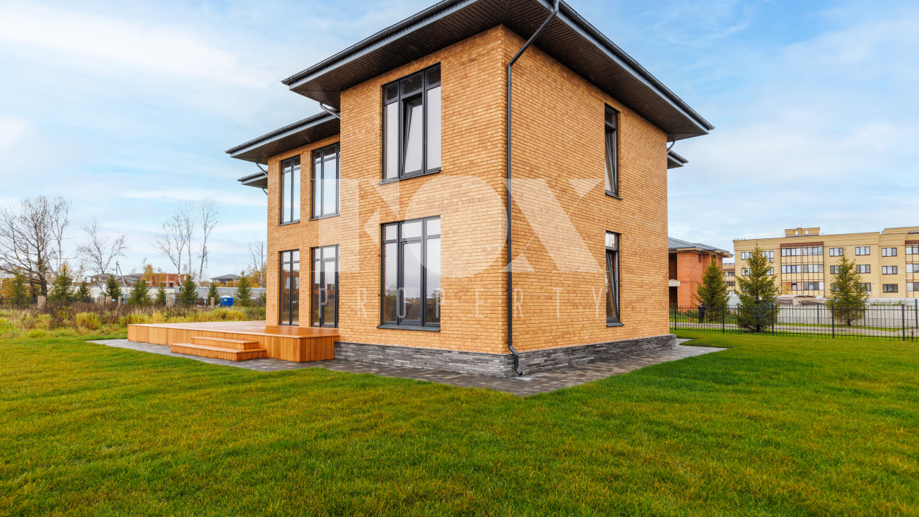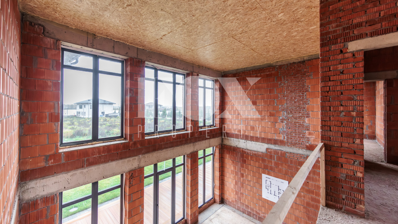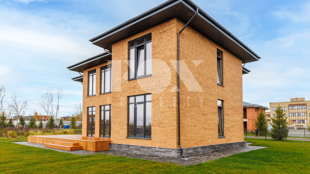 Новый 2-этажный кирпичный дом площадью 245 кв.м в стиле Райт со вторым светом и большой площадью остекления расположен в КП бизнес-класса Павловы озера, 14 км от МКАД по Новорижскому шоссе. Возведенный из керамики Porotherm и облицованный кирпичом премиальной коллекции, особняк в стиле Райт создан для тех, кто понимает истинную ценность непроходящих трендов. Панорамные окна в пол, поднимающиеся на высоту более шести метров, стирают границы между интерьером и бескрайним небом. А из спален на втором этаже открывается вид на озеро. Второй свет наполняет гостиную солнцем и становится светлой доминантой, собирающей воедино пространство этого дома. Два полноценных этажа, 3 мастер-спальни с ванными и гардеробными комнатами, кабинет, гараж с прямым доступом в холл, хозяйственные помещения, делающие быт комфортным. Дом оснащен системой естественной вентиляции, создающей атмосферу, в которой легко дышать. Участок 9,44 сотки, ровный, правильной формы. Дом в комплектации "Теплый контур": все стены, включая внутренние перегородки, выполнены из полнотелого кирпича; мягкая кровля; 5-ти камерные окна с двухсторонней ламинацией. Площадь остекления - более 70 кв.м. Дополнительно: рулонный газон премиального класса; терраса из натуральной лиственницы сорт экстра.