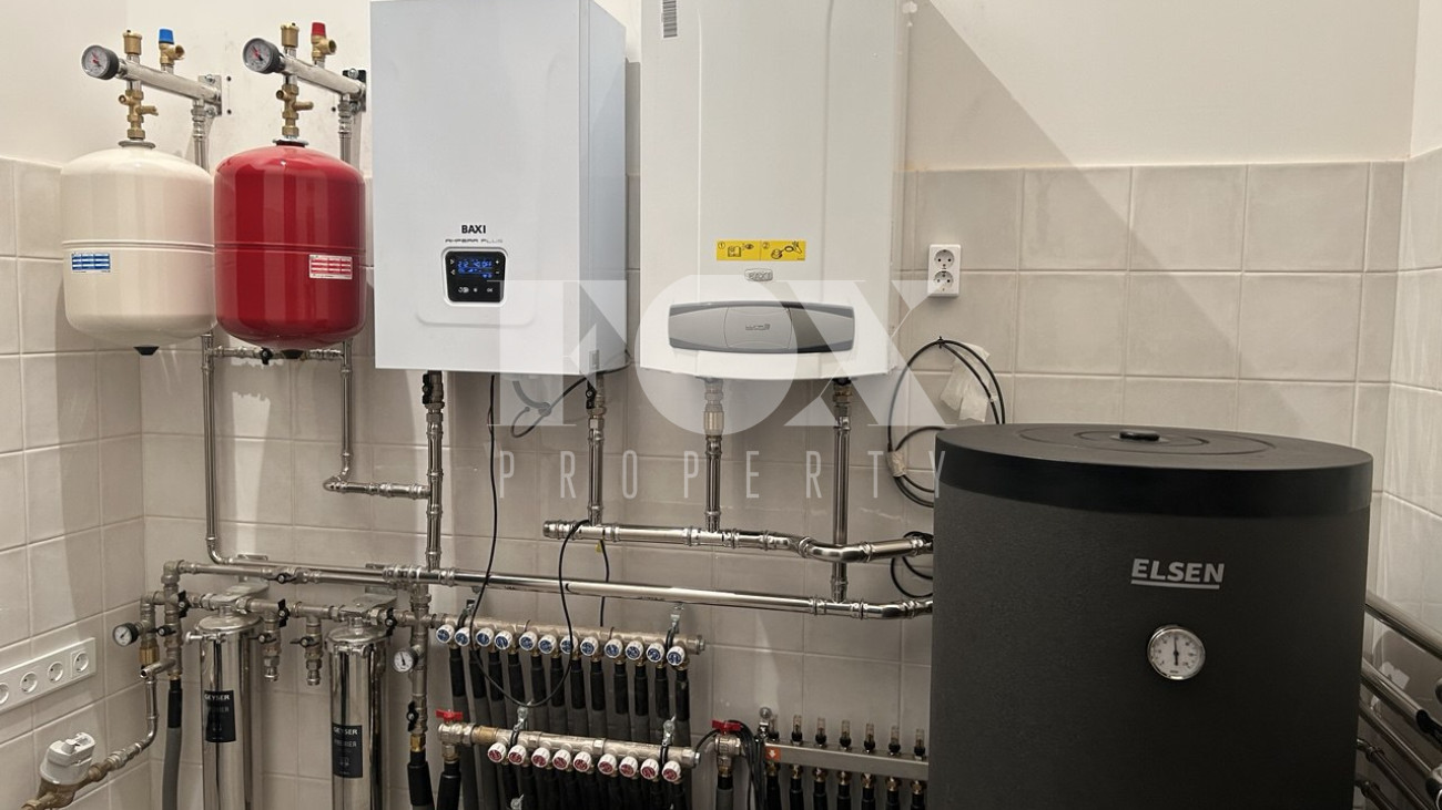 Дом построен с использованием материалов премиум-класса: керамические блоки, облицовочный кирпич ручной формовки, монолитные конструкции, энергоэффективные окна Alumark и утеплённая плоская кровля. Дом в высокой степени готовности со всей премиальной инженерией: автоматизированная котельная, система климат-контроля, тёплый пол по всему дому, внутрипольные конвекторы и полотенцесушители. Дополняют картину надёжные системы: утеплённая отмостка, монолитная плита с парковкой на два автомобиля, дренаж и ливневая канализация.
