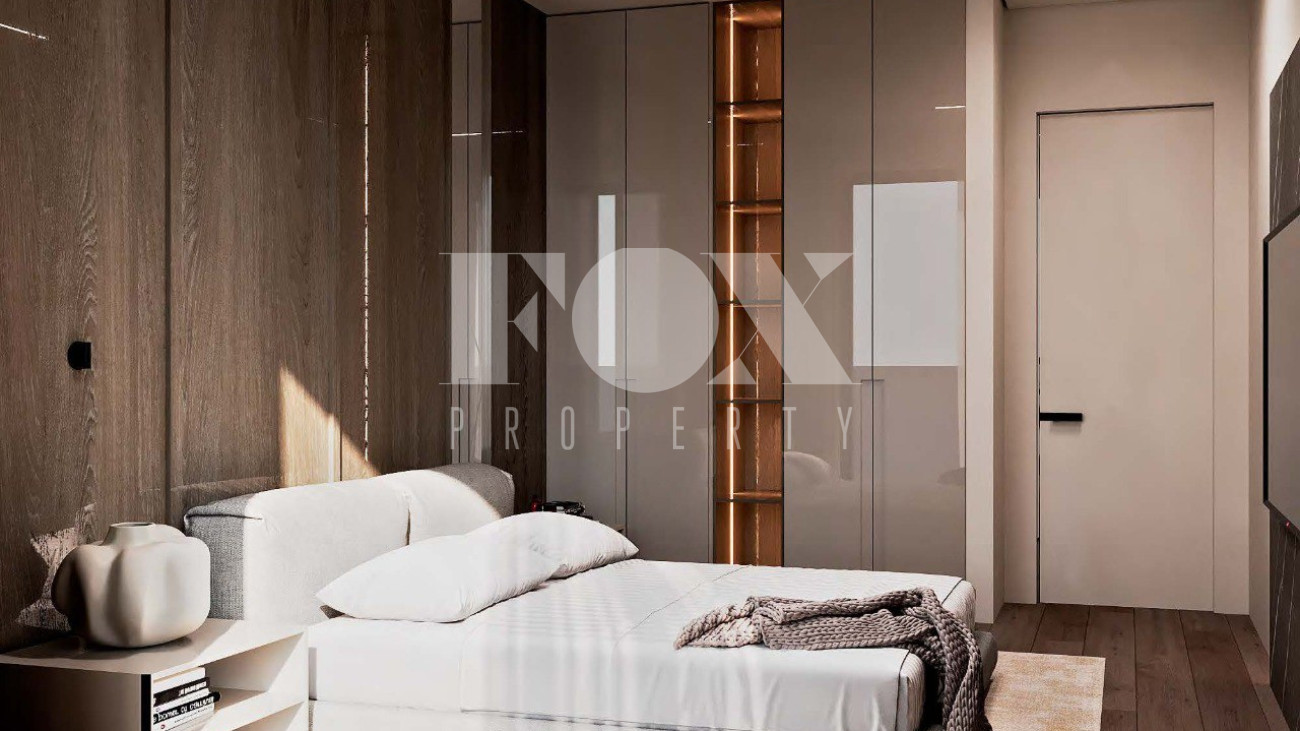 Его сердцем стала роскошная гостиная-столовая-кухня на 55 м² с 4-метровыми потолками и панорамными окнами. Выход на террасу стирает границы между интерьером и природой. В планировке — три спальни, включая просторную мастер-спальню с собственной ванной и гардеробной, а также две дополнительные спальни с отдельным санузлом.