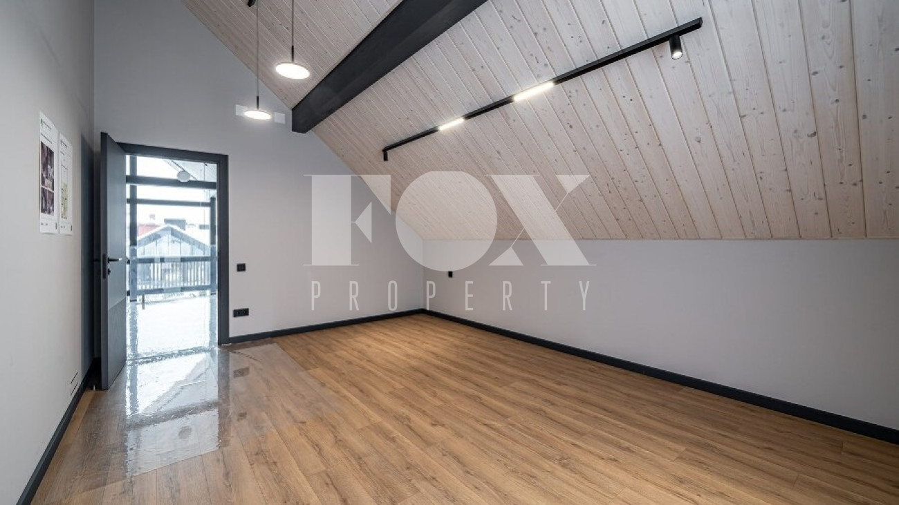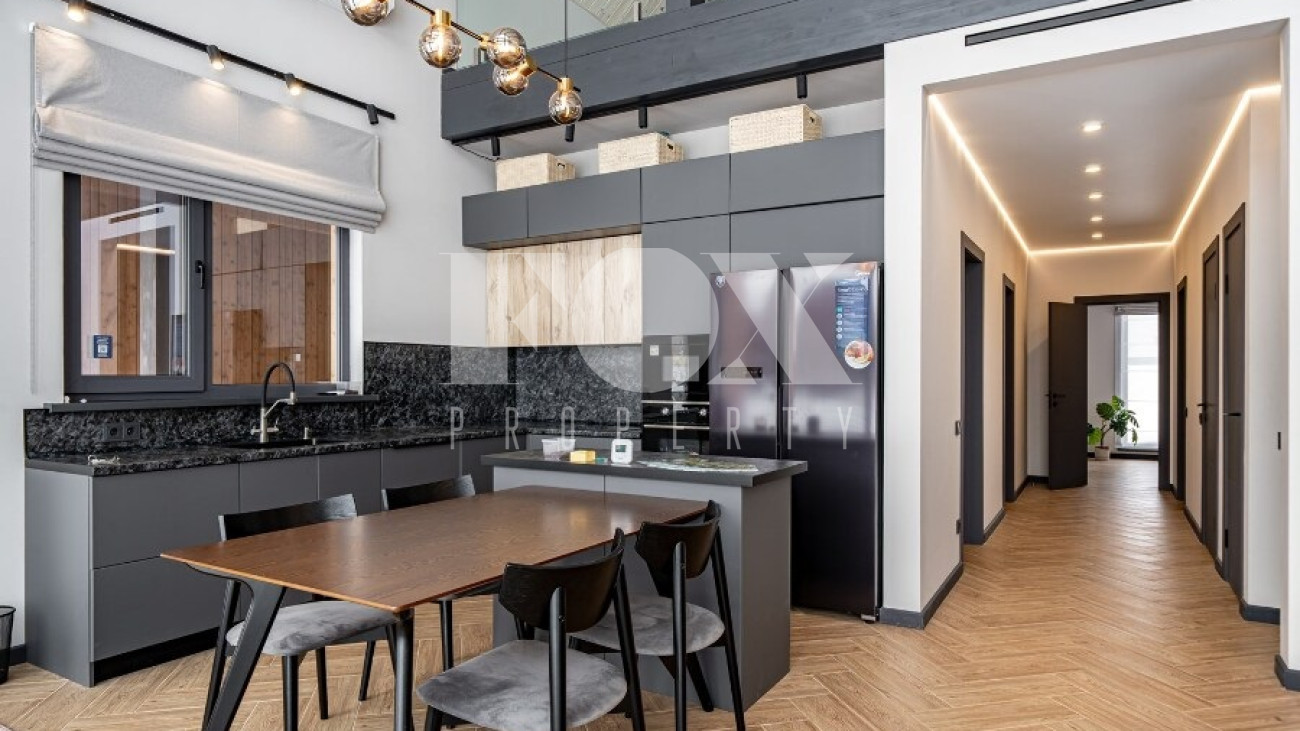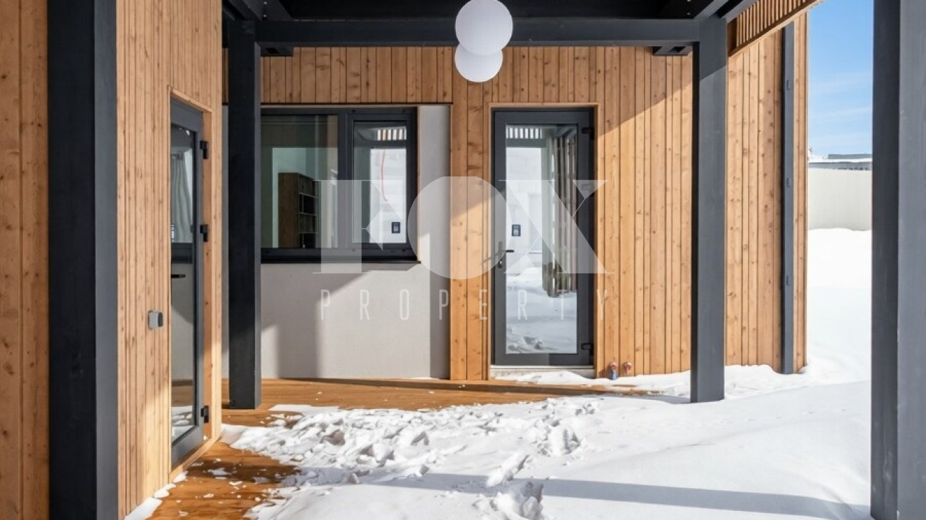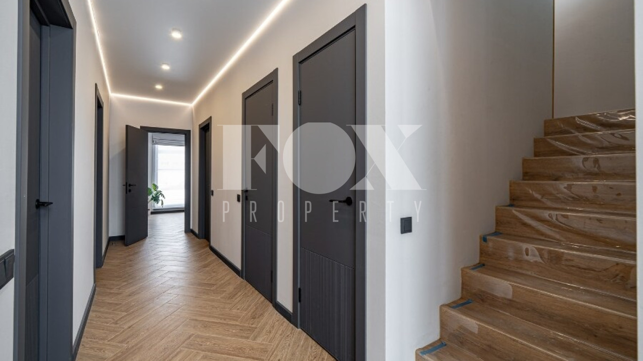 Планировка: 3 спальни, включая мастер-спальню с собственным гардеробом и с/у, две просторные детские комнаты, кабинет/гостевая на первом этаже, 3 с/у, гардеробные и места хранения, уличная терраса, хозблок.