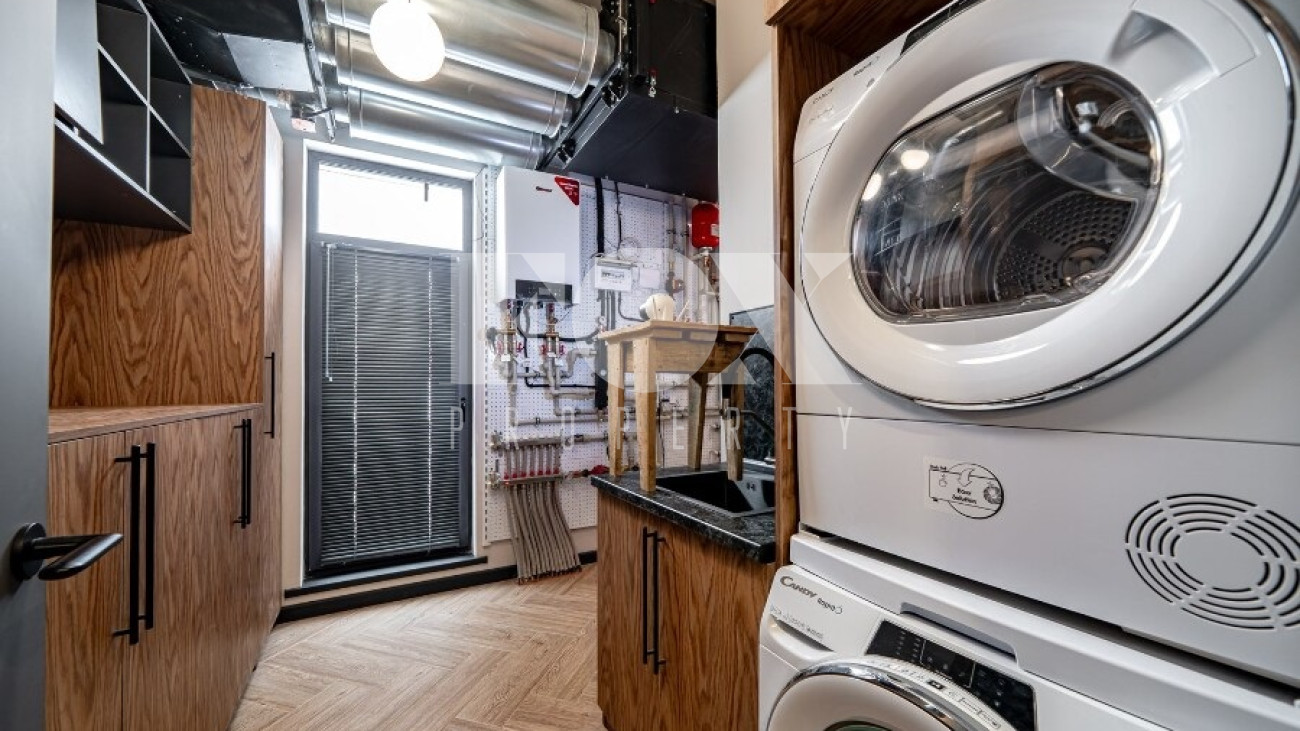 Оснащение: тёплые полы, вентиляция с рекуперацией, кондиционирование, качественная инженерия, усиленная шумоизоляция стен и межэтажного перекрытия.