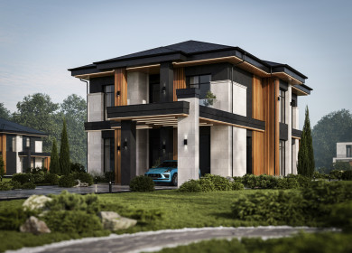 Уютный дом в современном стиле. Коммуникации центральные, охраняемый посёлок, участок полевой.