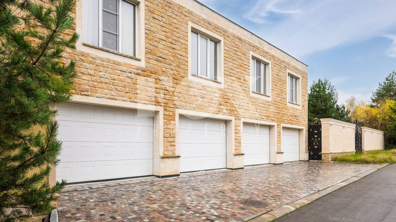Конструктив дома из монолитного железобетона, выполнено утепление внешнего фасада, толщина стен 30 см, сделан дренаж фундамента, фасад отделан декоративным камнем и природным доломитом, декоративные элементы выполнены из известняка. На въезде расположен гараж на 4 м/м с апартаментами для персонала на 2-м этаже. Есть дополнительная парковка на 4 автомобиля.