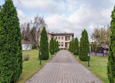 Дом построен из кирпича, в отделке использованы натуральные материалы, такие как травертин, дерево благородных пород, розовый мрамор, стены покрыты венецианской штукатуркой. Кухня оборудована бытовой техникой Bosch, Kuppersberg, Miele, Liebherr.