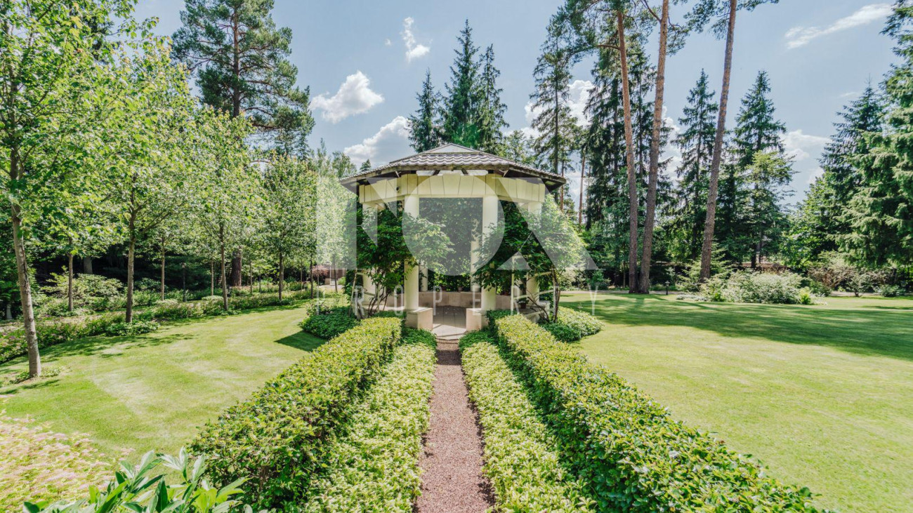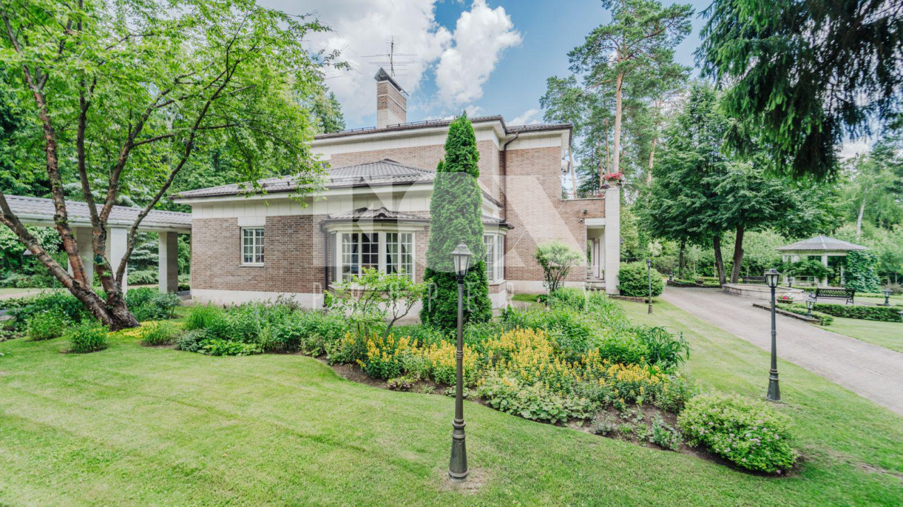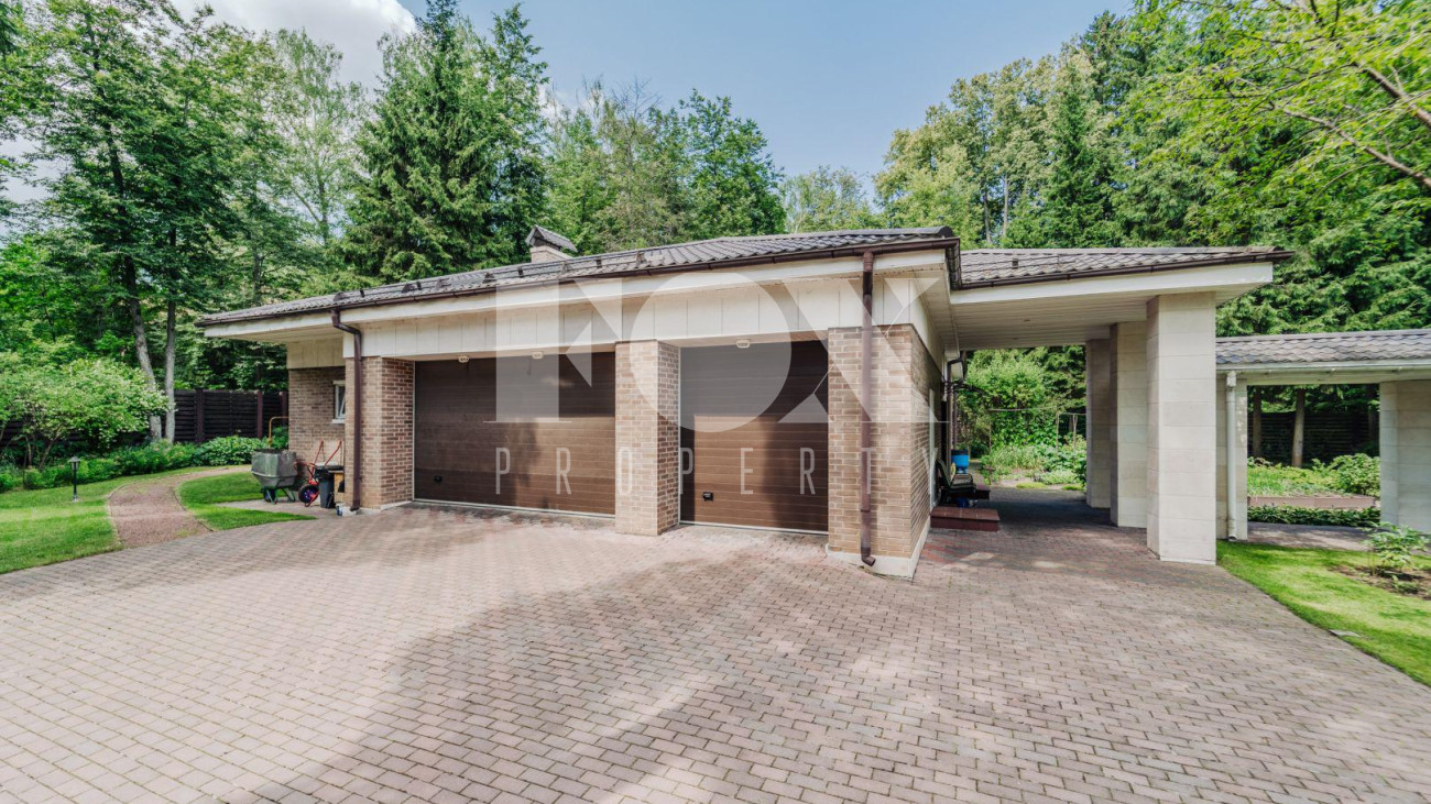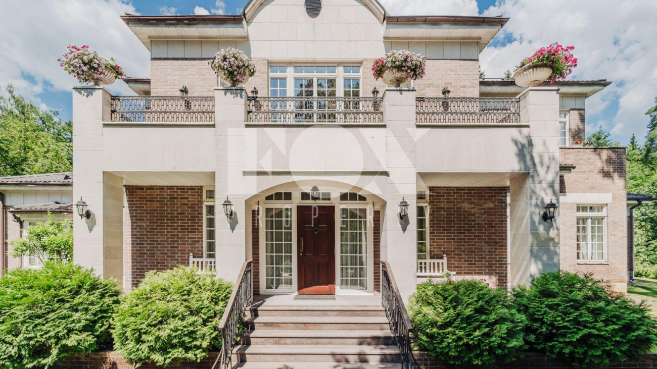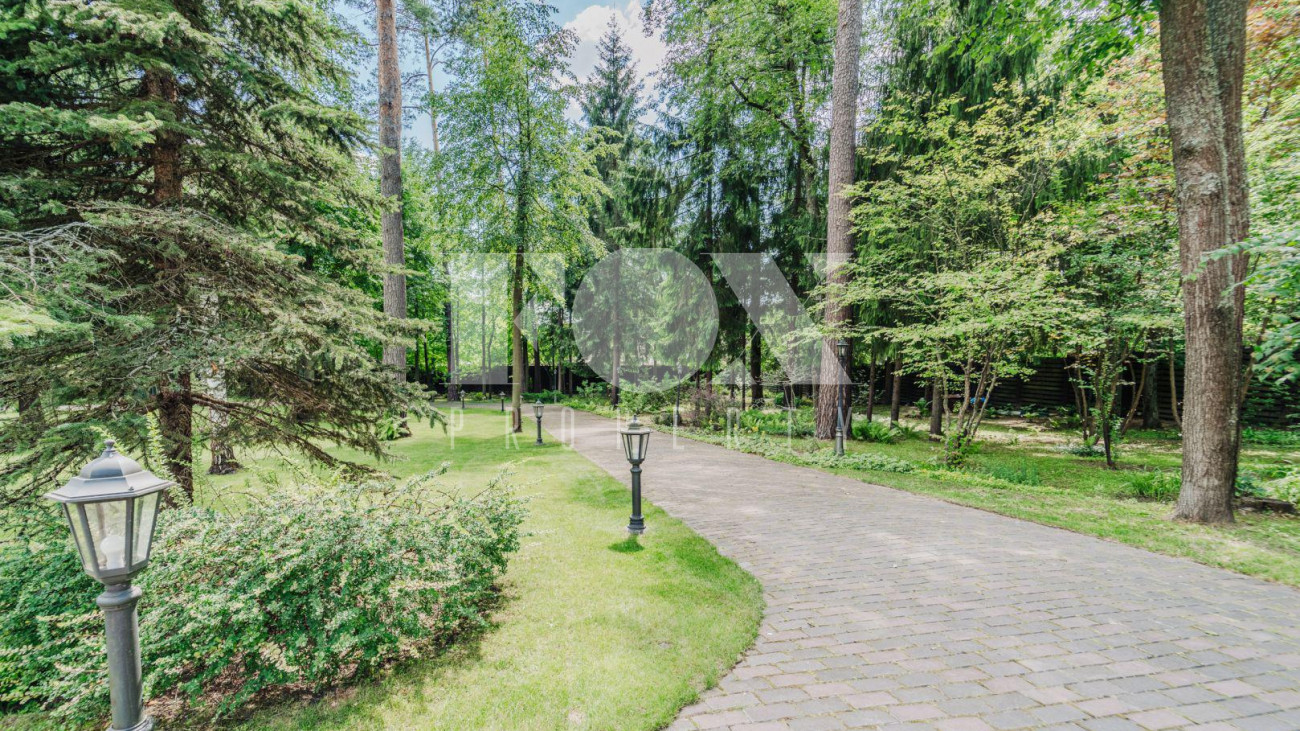На участке с эксклюзивным ландшафтом, корабельными соснами, вековыми елями, канадскими клёнами и разнообразными хвойными деревьями и кустарниками располагается прекрасный дом в английском стиле, гараж с квартирой для персонала, пергола, в которой летом устанавливают бассейн, а также элегантности ландшафту придаёт изящный фонтан. Весь участок в собственности. За участком начинается лесной массив, далее протекает Москва- река. Дом построен по проекту европейского архитектурного бюро, планировки дома продуманные и комфортные для жизни, интерьер оформлен в современном классическом стиле, гармонично подобрана авторская мебель и предметы быта, состояние нового дома. В доме установлен встроенный пылесос. На первом этаже просторная гостиная с камином, бильярдной зоной и выходом в зимний сад с чудесными растениями и деревьями из разных уголков мира. Функциональная кухня оборудована современной надежной техникой, рядом с кухней есть прохладная кладовая для хранения продуктов и всего необходимого. Элегантная и удобная лестница ведет на второй этаж в зону просторной библиотеки с выходом на террасу и зоной спален. Все четыре спальни приватно расположены в разных сторонах дома, в мастер- спальне очень просторная гардеробная и ванная комната. Дом и участок уникальны, не имеют аналогов и являются жемчужиной дальней Рублёвки. Тишина, сосны, свежий воздух в окружении комфорта и роскоши.