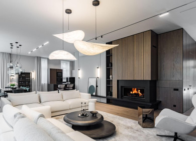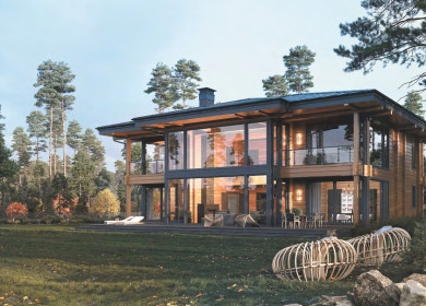 Современный дом с дизайнерской отделкой площадью 550 кв.м в охраняемом коттеджном поселке Ренессанс парк. На участке площадью 17 соток выполнен ландшафтный дизайн, высажены декоративные и лесные деревья, кустарники, вымощены дорожки, отдельно расположены беседка с летней кухней и зоной барбекю, навес на 2 м/м.