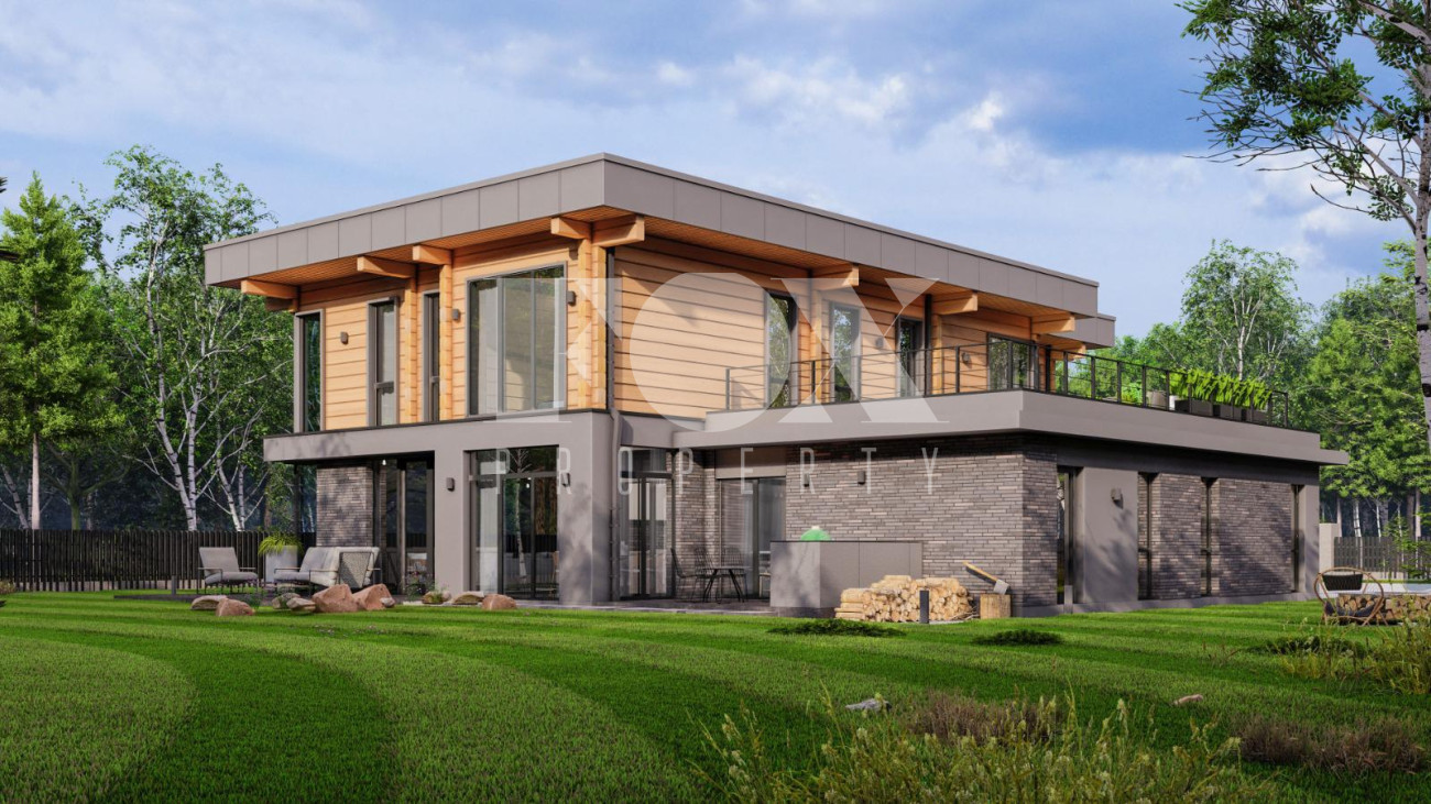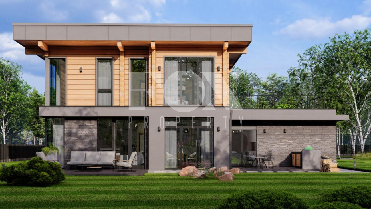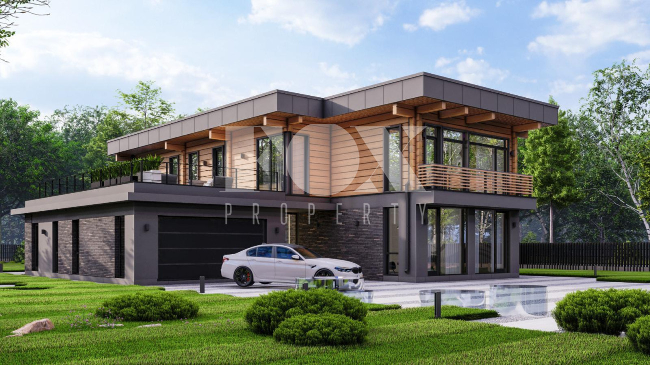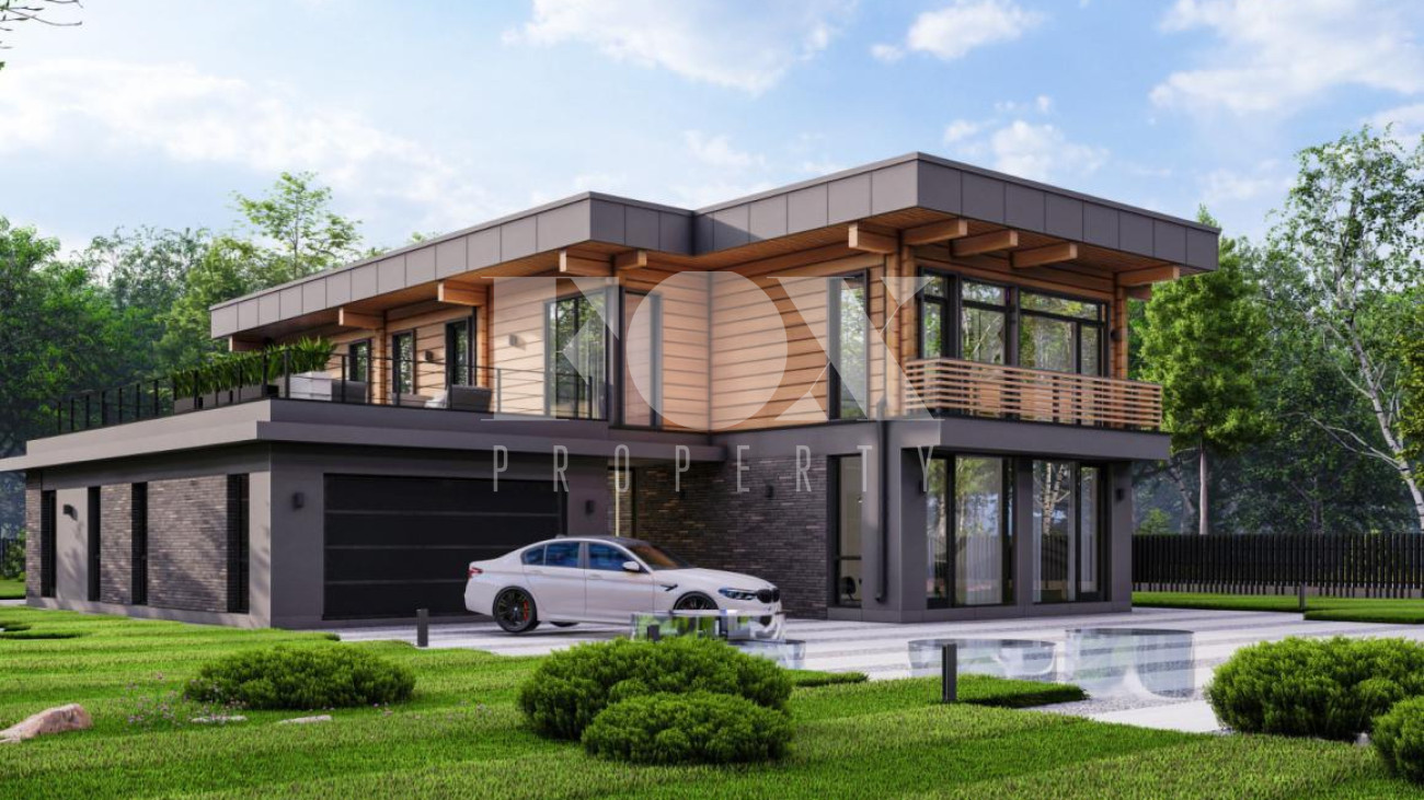 Новый дом в современном стиле в охраняемом коттеджном поселке Ренессанс Парк. В доме предусмотрено 5 спален, 6 с/у, кабинет, кухня-столовая-гостиная, гараж на 2 м/м. Использованы дорогостоящие отделочные материалы и предметы интерьера.