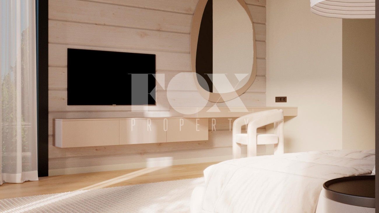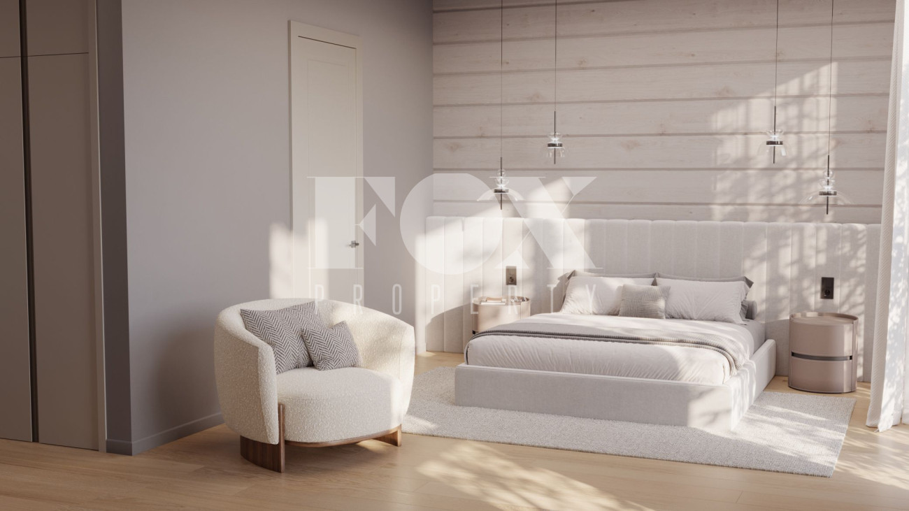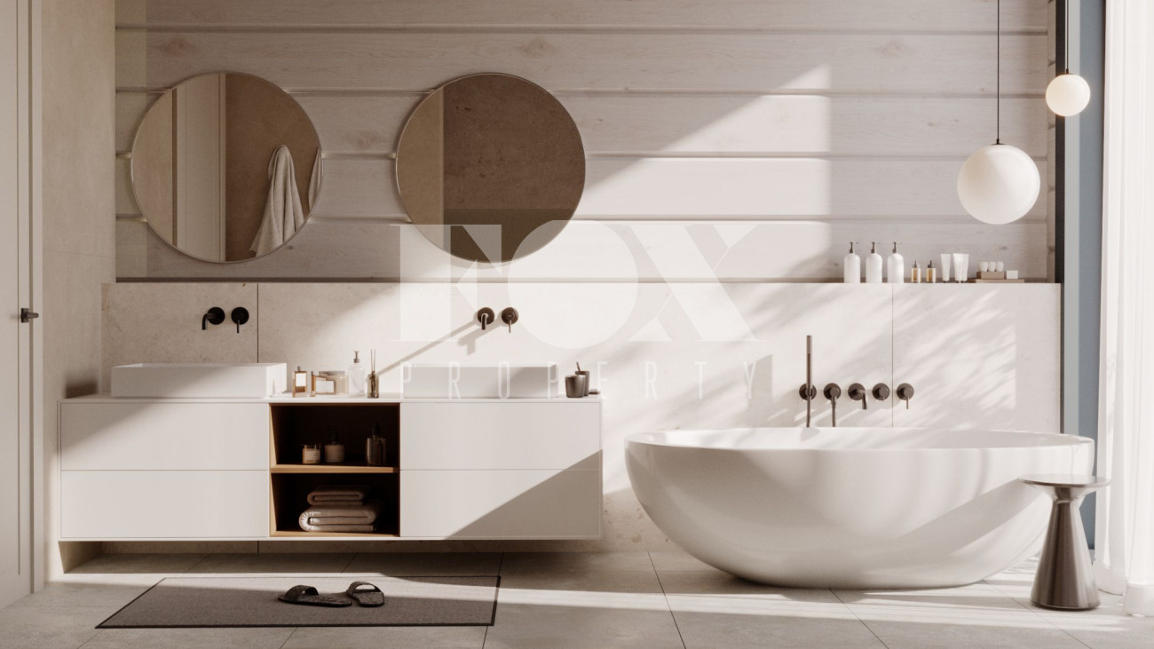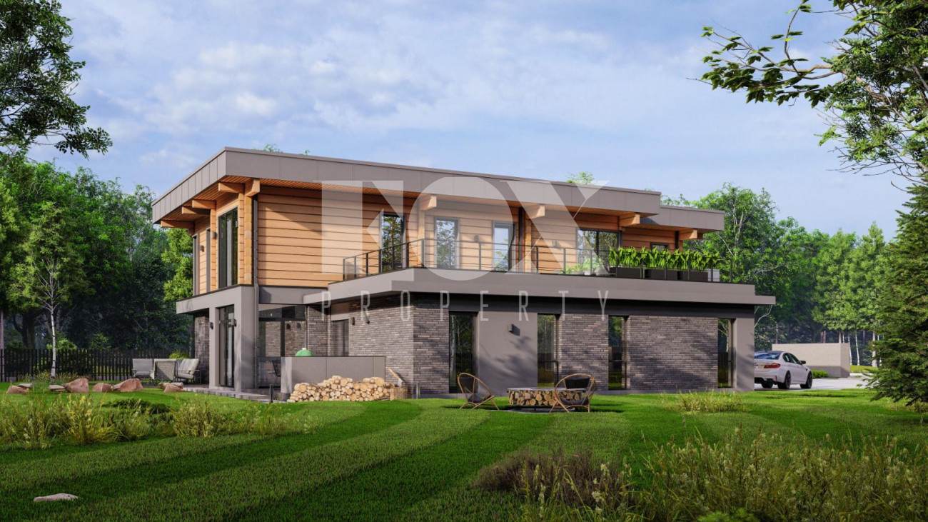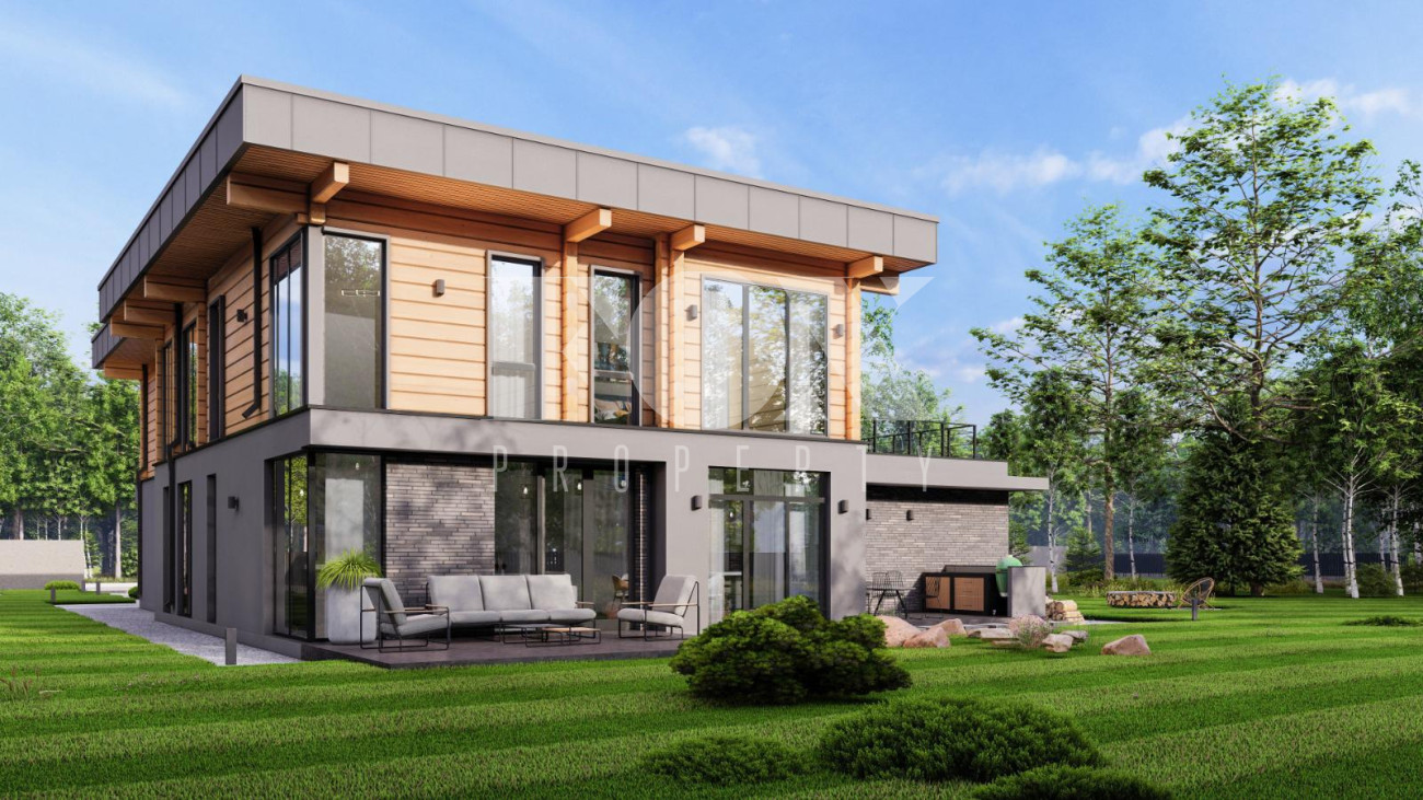 Новый дом в современном стиле в охраняемом коттеджном поселке Ренессанс Парк. В доме предусмотрено 5 спален, 6 с/у, кабинет, кухня-столовая-гостиная, гараж на 2 м/м. Использованы дорогостоящие отделочные материалы и предметы интерьера.