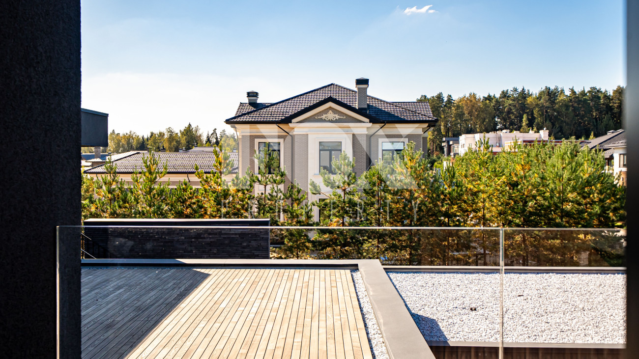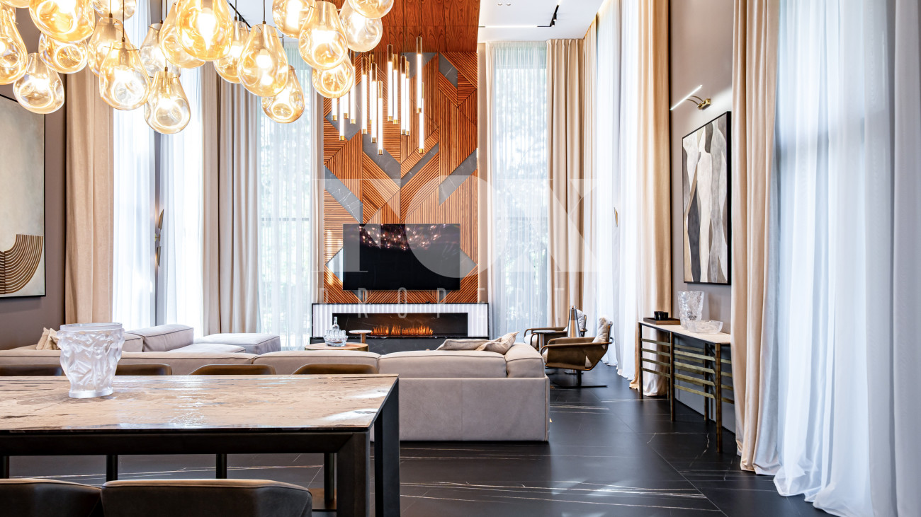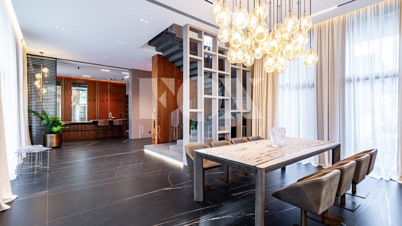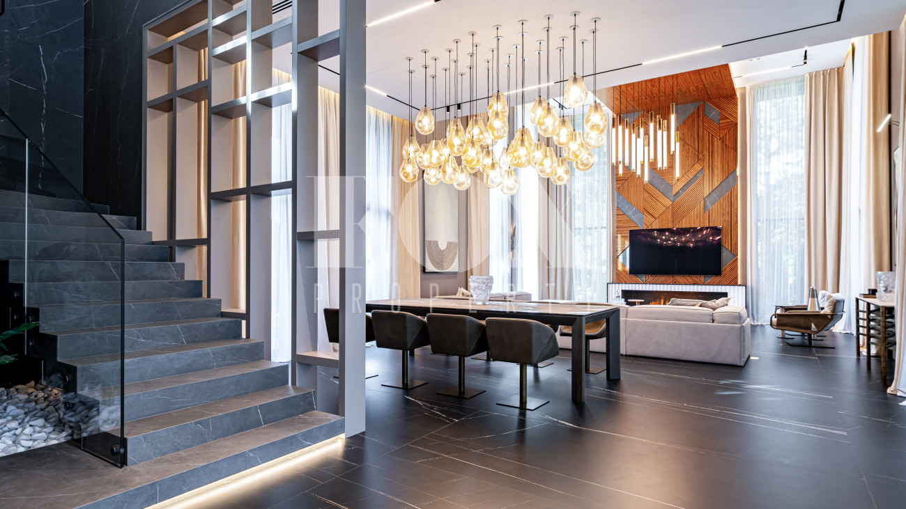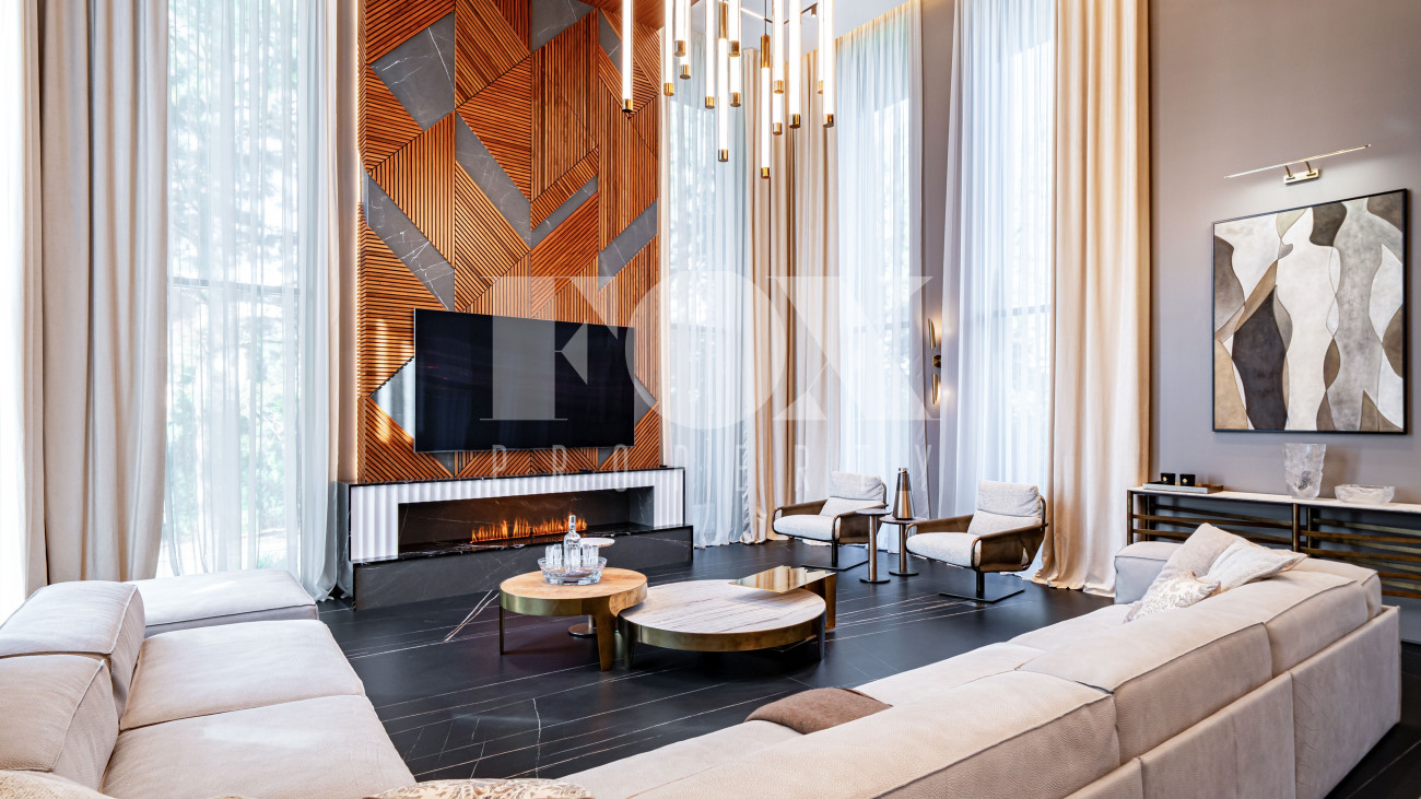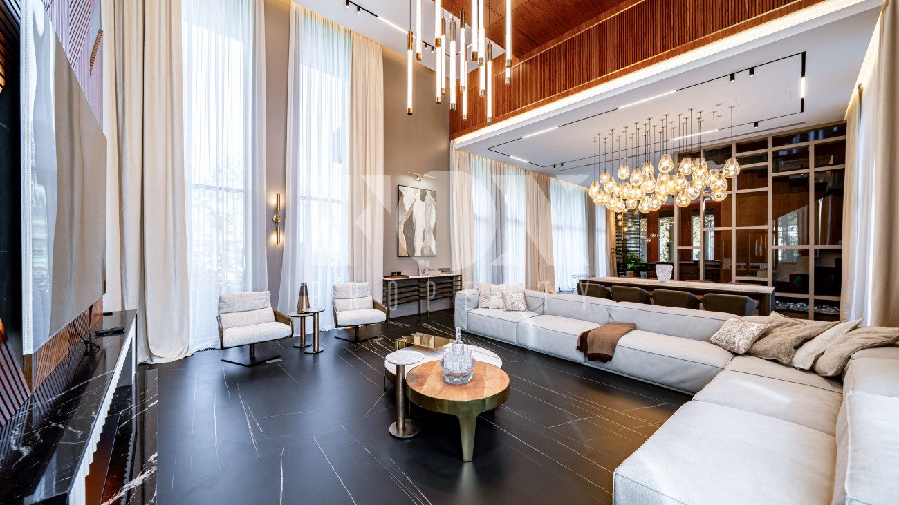 Дом площадью 745 м² с 6 спальнями расположен на видовом участке 22,2 сотки в одном из самых престижных поселков «Ренессанс Парк» на Новой Риги. Элегантная архитектура в духе Райта, идеальные пропорции и виды на зелёные аллеи создают атмосферу простора и покоя. Дом полностью готов к проживанию и впечатляет продуманным планировочным решением.Интерьер создан студией Prosvirin Design и сочетает натуральные материалы и высокие технологии. В отделке использованы кварцит, редкие породы дерева, итальянская сантехника CEA и Antonio Lupi, свет от Центрсвет и ведущих итальянских брендов.