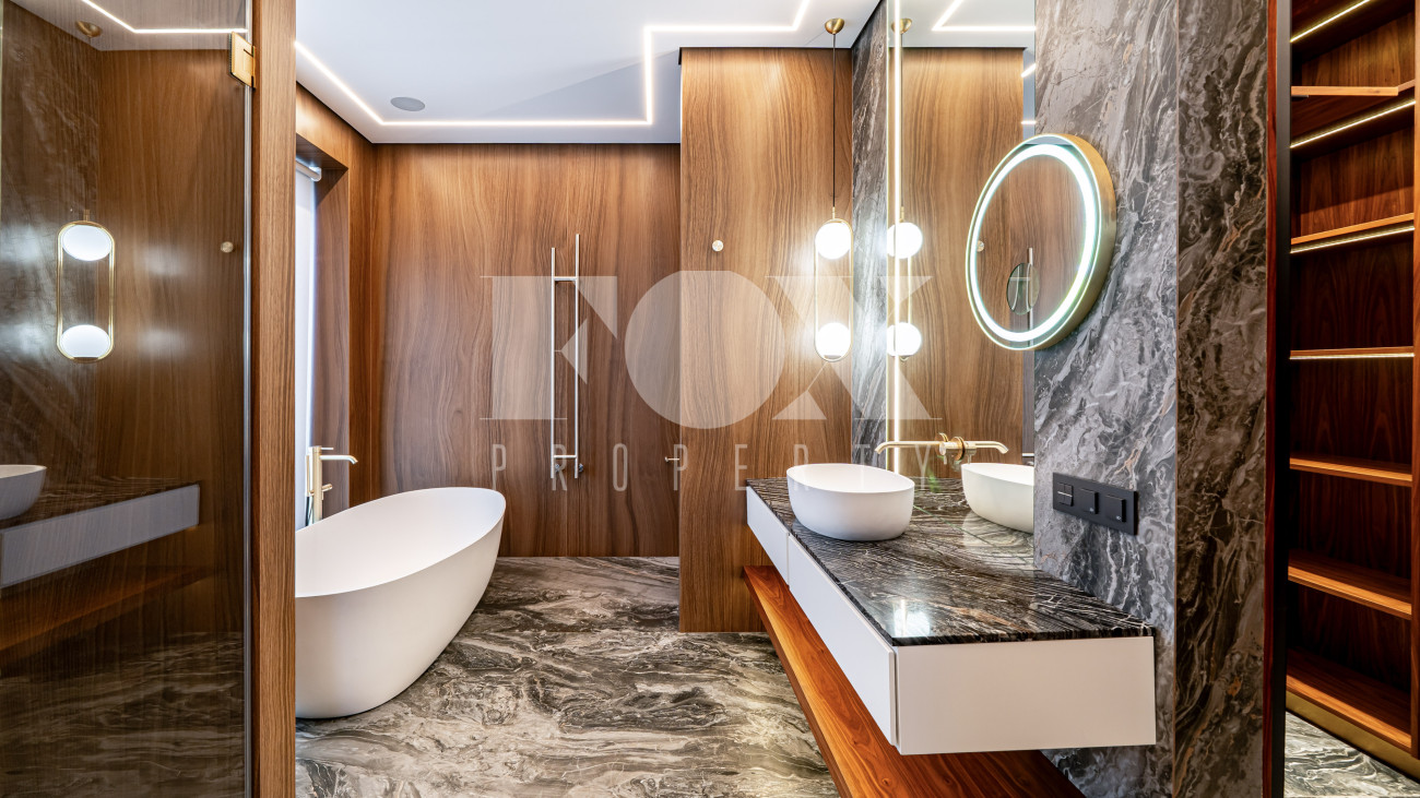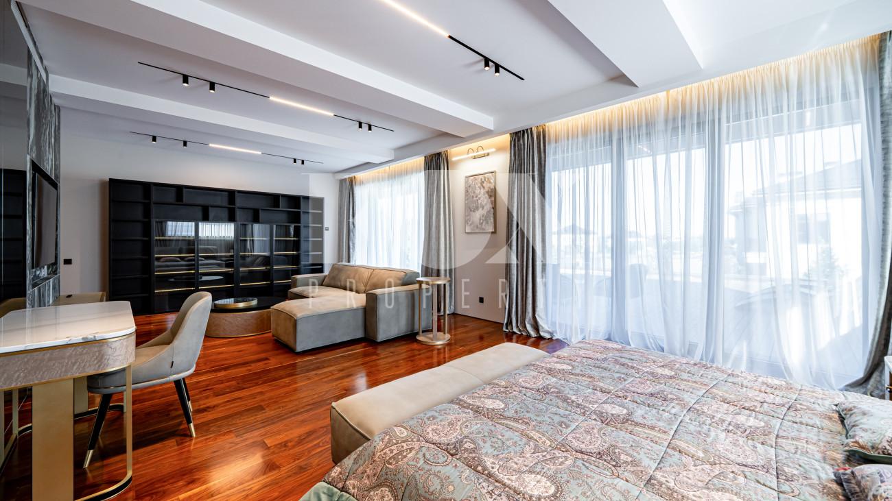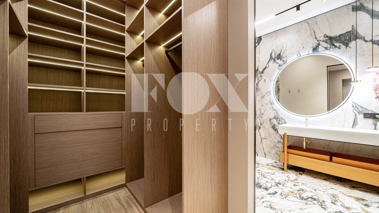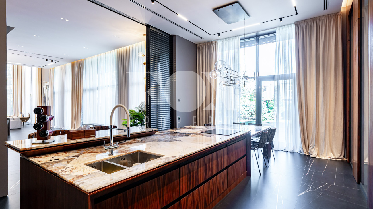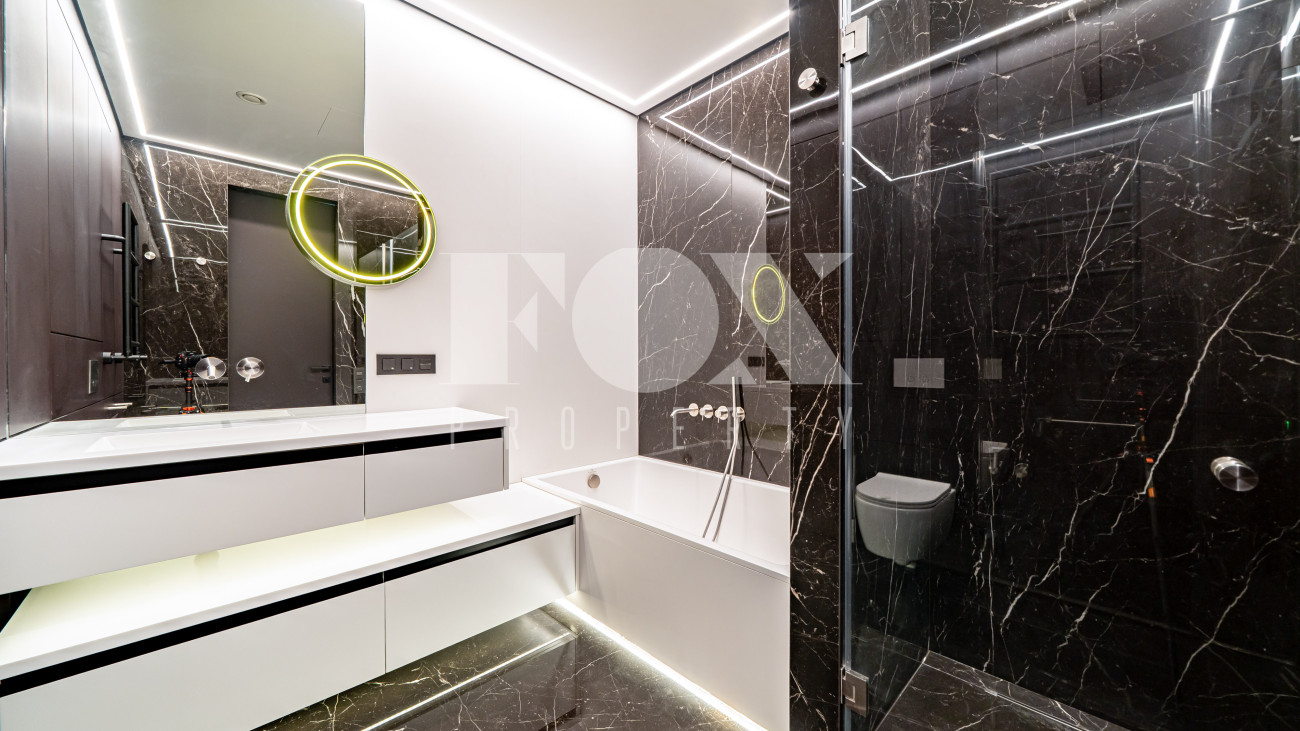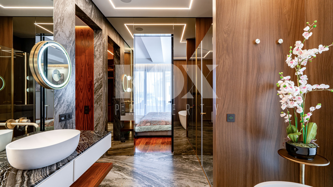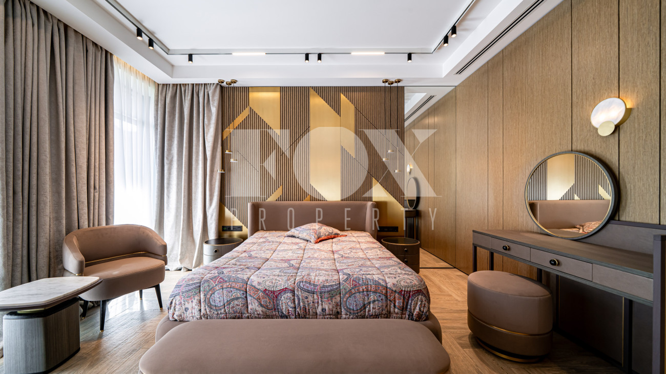 Дом площадью 745 м² с 6 спальнями расположен на видовом участке 22,2 сотки в одном из самых престижных поселков «Ренессанс Парк» на Новой Риги. Элегантная архитектура в духе Райта, идеальные пропорции и виды на зелёные аллеи создают атмосферу простора и покоя. Дом полностью готов к проживанию и впечатляет продуманным планировочным решением.Интерьер создан студией Prosvirin Design и сочетает натуральные материалы и высокие технологии. В отделке использованы кварцит, редкие породы дерева, итальянская сантехника CEA и Antonio Lupi, свет от Центрсвет и ведущих итальянских брендов.