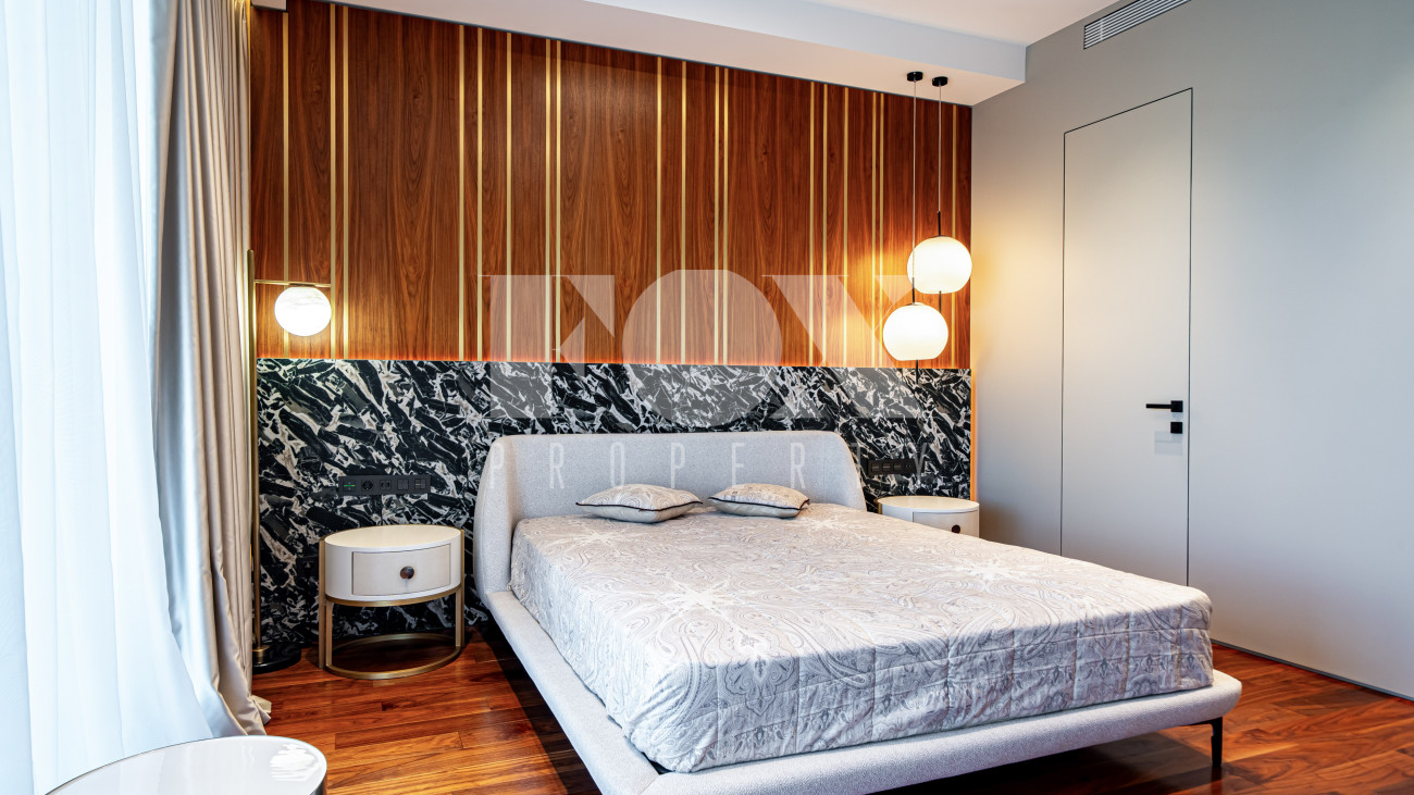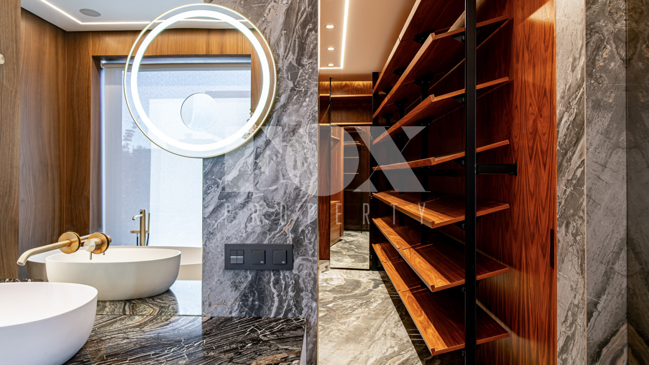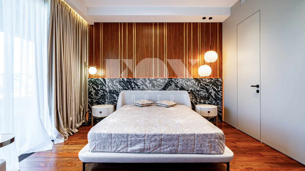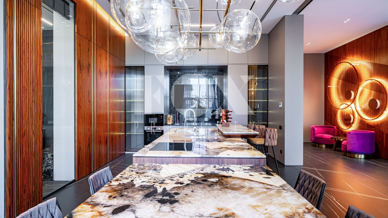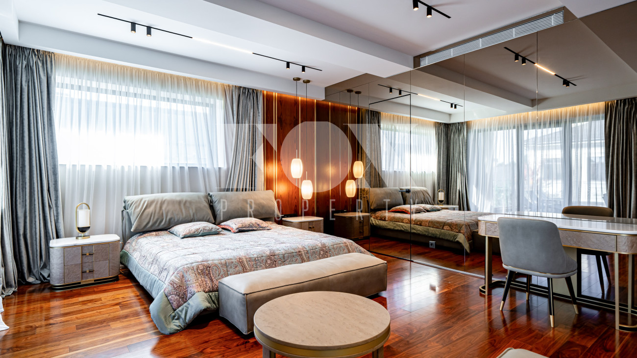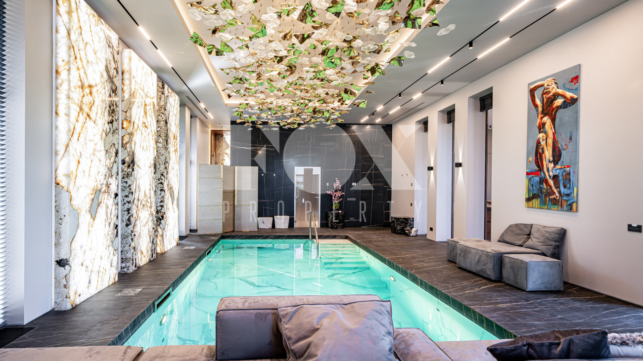 Дом площадью 745 м² с 6 спальнями расположен на видовом участке 22,2 сотки в одном из самых престижных поселков «Ренессанс Парк» на Новой Риги. Элегантная архитектура в духе Райта, идеальные пропорции и виды на зелёные аллеи создают атмосферу простора и покоя. Дом полностью готов к проживанию и впечатляет продуманным планировочным решением.Интерьер создан студией Prosvirin Design и сочетает натуральные материалы и высокие технологии. В отделке использованы кварцит, редкие породы дерева, итальянская сантехника CEA и Antonio Lupi, свет от Центрсвет и ведущих итальянских брендов.