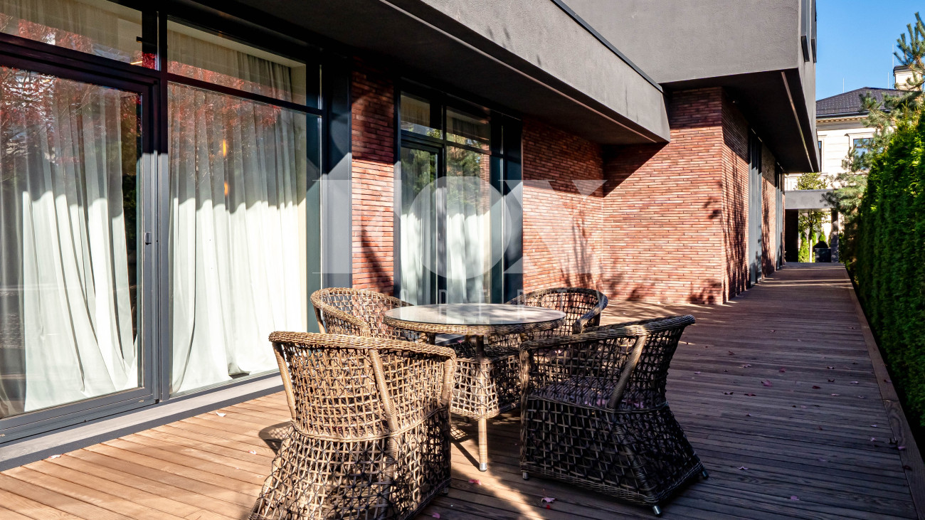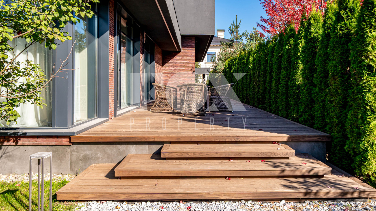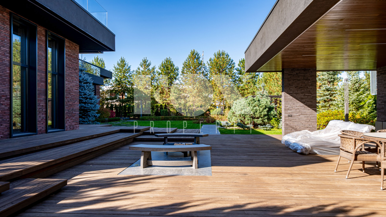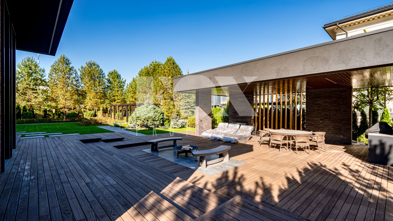Просторная терраса приглашает к отдыху на свежем воздухе и становится естественным продолжением дома в летние месяцы.