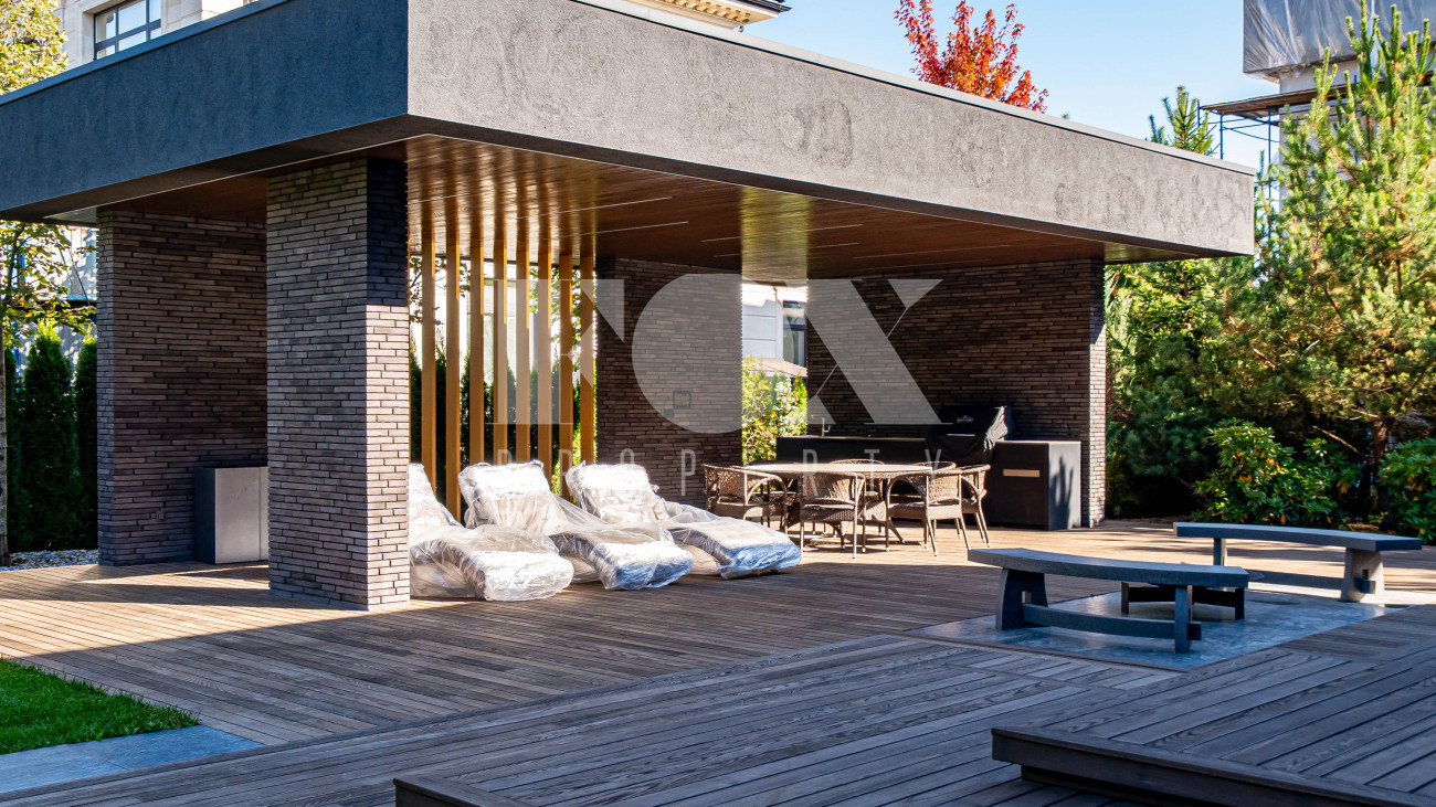 Уличная кухня оборудована техникой Bosch и грилем Napoleon, что делает летние вечера особенно приятными.