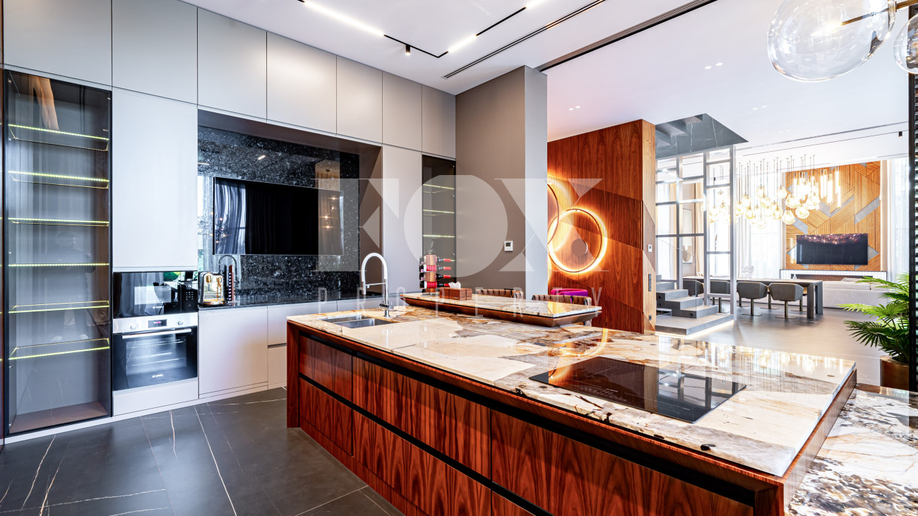 Кухня оснащена техникой Bosch, холодильниками Liebherr, а каждая спальня — телевизорами Samsung.