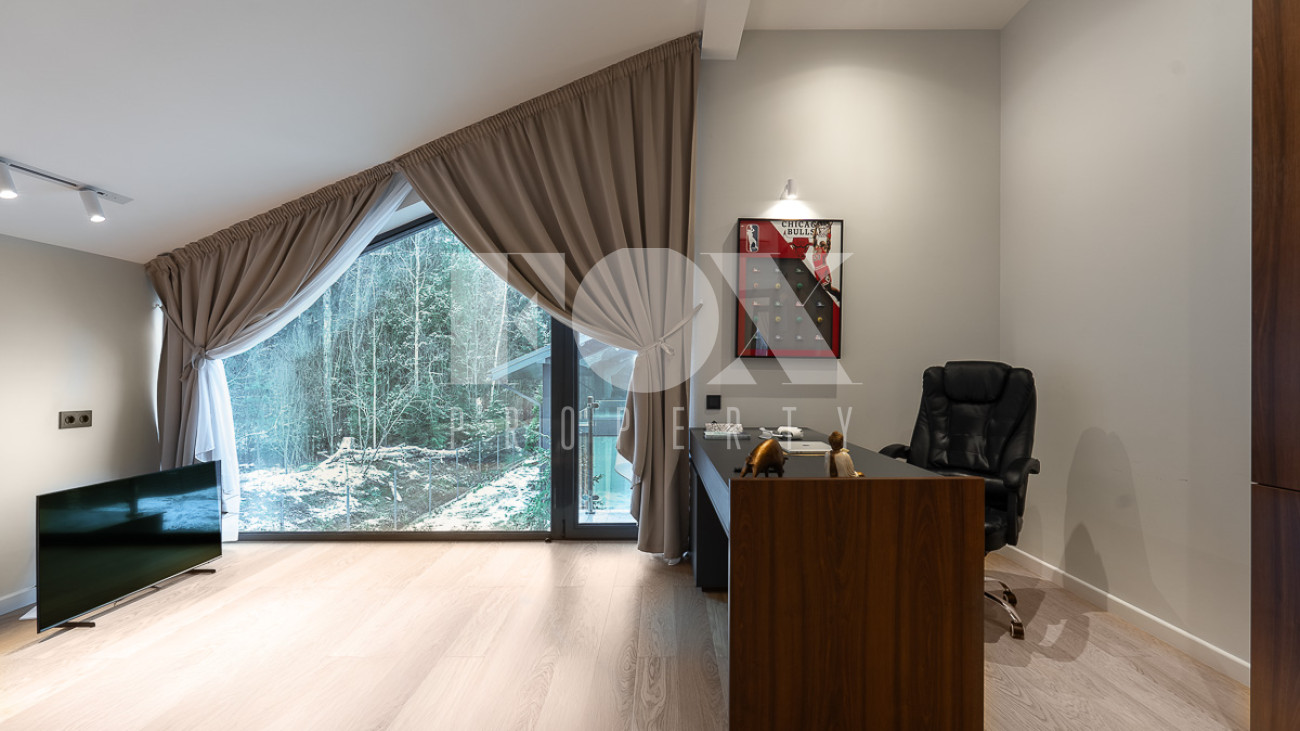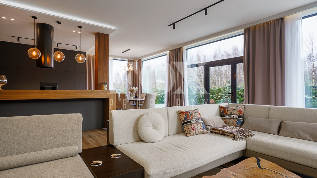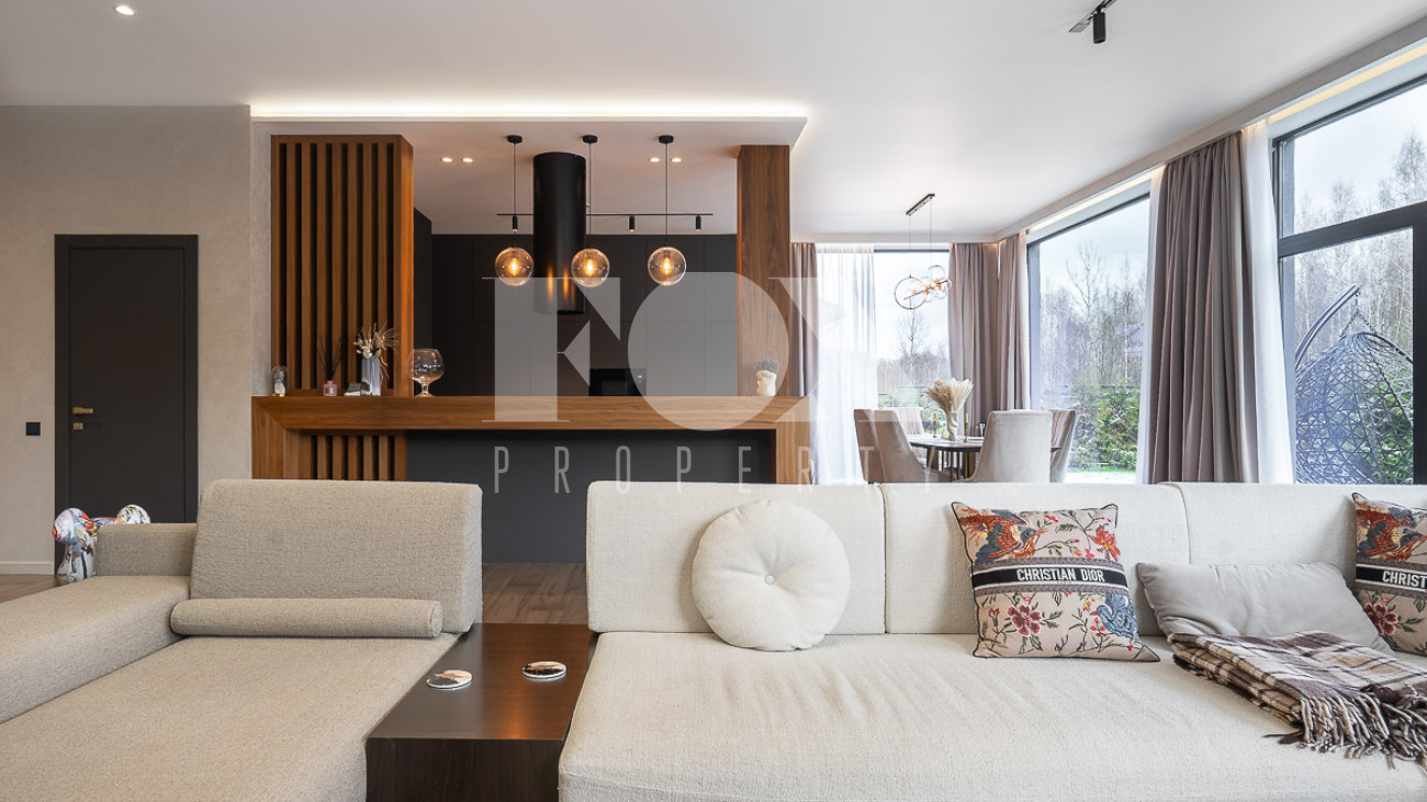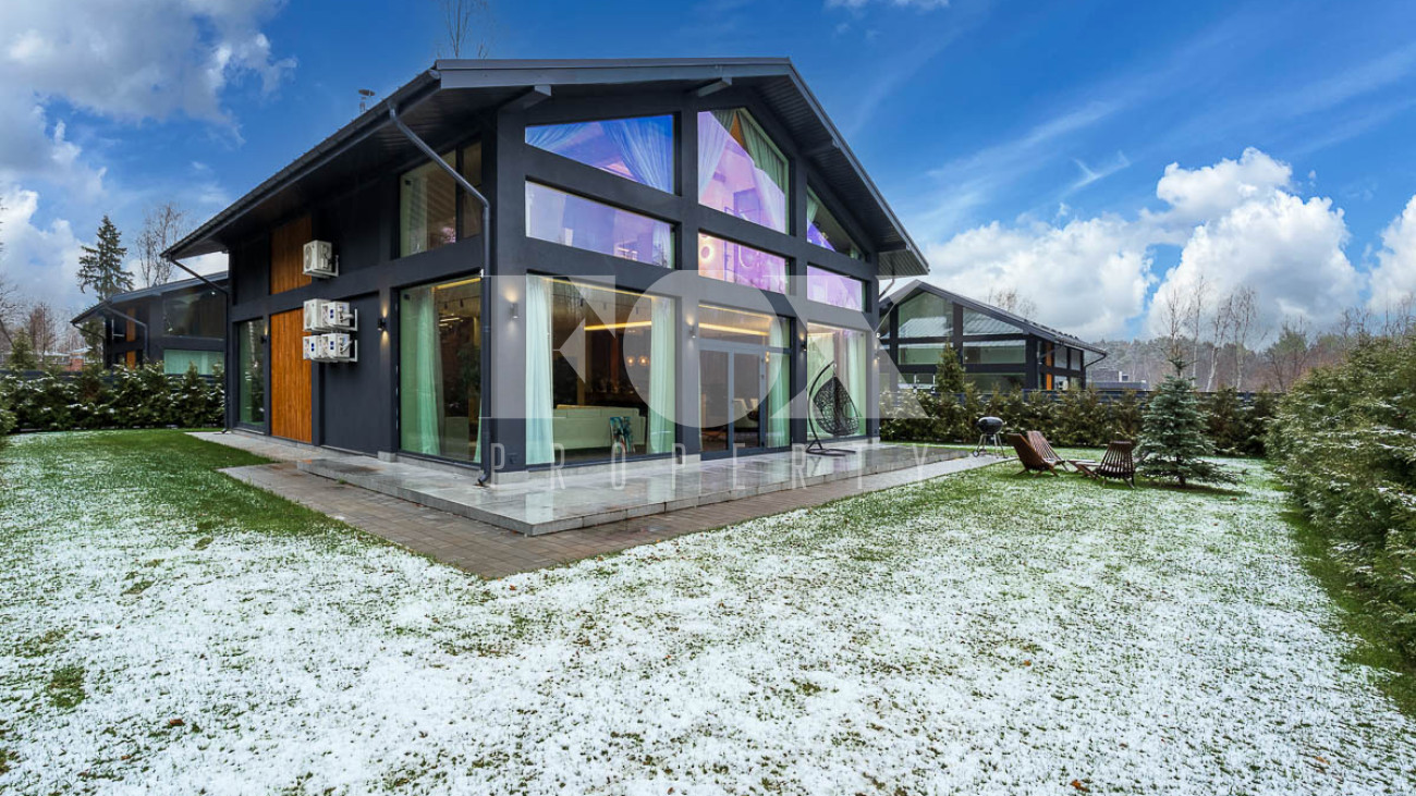 О Доме : Дом современной постройки 300 м2 в охраняемом коттеджном поселке. - Панорамное остекление с видом на лес - В доме предусмотрены: 4 спальни, 3 с/У, кухня, гостиная, столовая, постирочная, кладовая и кабинет. - Три гардеробные комнаты - Мебель и техника премиальных брендов Об участке : Сам участок угловой и самое главное ОН ВИДОВОЙ! На участке выполнен ландшафтный дизайн и высажены туи.