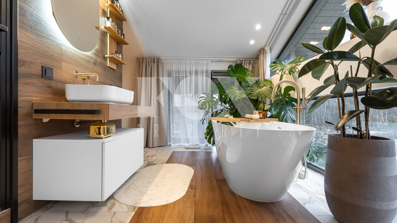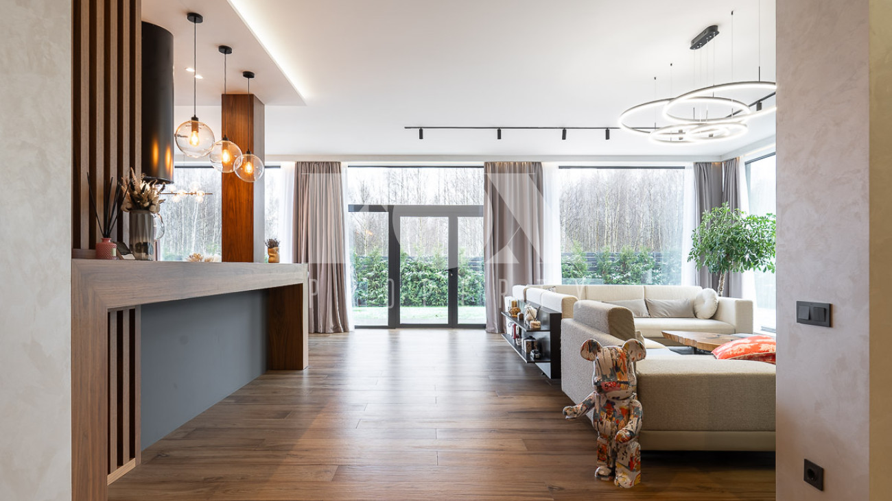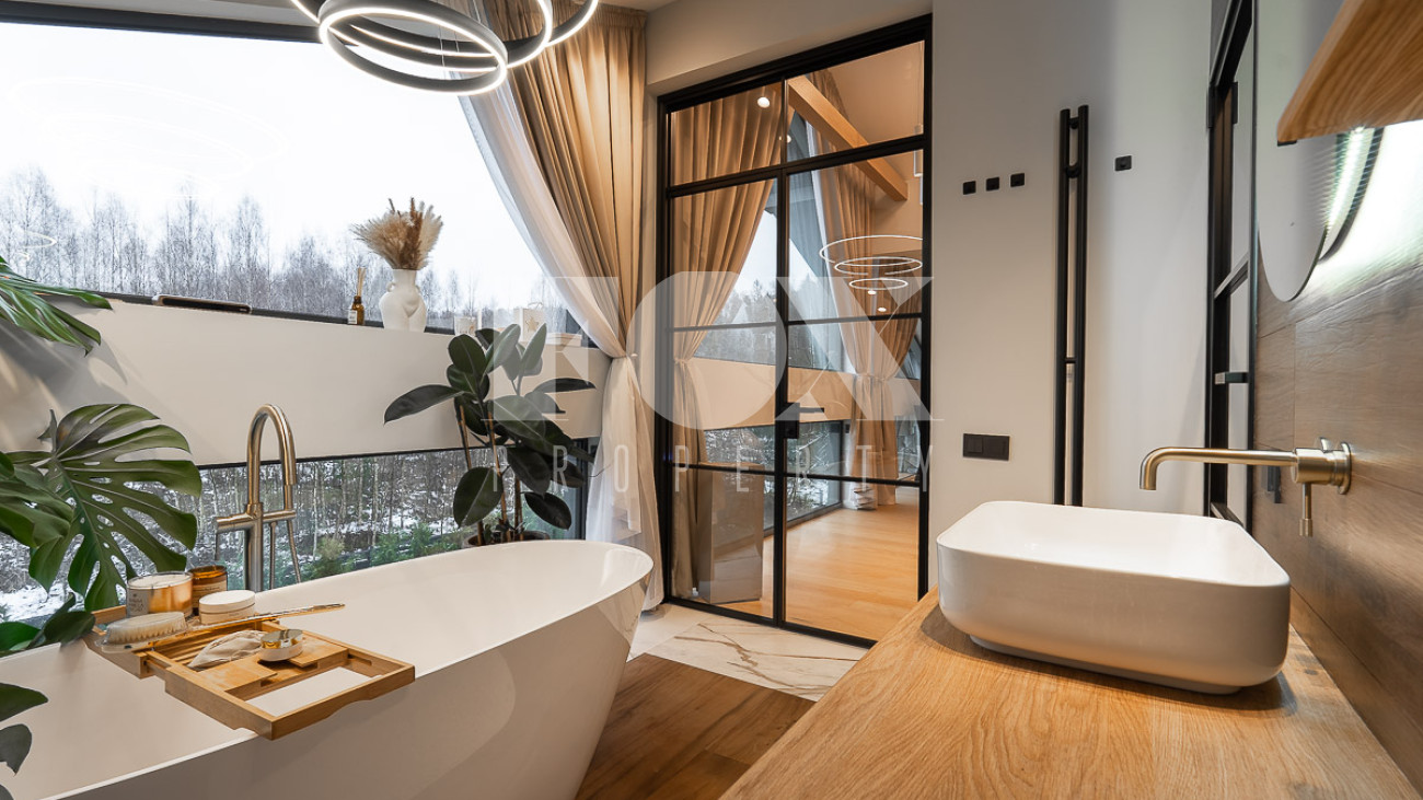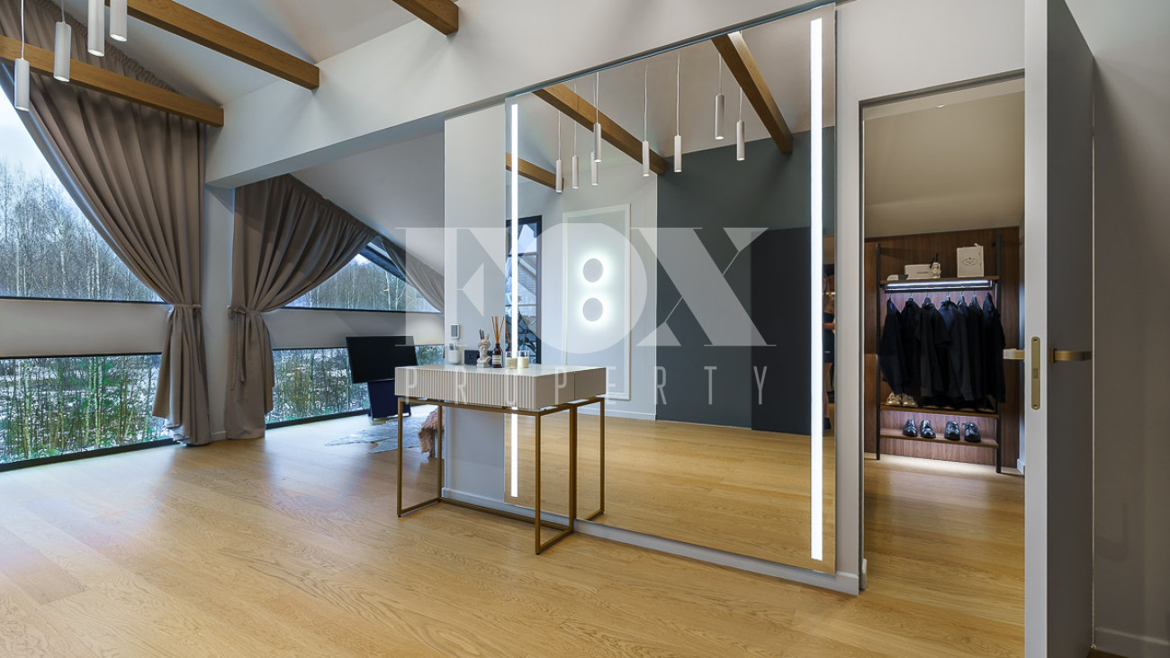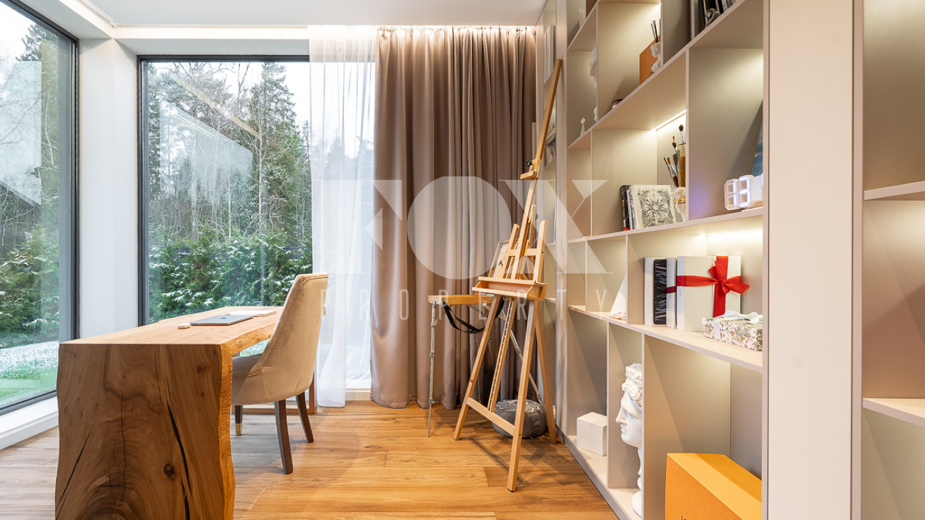 О Доме : Дом современной постройки 300 м2 в охраняемом коттеджном поселке. - Панорамное остекление с видом на лес - В доме предусмотрены: 4 спальни, 3 с/У, кухня, гостиная, столовая, постирочная, кладовая и кабинет. - Три гардеробные комнаты - Мебель и техника премиальных брендов Об участке : Сам участок угловой и самое главное ОН ВИДОВОЙ! На участке выполнен ландшафтный дизайн и высажены туи.