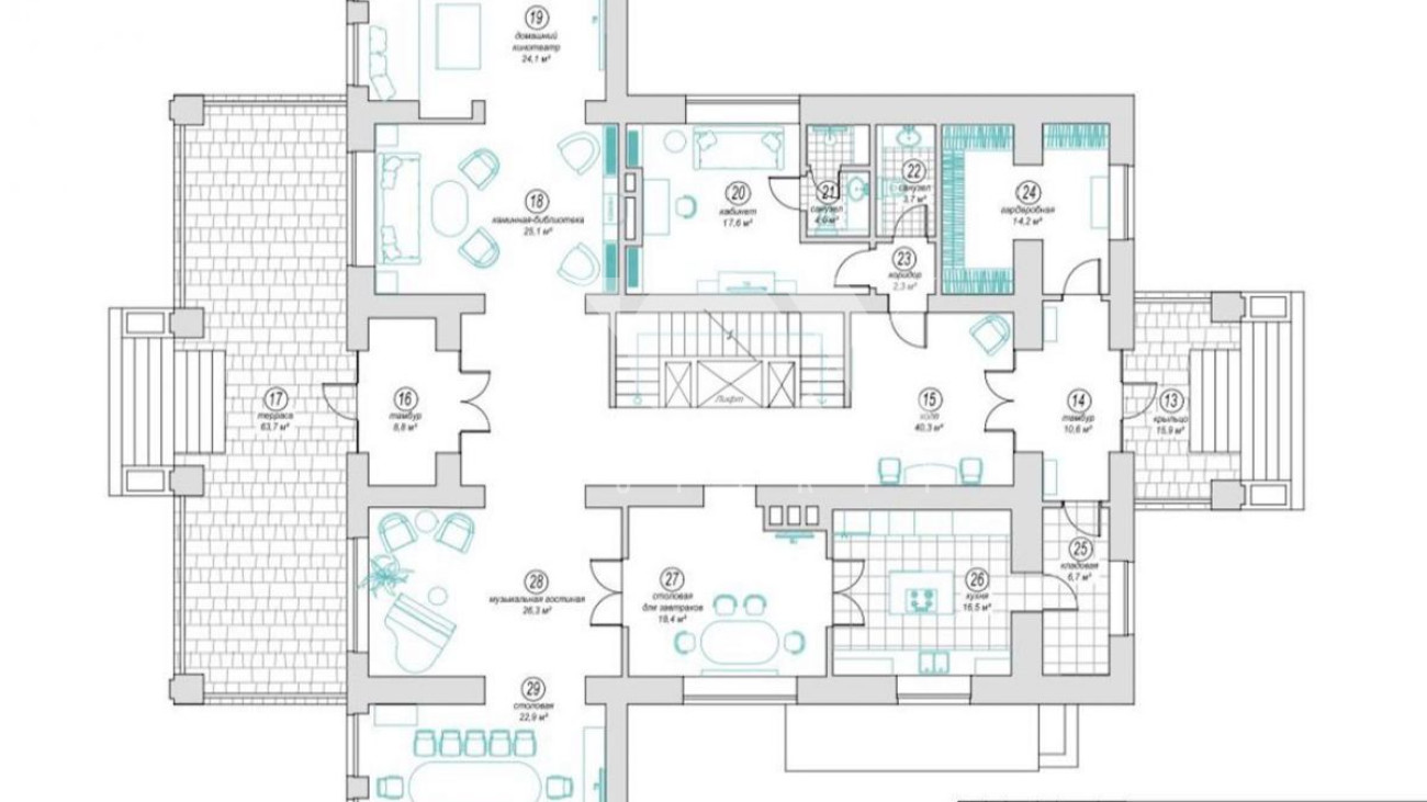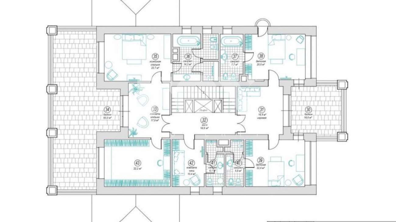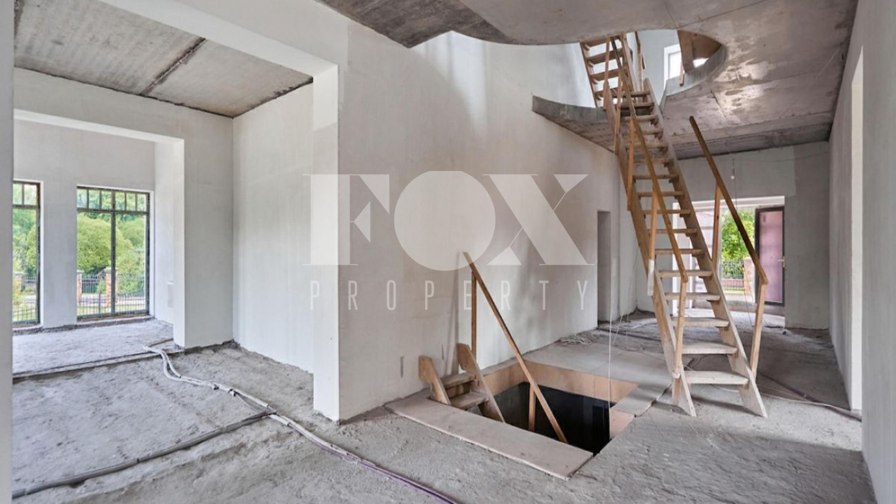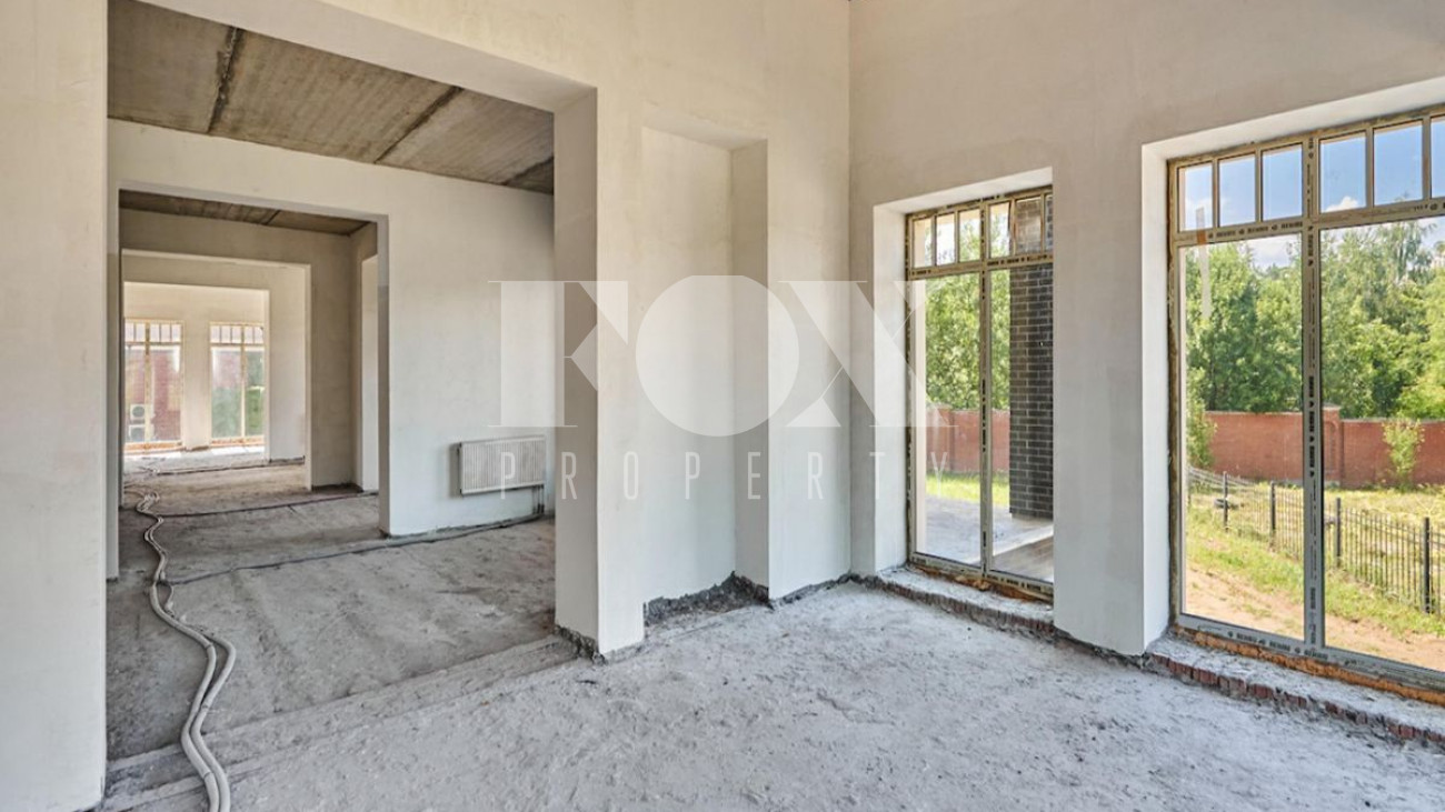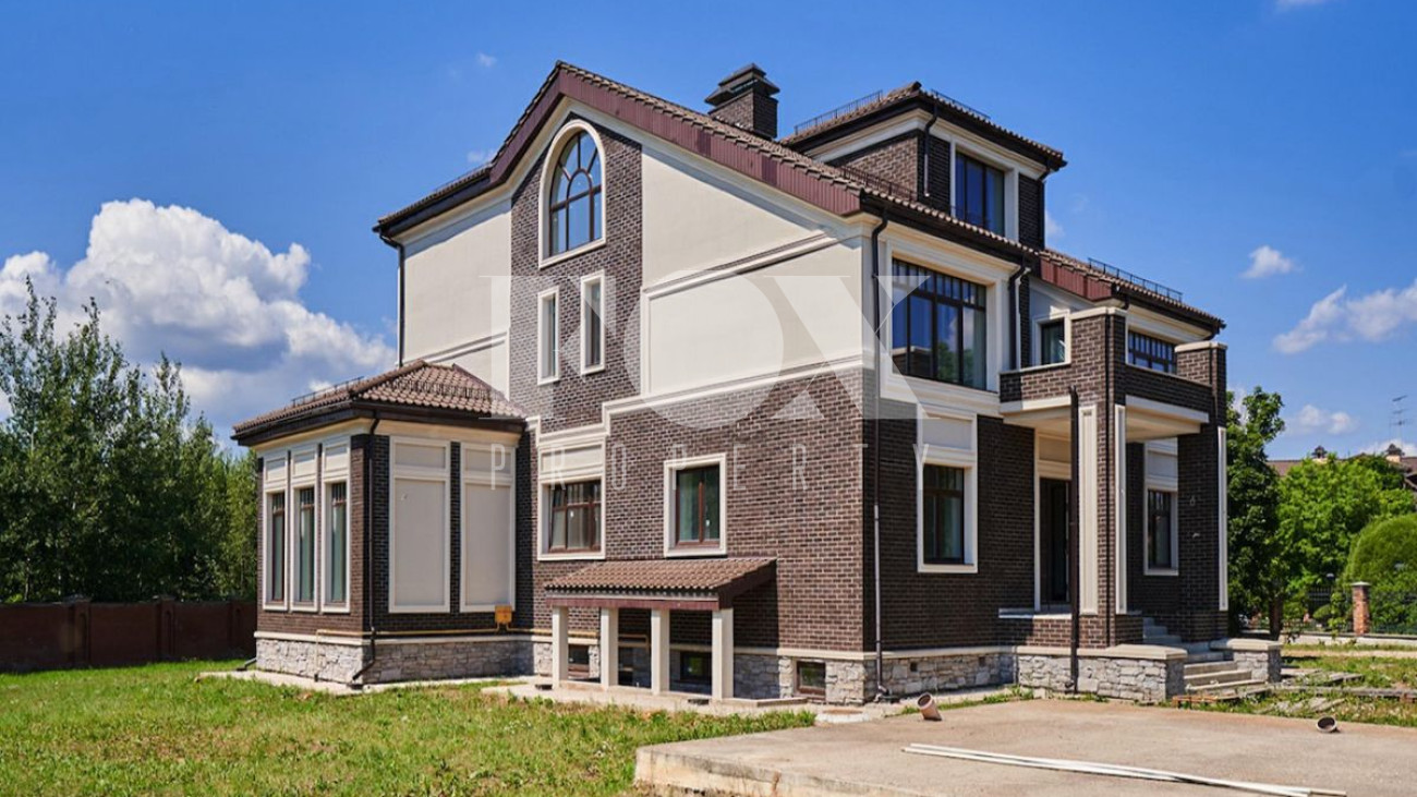 Предлагается дом «под отделку» в охраняемом коттеджном поселке. Фасад дома отделан клинкерной плиткой, цоколь - искусственным камнем.
