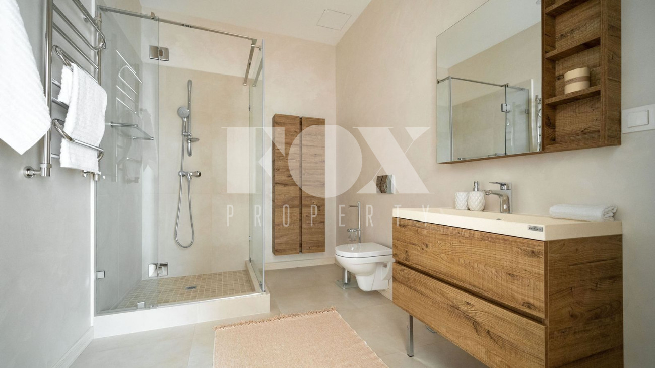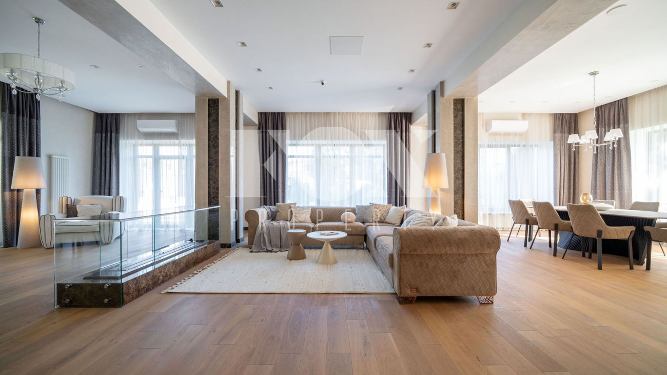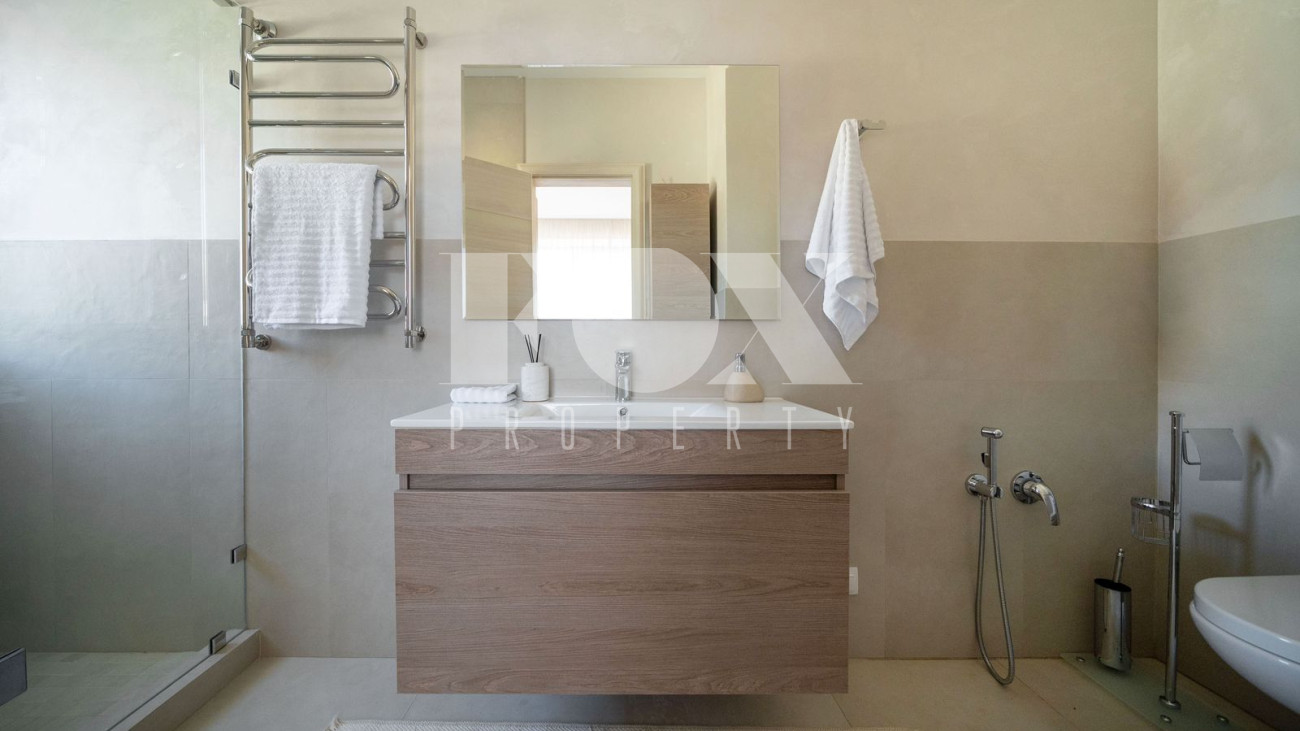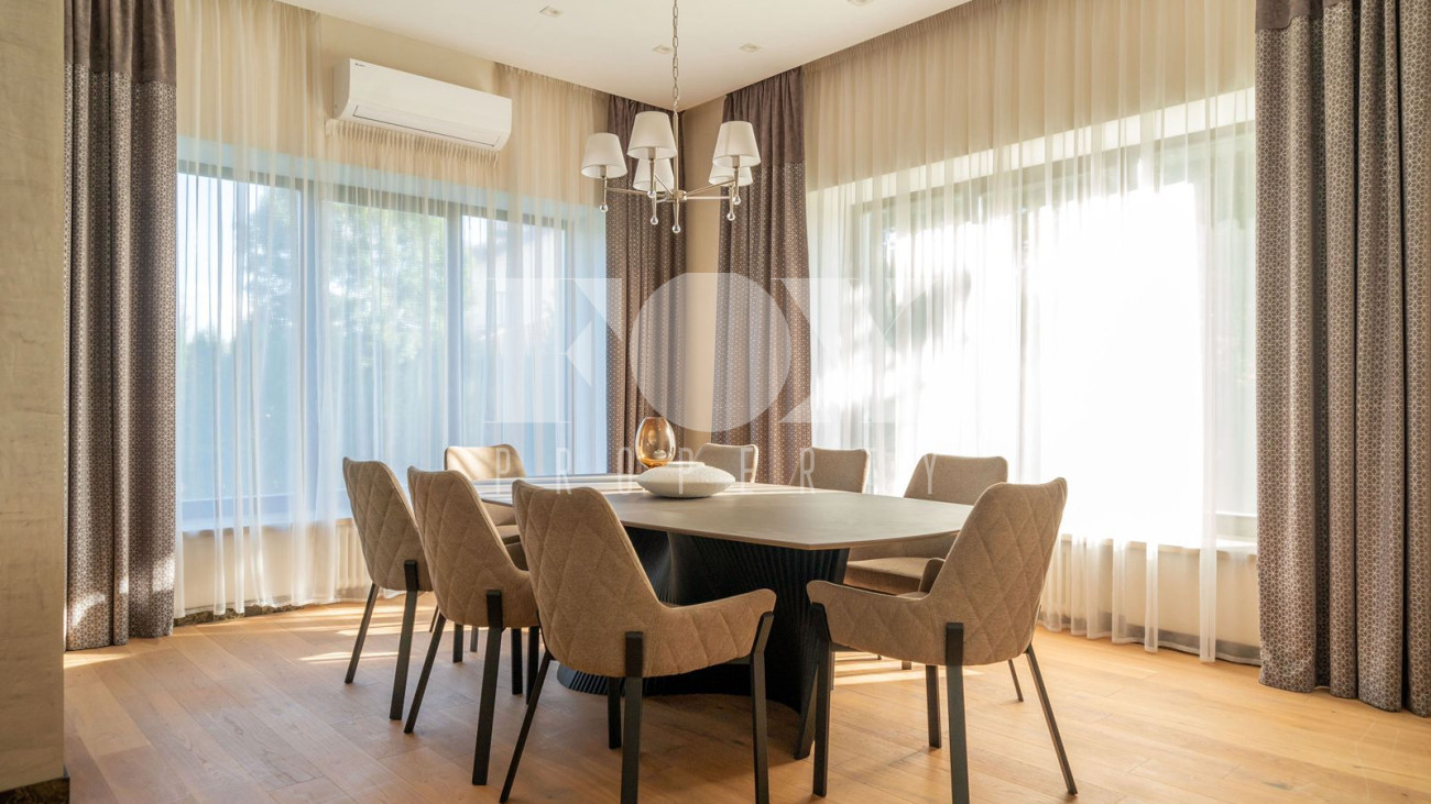 Готовый к проживанию дом с мебелью и техникой в охраняемом коттеджном поселке Рубин Эстейт. В отделке использовались натуральные современные материалы высокого качества, кухонная техника Neff, сантехника Geberit, телевизоры Sony в каждой спальне. Участок 19 соток правильной прямоугольной формы, ровный, озелененный (газон, туи), подведено ночное освещение. Домовладение примыкает к декоративному водоему поселка. На участке расположены двухэтажный отапливаемый гараж с помещением для персонала на втором этаже и беседка с мангалом. Рубин Эстейт расположен в 15 км по Новорижскому шоссе и является престижным клубным поселком на 26 домовладений, выдержанных в едином архитектурном стиле, с детской и спортивными площадками, ландшафтным парком и декоративным водоемом. Дороги в поселке вымощены тротуарной плиткой. Лес, пруд от поселка в пешей доступности.