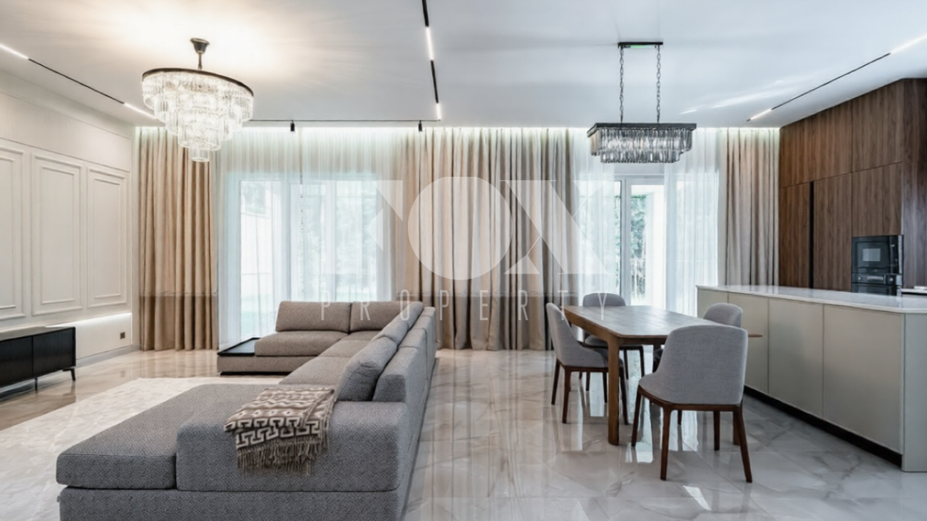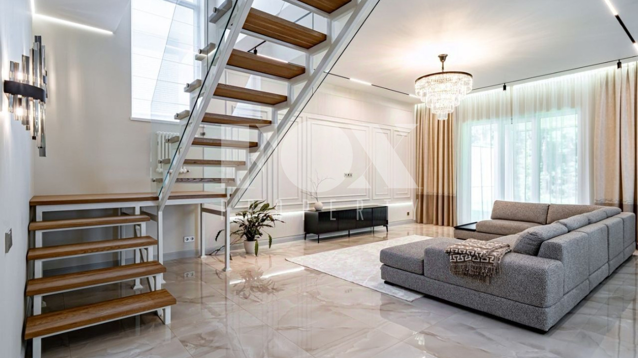 Современный дом под ключ площадью 300 кв.м на прилесном участке 9 соток. Высокие потолки и двери, панорамное остекление, кондиционирование всех помещений. Дом полностью укомплектован техникой и мебелью и готов к проживанию. Дополнительно возможность использования утепленного чердачного помещения под жилую зону. Благоустроенная территория охраняемого поселка, есть свой выход на пруд и в лес. Детская площадка, супермаркет, отличная локация с развитой инфраструктурой: сады, школы, река Истра.