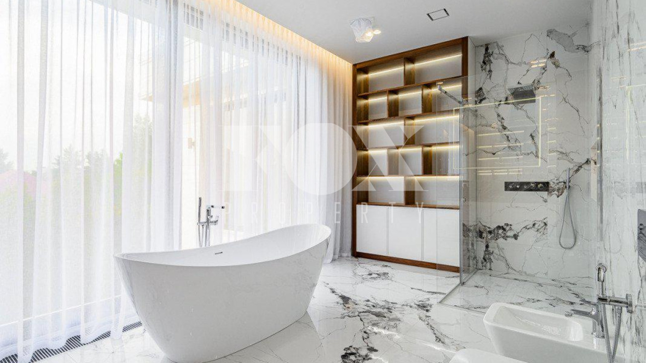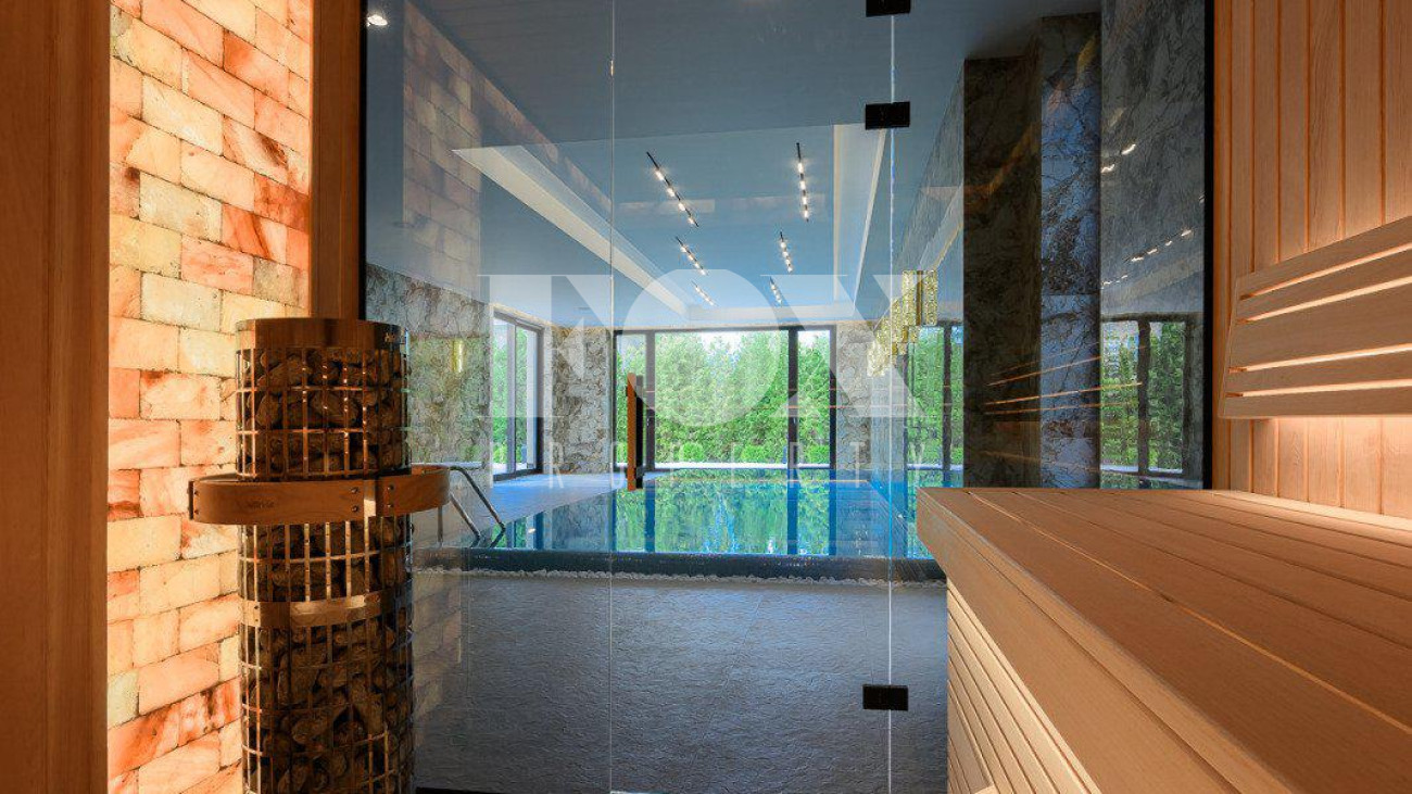 Новый дом в современном стиле на просторном ландшафтном участке в охраняемом коттеджном поселке Третья Охота. Продуманная планировка, 6 спален со своими гардеробными и санузлами. СПА-комлекс с бассейном, сауной и хамамом. В отделке использовались высококачественные материалы - паркетная доска из натурального дуба, мрамор, большие панорамные окна из лиственницы, фасад облицован натуральным камнем и деревом. Установлена система приточно-вытяжной вентиляции с увлажнением и климат-контролем в каждом помещении, встроенная система мультимедиа, бесшовный Wi-Fi, видеонаблюдение.