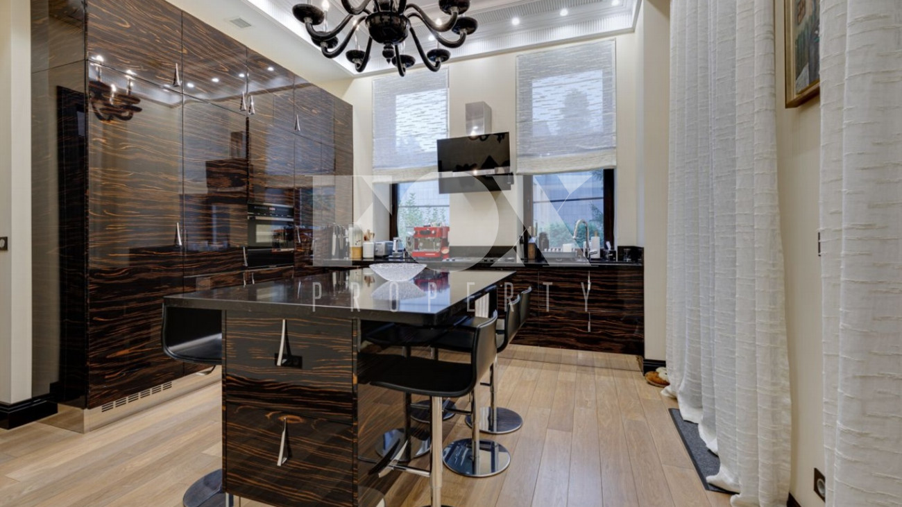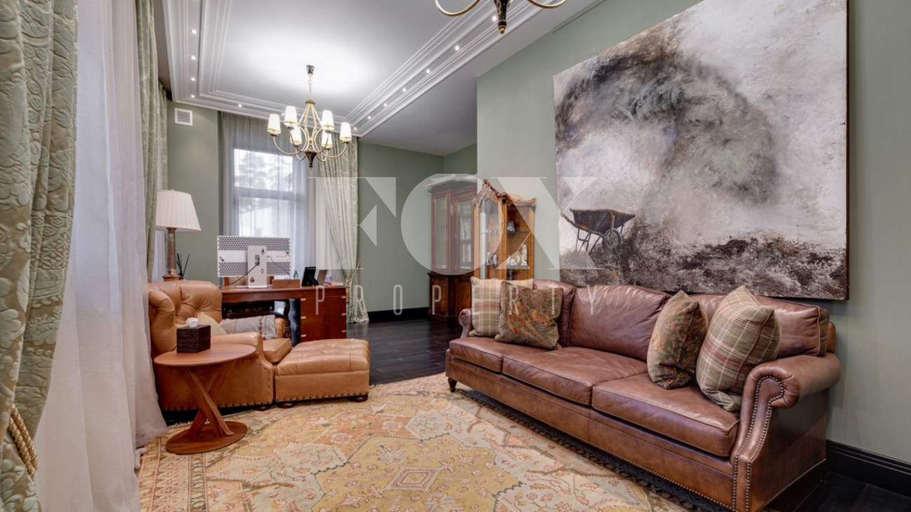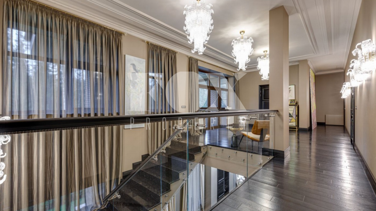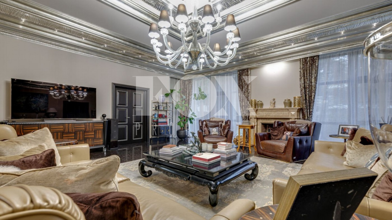 Стильный и уютный дом общей площадью 1135 кв.м расположен в клубном поселке на 33 дома на Новорижском шоссе. Индивидуальный архитектурный проект, в доме выполнена дизайнерская отделка дорогими европейскими материалами. Планировка предусматривает просторную гостиную с камином, 5 спален, кабинет, СПА-зона с бассейном и хамам, домашний кинотеатр, тренажерный зал, гараж на 2м/м.