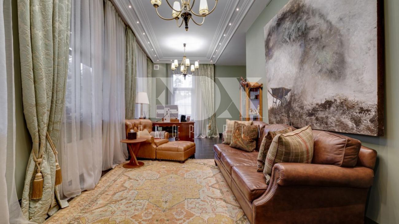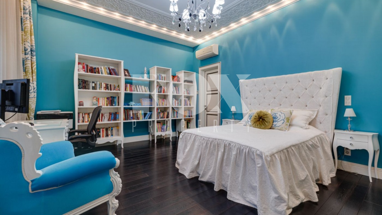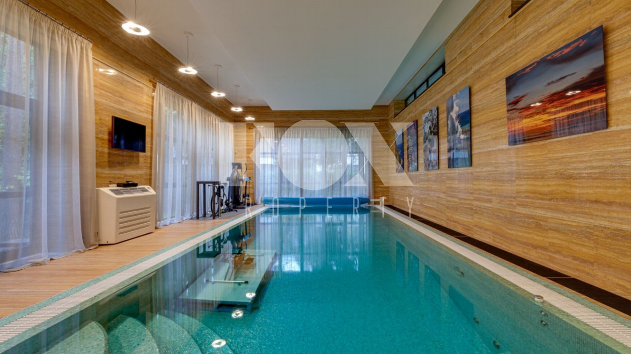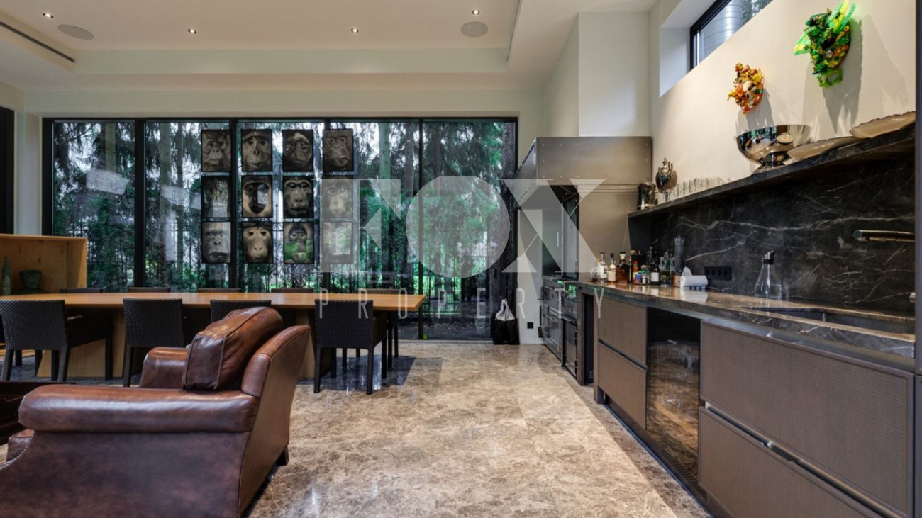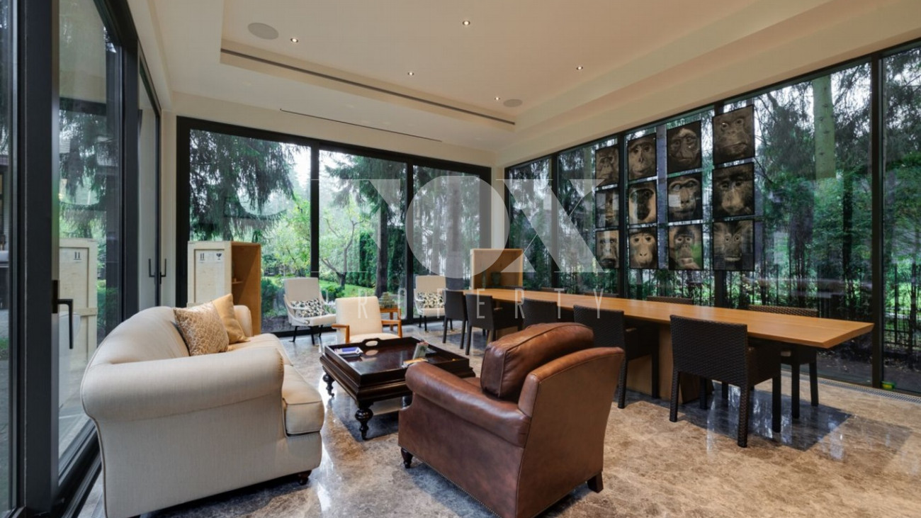 Стильный и уютный дом общей площадью 1135 кв.м расположен в клубном поселке на 33 дома на Новорижском шоссе. Индивидуальный архитектурный проект, в доме выполнена дизайнерская отделка дорогими европейскими материалами. Планировка предусматривает просторную гостиную с камином, 5 спален, кабинет, СПА-зона с бассейном и хамам, домашний кинотеатр, тренажерный зал, гараж на 2м/м.