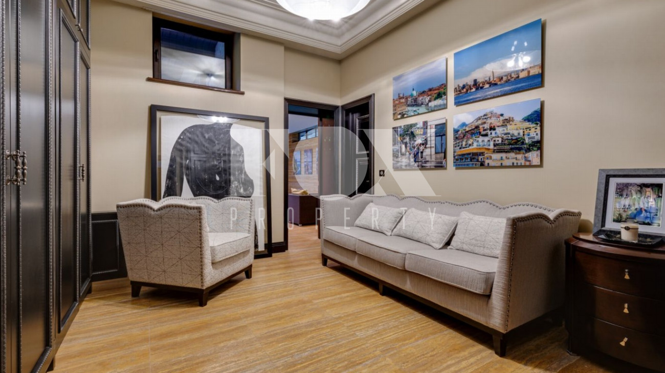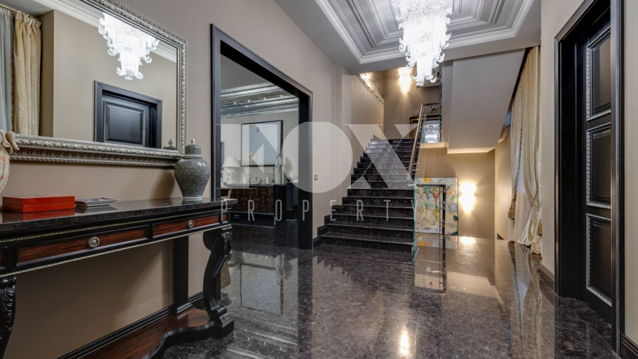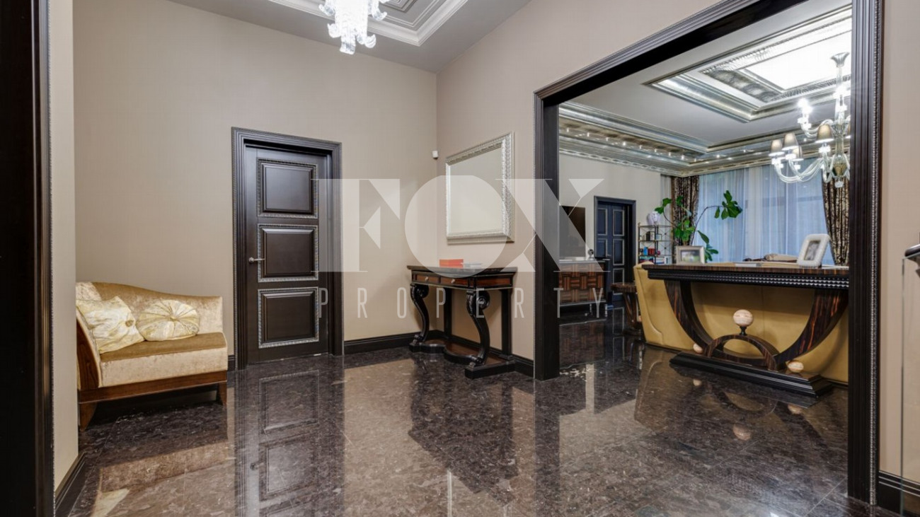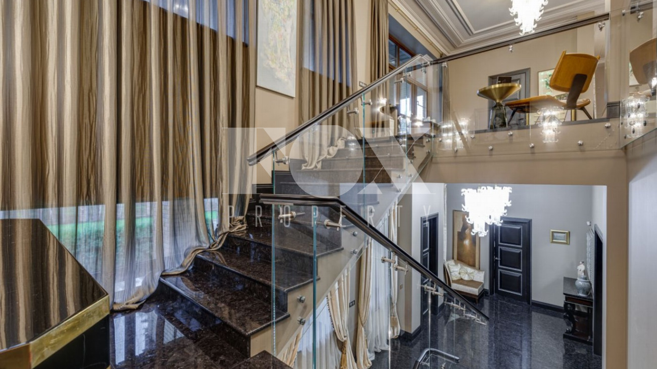 Стильный и уютный дом общей площадью 1135 кв.м расположен в клубном поселке на 33 дома на Новорижском шоссе. Индивидуальный архитектурный проект, в доме выполнена дизайнерская отделка дорогими европейскими материалами. Планировка предусматривает просторную гостиную с камином, 5 спален, кабинет, СПА-зона с бассейном и хамам, домашний кинотеатр, тренажерный зал, гараж на 2м/м.