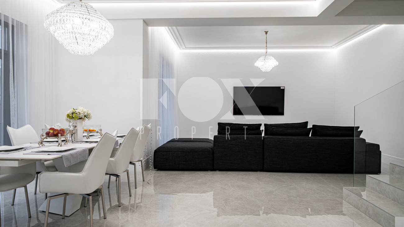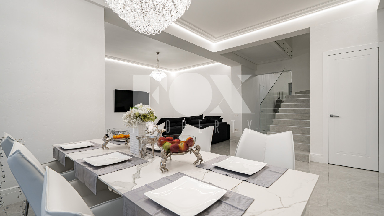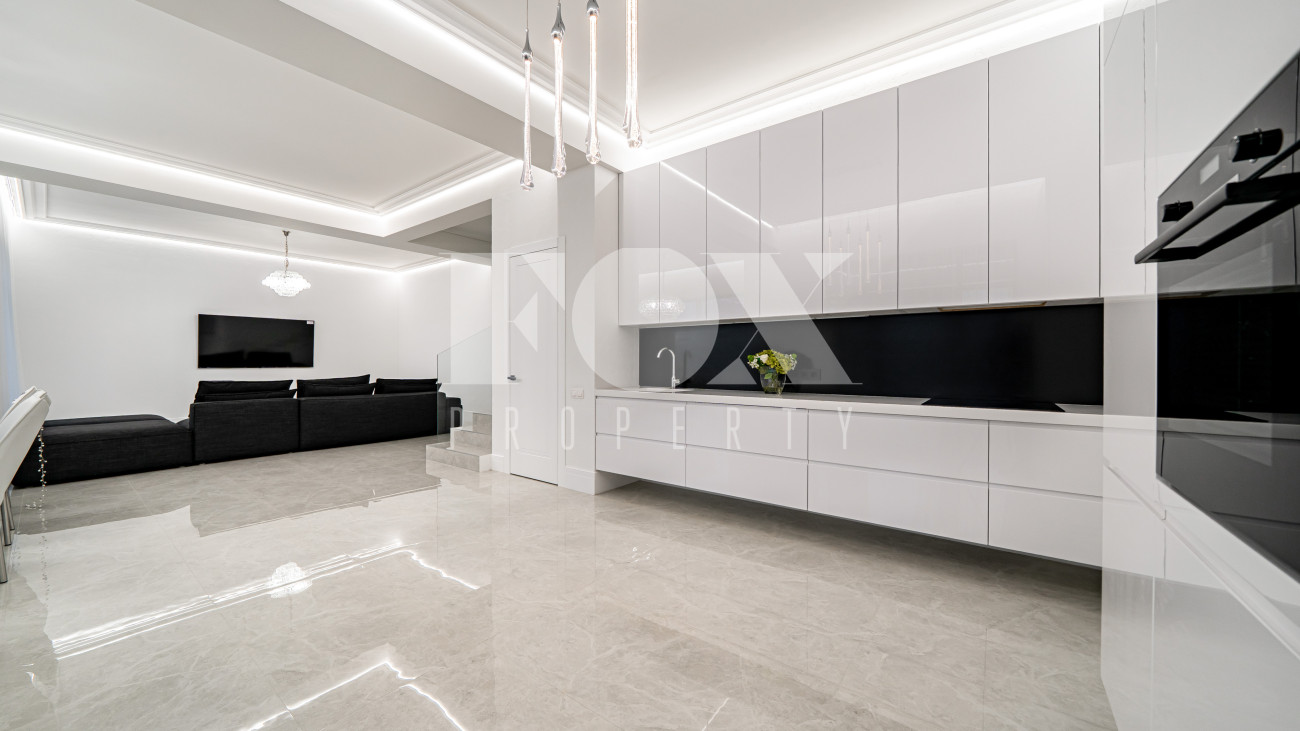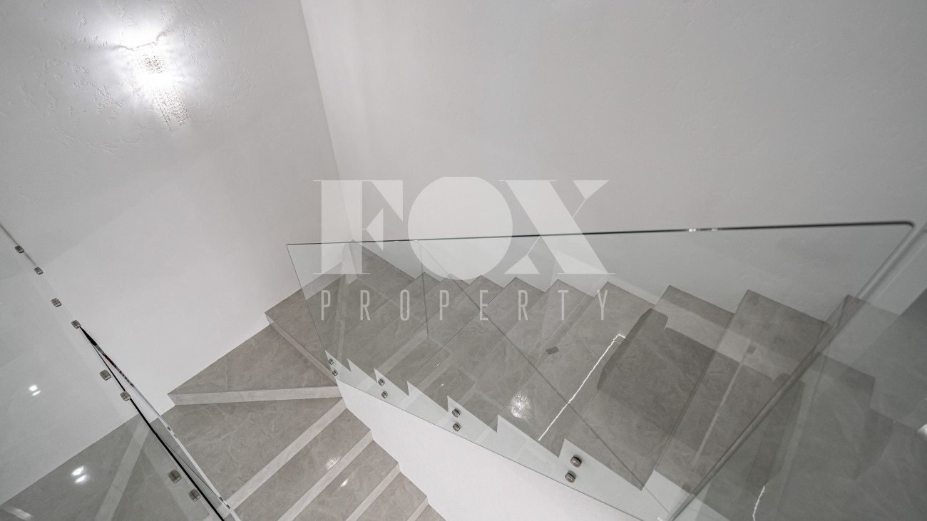 Дом находится в состоянии white box: полы — керамогранит, стены — подготовлены под покраску, потолки — полностью завершены.
