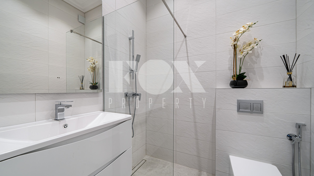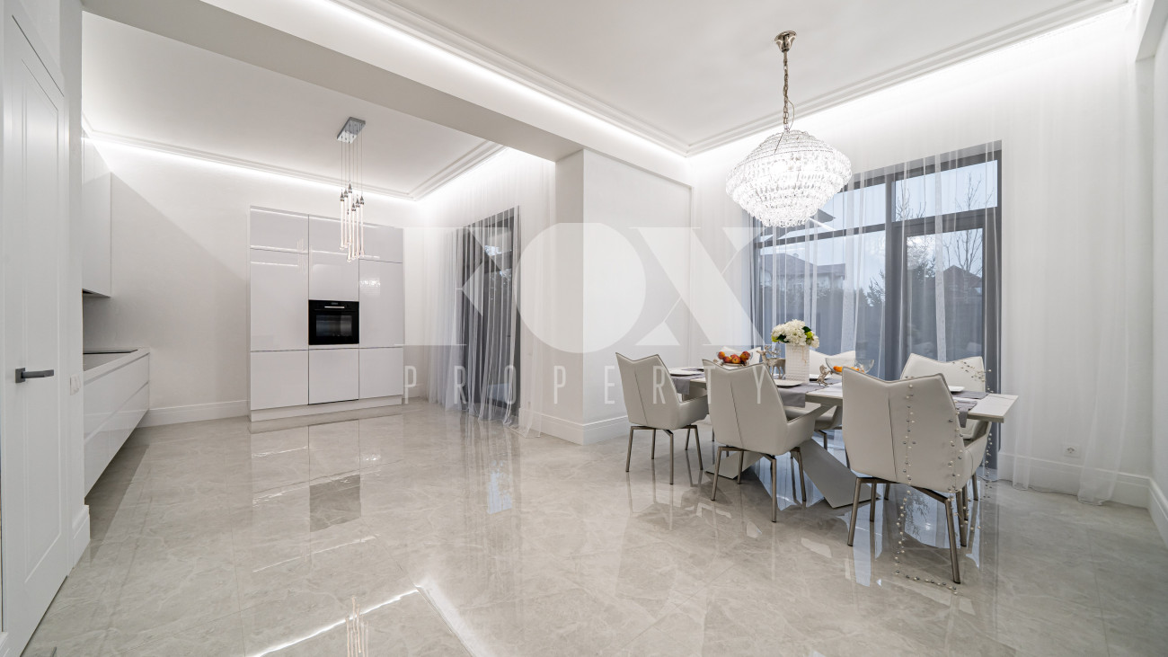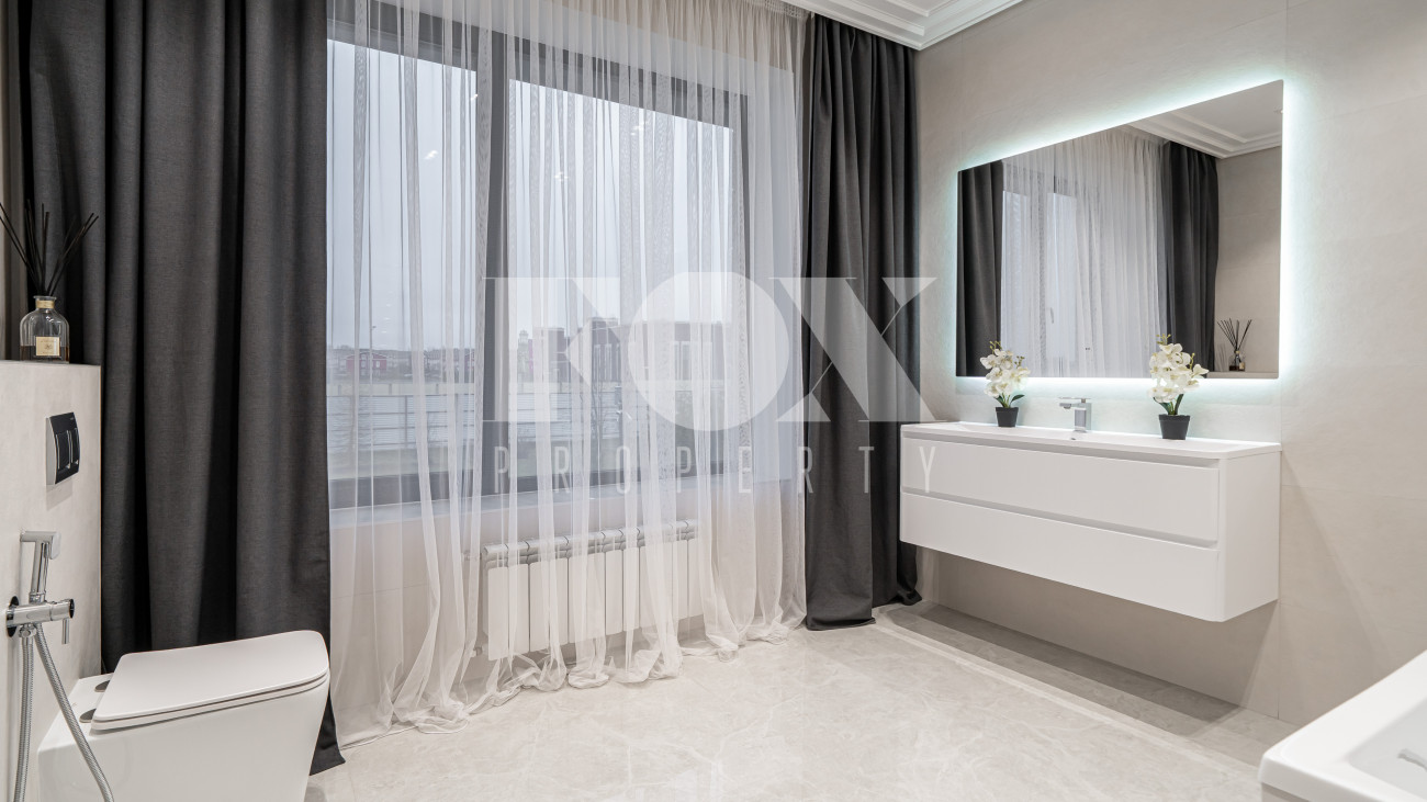 Все санузлы оборудованы качественной сантехникой. В комплект входят шторы, люстры, диван. Кухня подготовлена по дизайн-проекту. На участке высажены крупномеры.