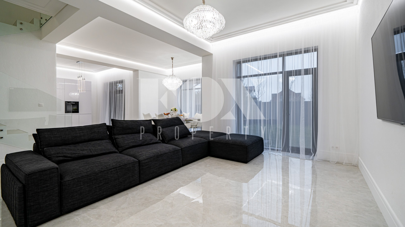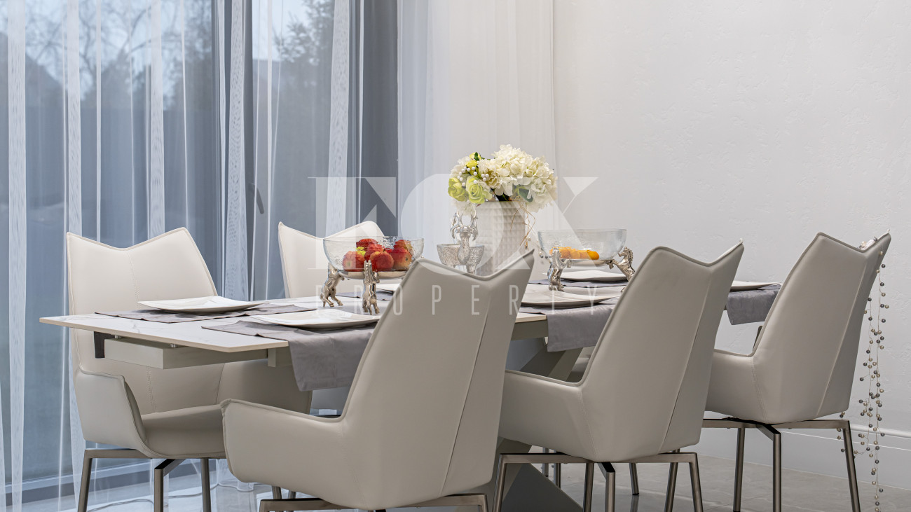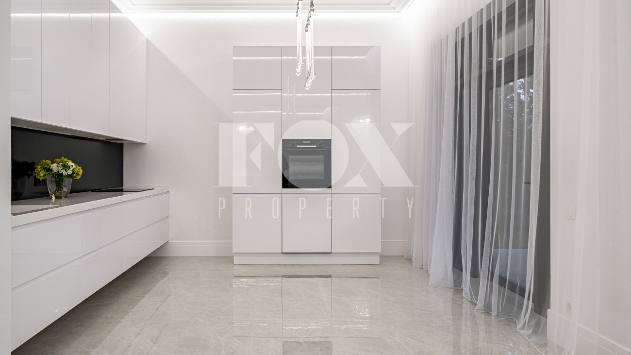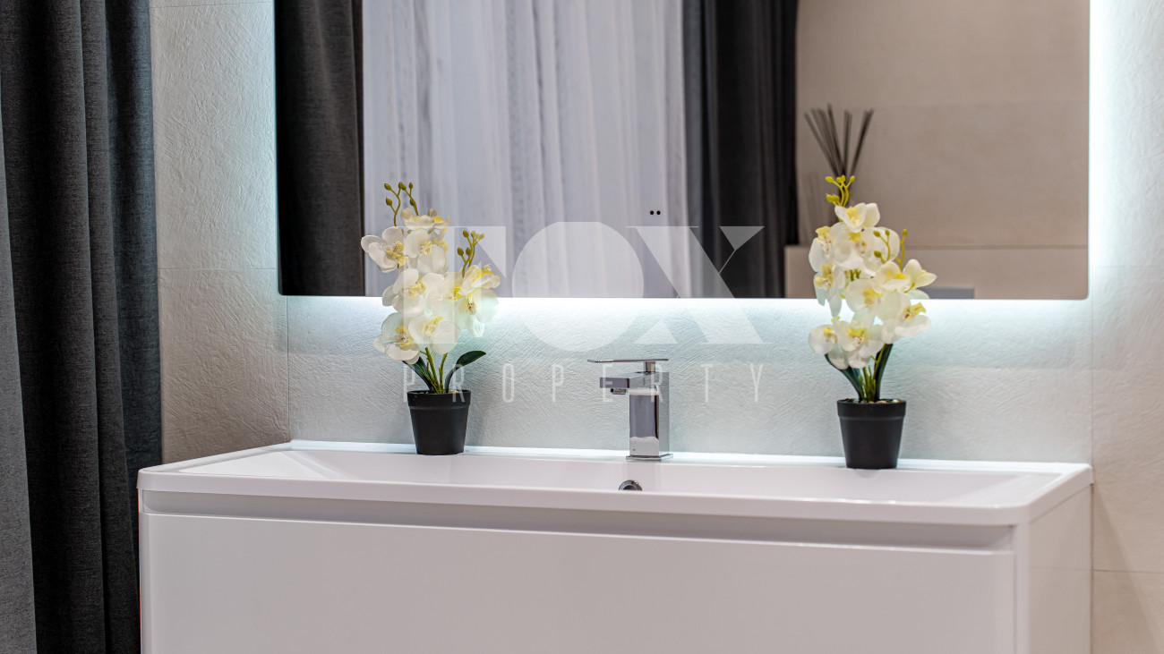 Все санузлы оборудованы качественной сантехникой. В комплект входят шторы, люстры, диван. Кухня подготовлена по дизайн-проекту. На участке высажены крупномеры.