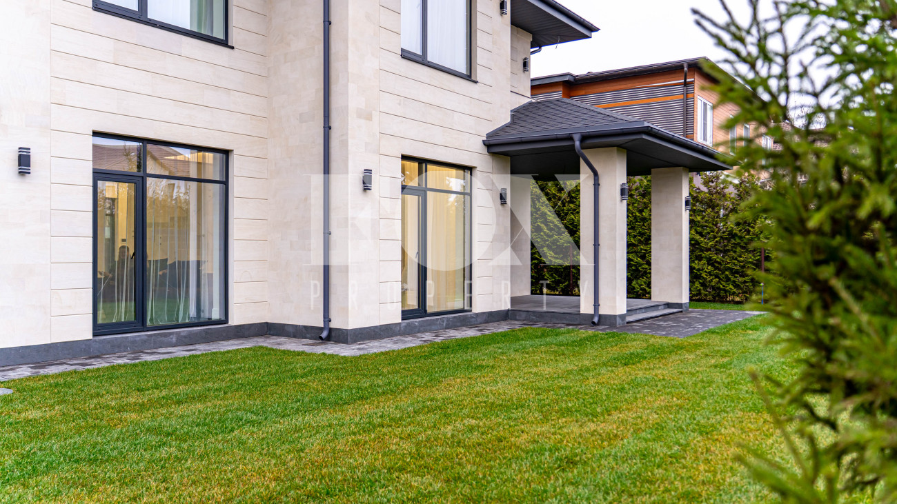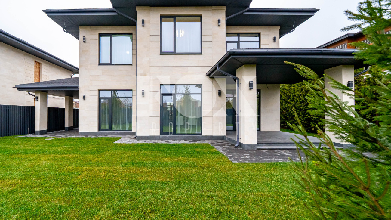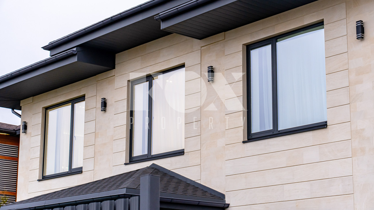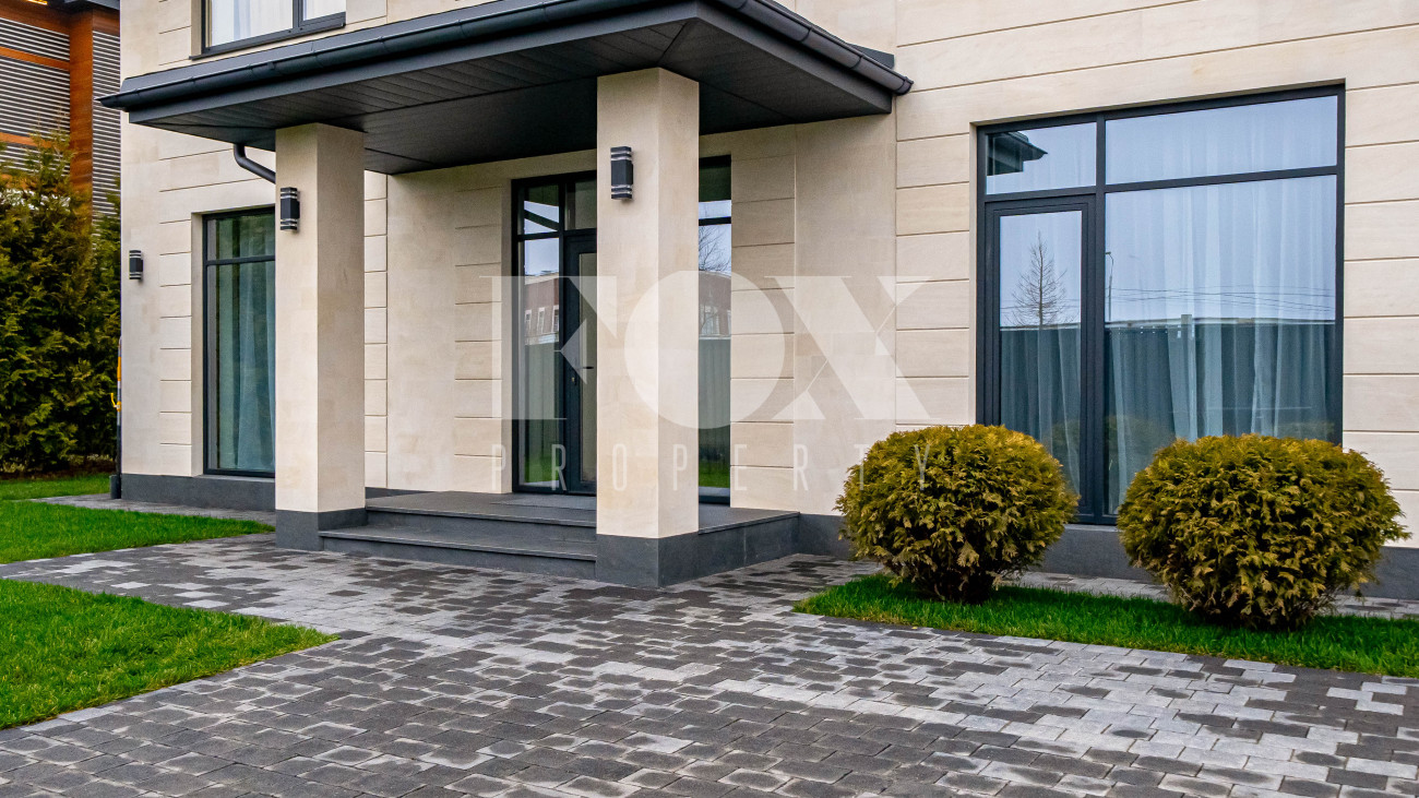 Кирпичный дом площадью 250 м² расположен в охраняемом коттеджном посёлке «Новорижский», всего в 24 км от Москвы. Участок 6,2 сотки, открытого типа, что даёт широкие возможности для ландшафтного оформления.