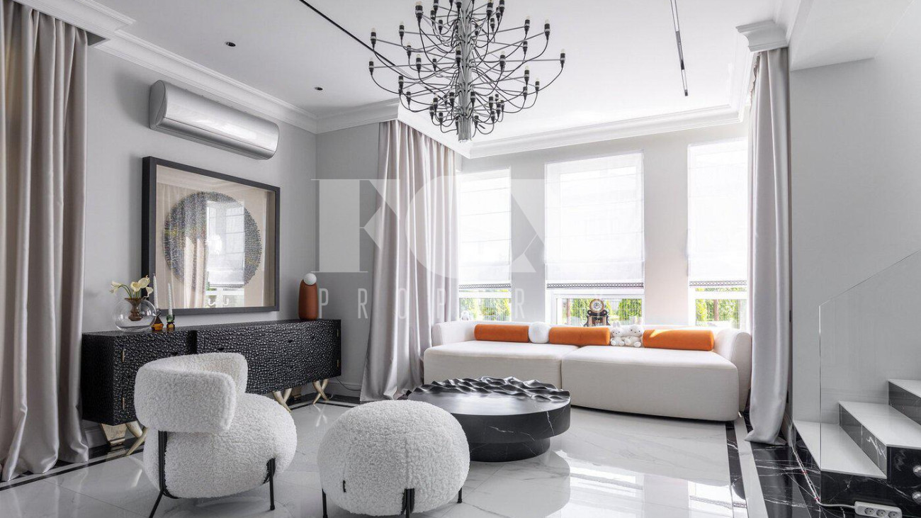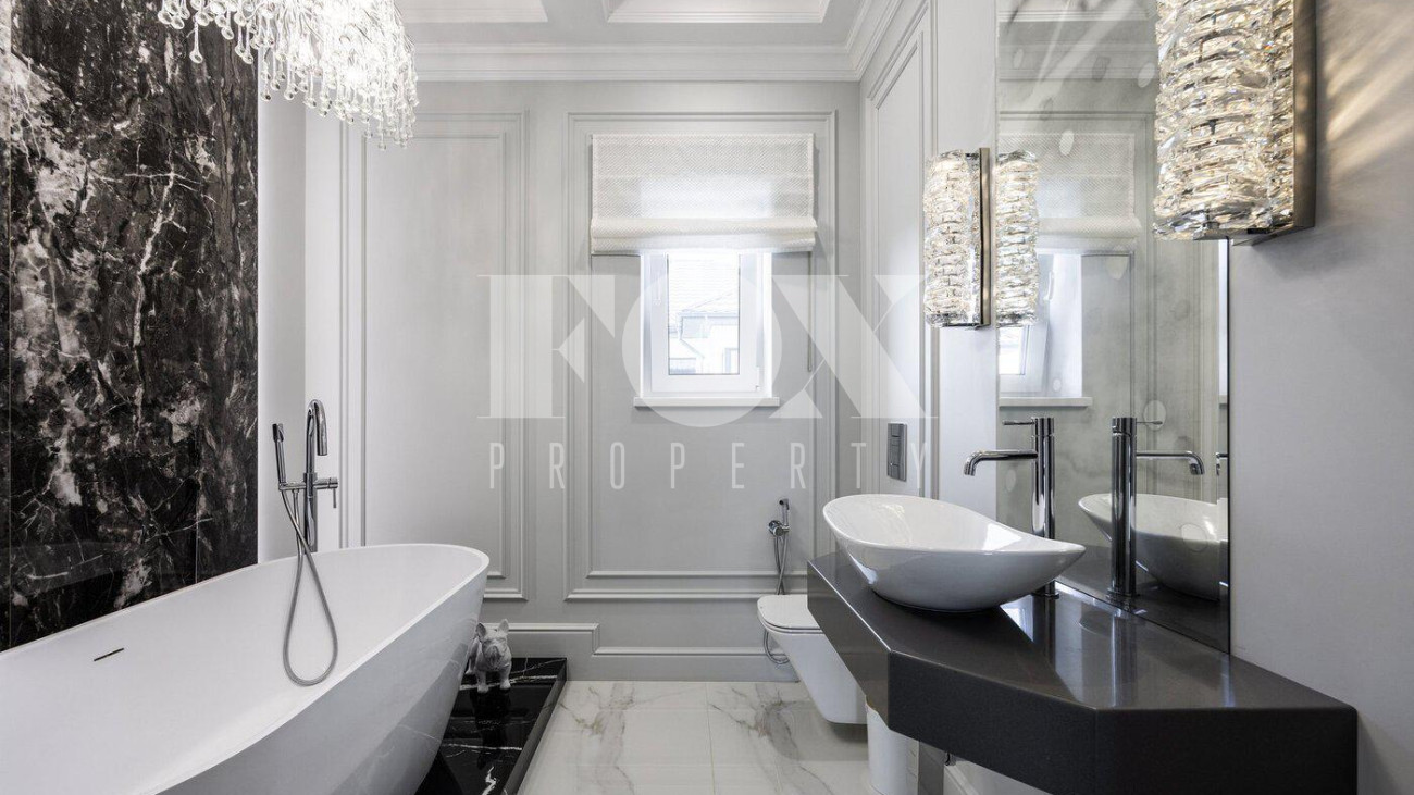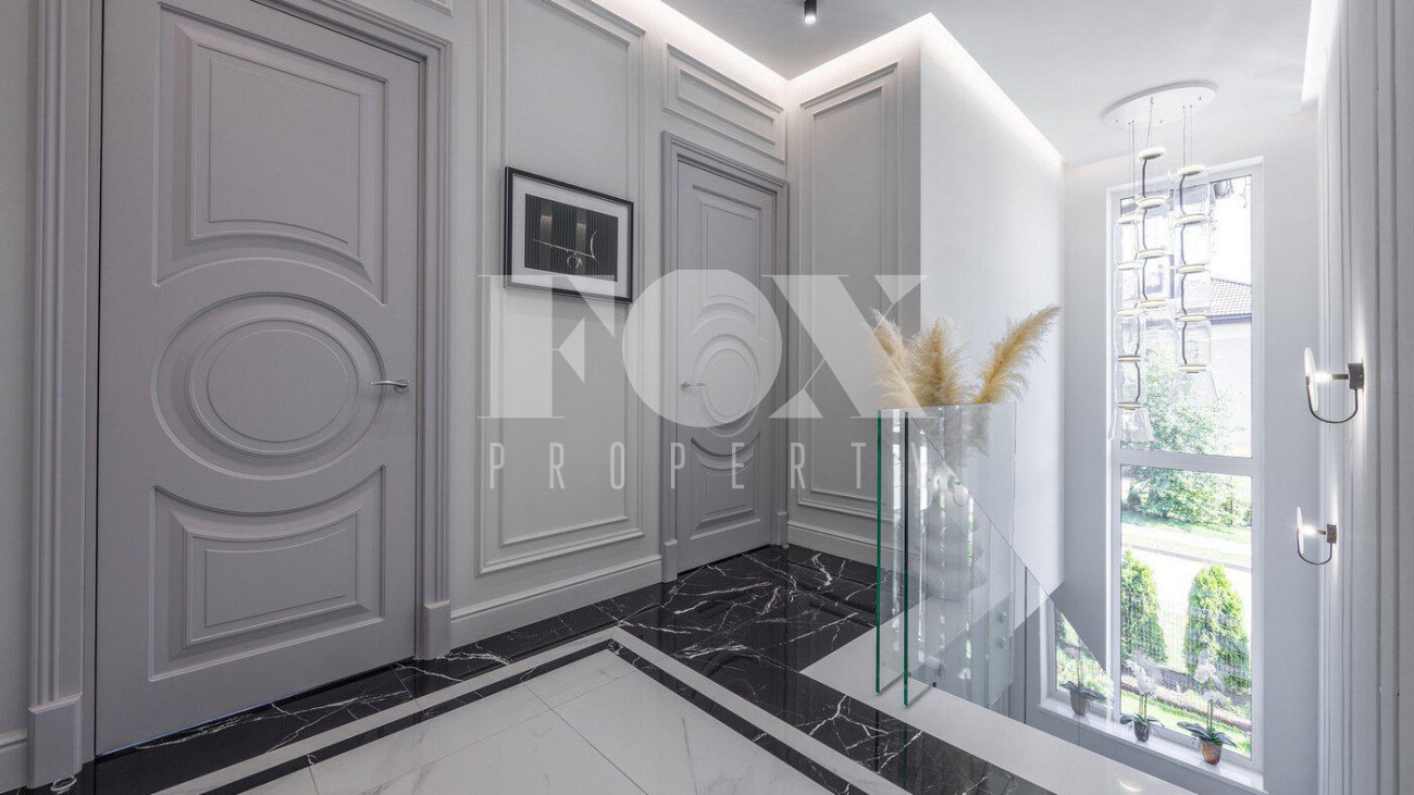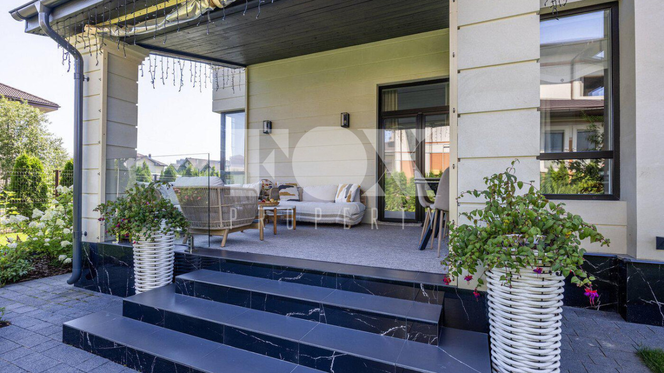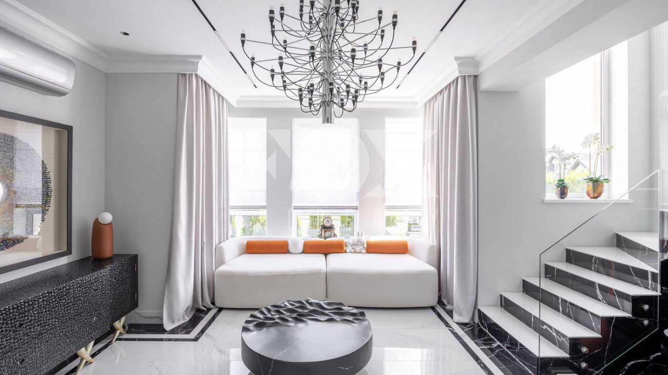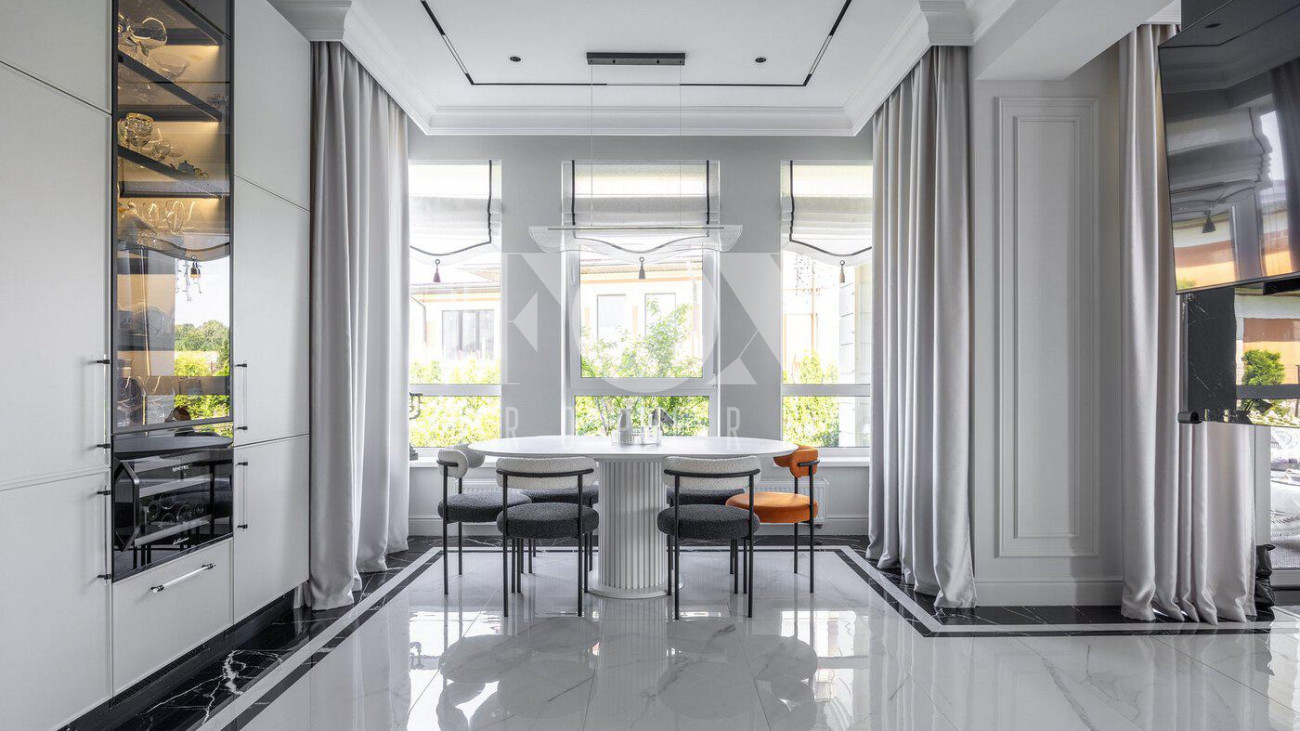 В доме выполнен дизайнерский ремонт, полностью меблирован и укомплектован всей необходимой мебелью, готов к проживанию. Кухня укомплектована профессиональной встроенной техникой Asko и Korting. Высокие потолки и панорамные окна создают атмосферу света и простора. Для безопасности установлена современная охранная система с датчиками движения и контроля доступа, а также климат-контроль с мультисплит-системой кондиционирования и автоматической регулировкой отопления. Также установлена профессиональная система очистки воды.