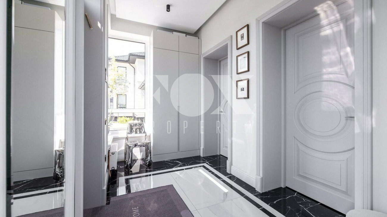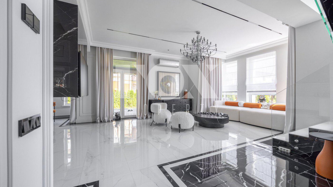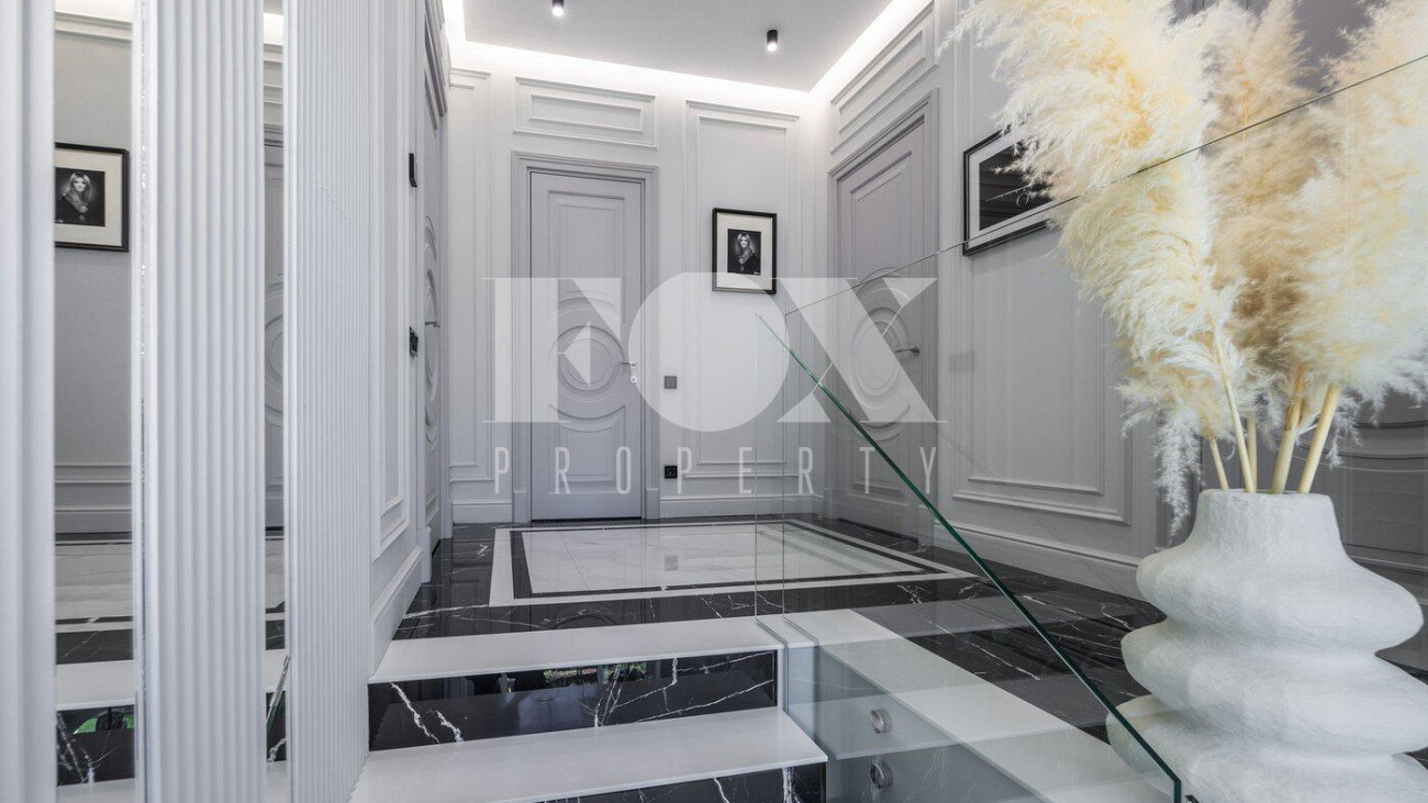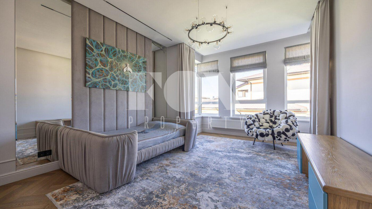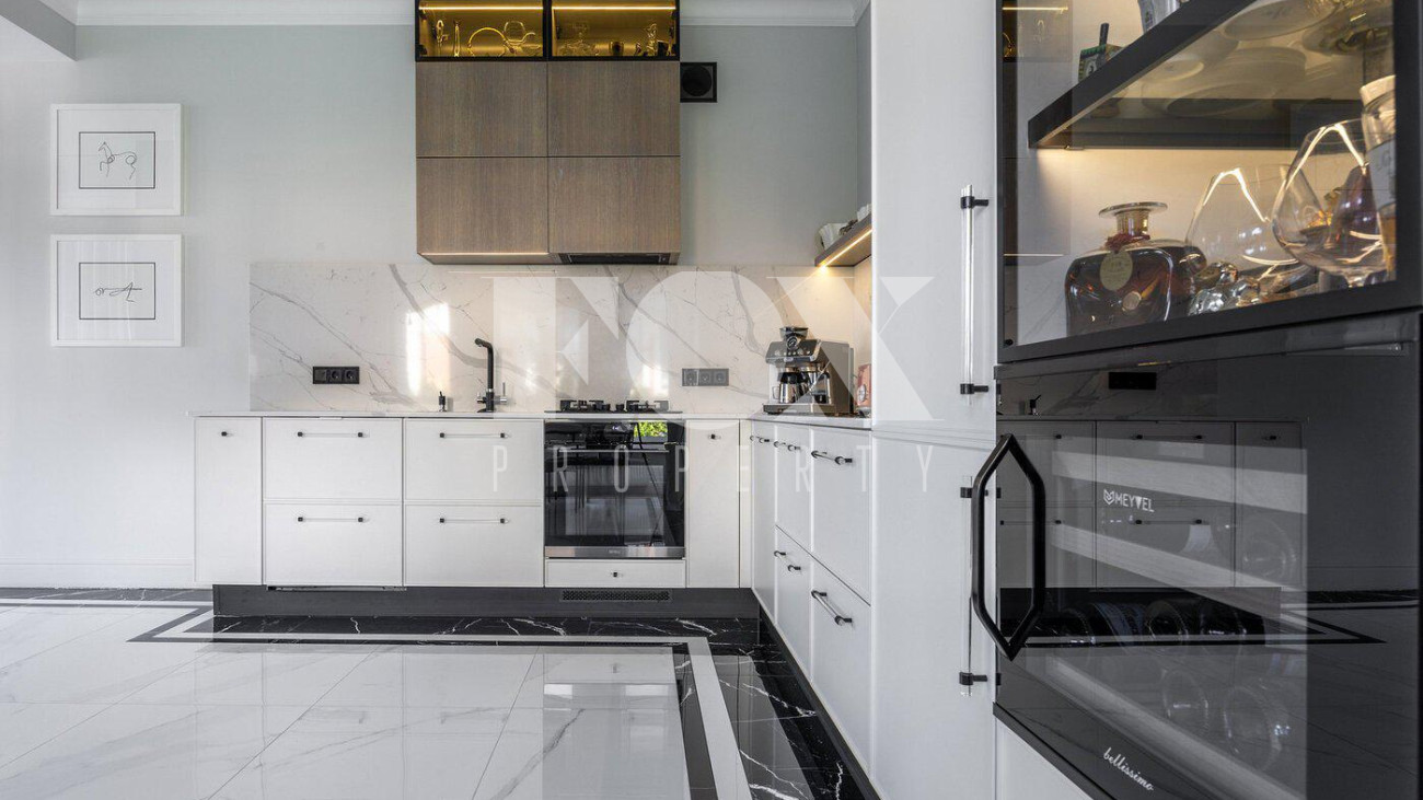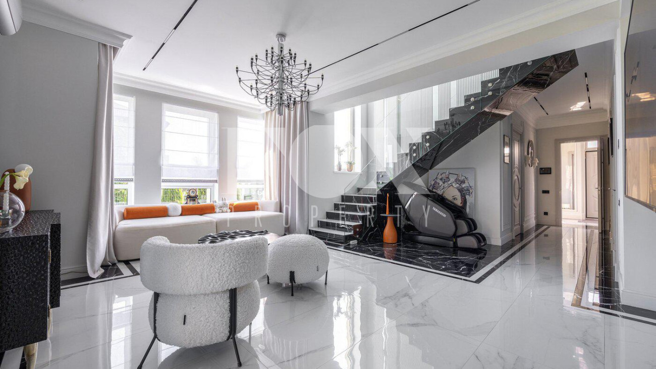 В доме выполнен дизайнерский ремонт, полностью меблирован и укомплектован всей необходимой мебелью, готов к проживанию. Кухня укомплектована профессиональной встроенной техникой Asko и Korting. Высокие потолки и панорамные окна создают атмосферу света и простора. Для безопасности установлена современная охранная система с датчиками движения и контроля доступа, а также климат-контроль с мультисплит-системой кондиционирования и автоматической регулировкой отопления. Также установлена профессиональная система очистки воды.