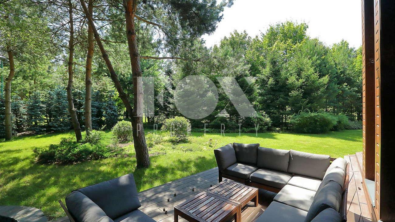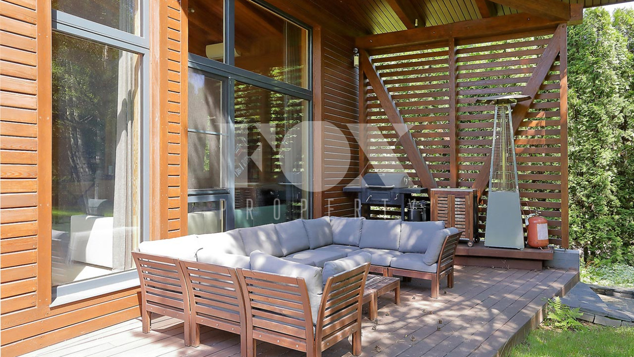 Просторная терраса выходит на красивый ухоженный участок, позволяя наслаждаться природой без выхода за пределы участка.