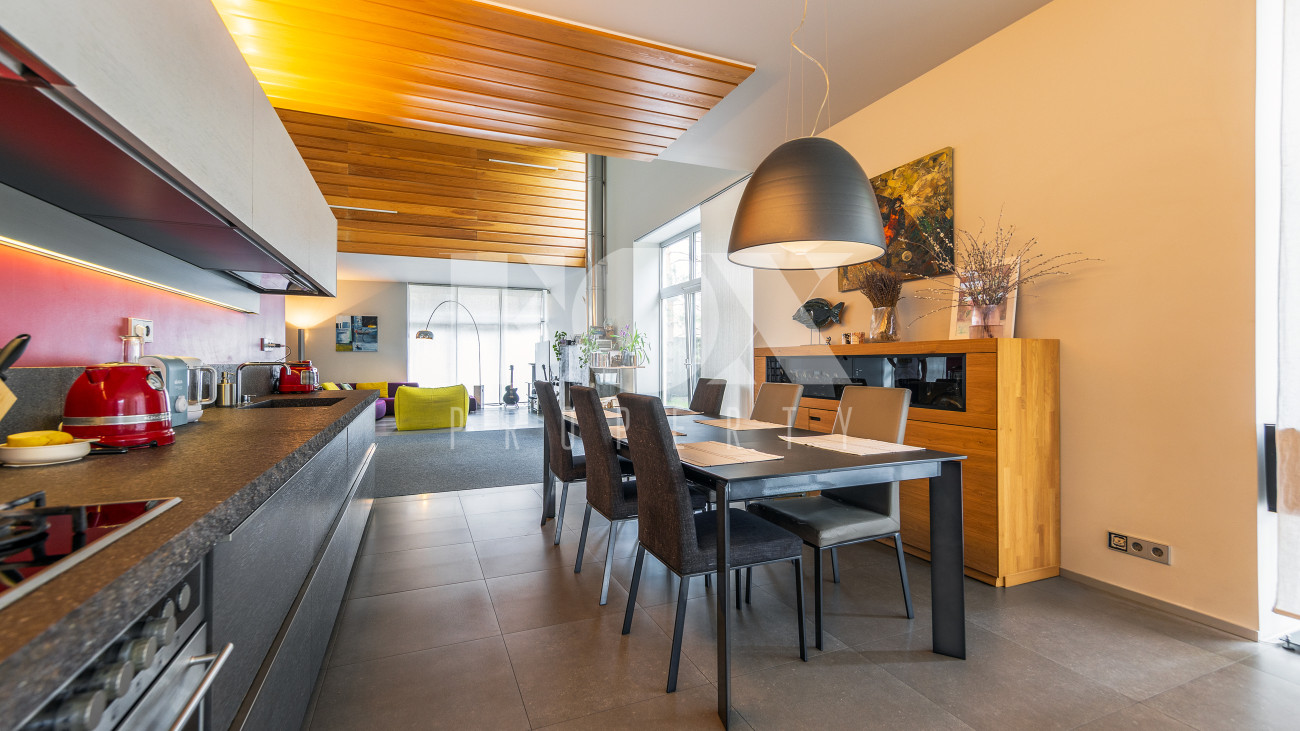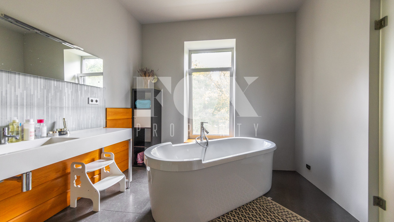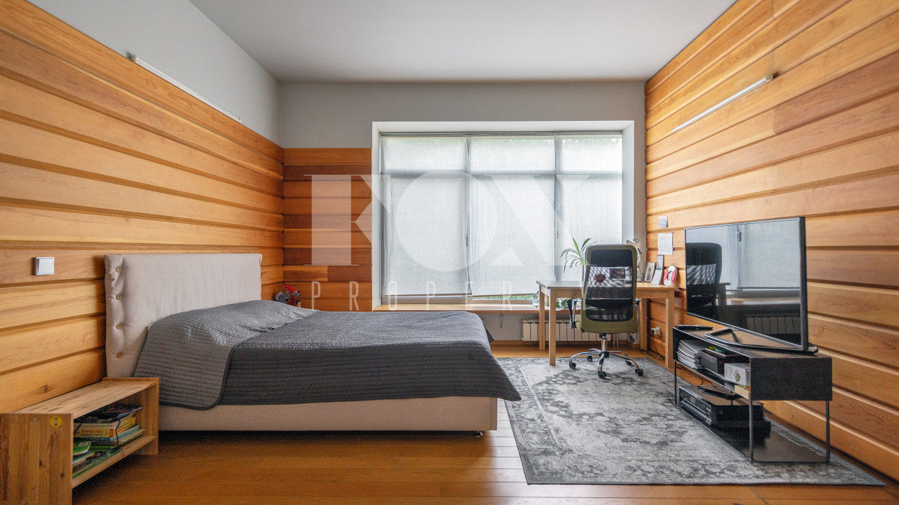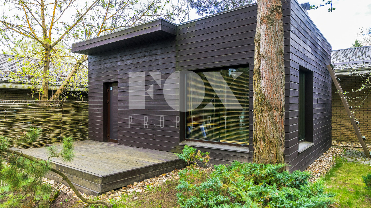 Стильный дом 265.9 кв.м (архитектор Евгений Асс) на лесном участке 20.85 сотки. На участке баня, гостевой дом с гаражом на 3 м/м, дом для персонала