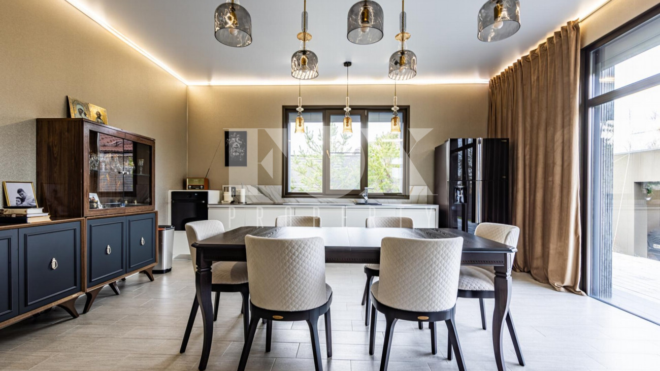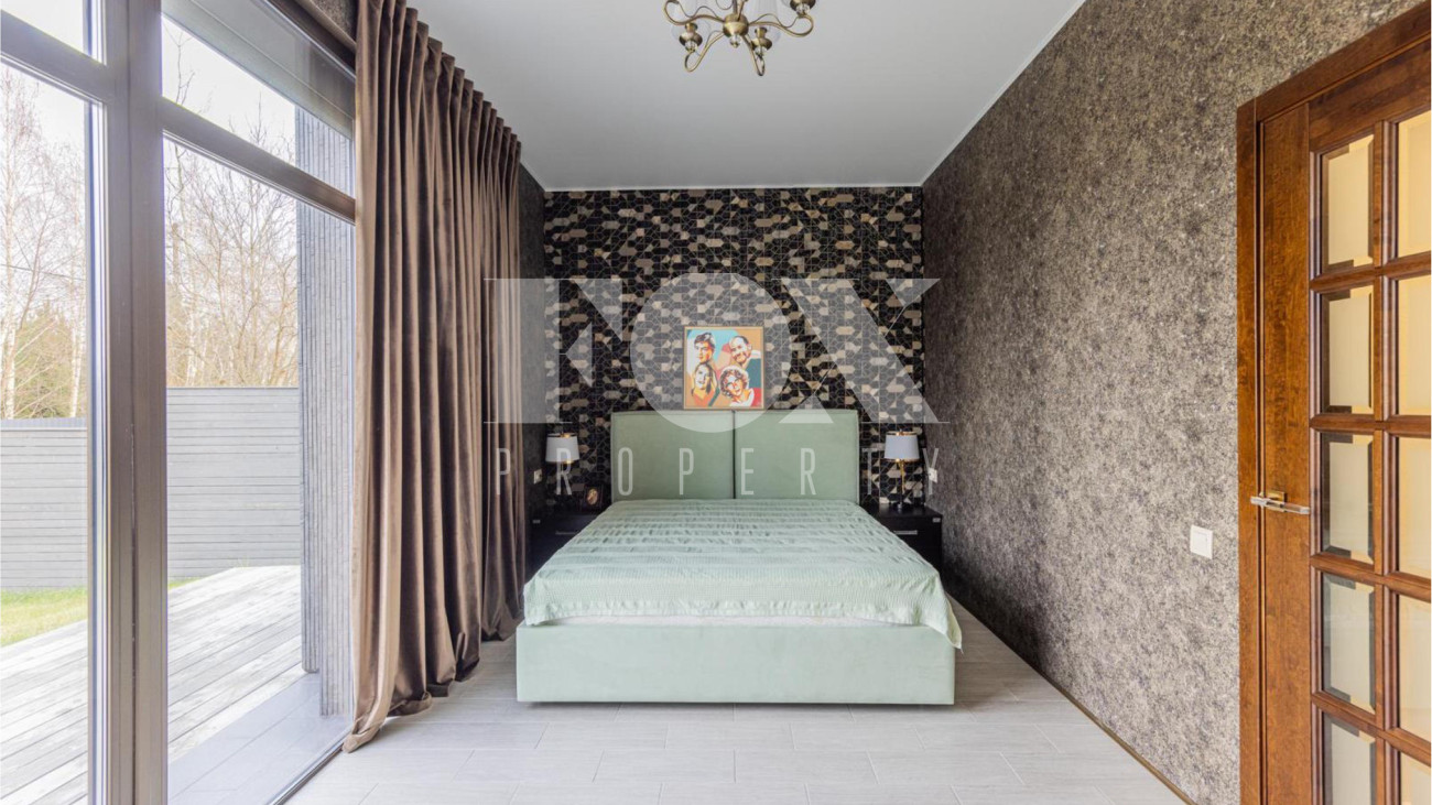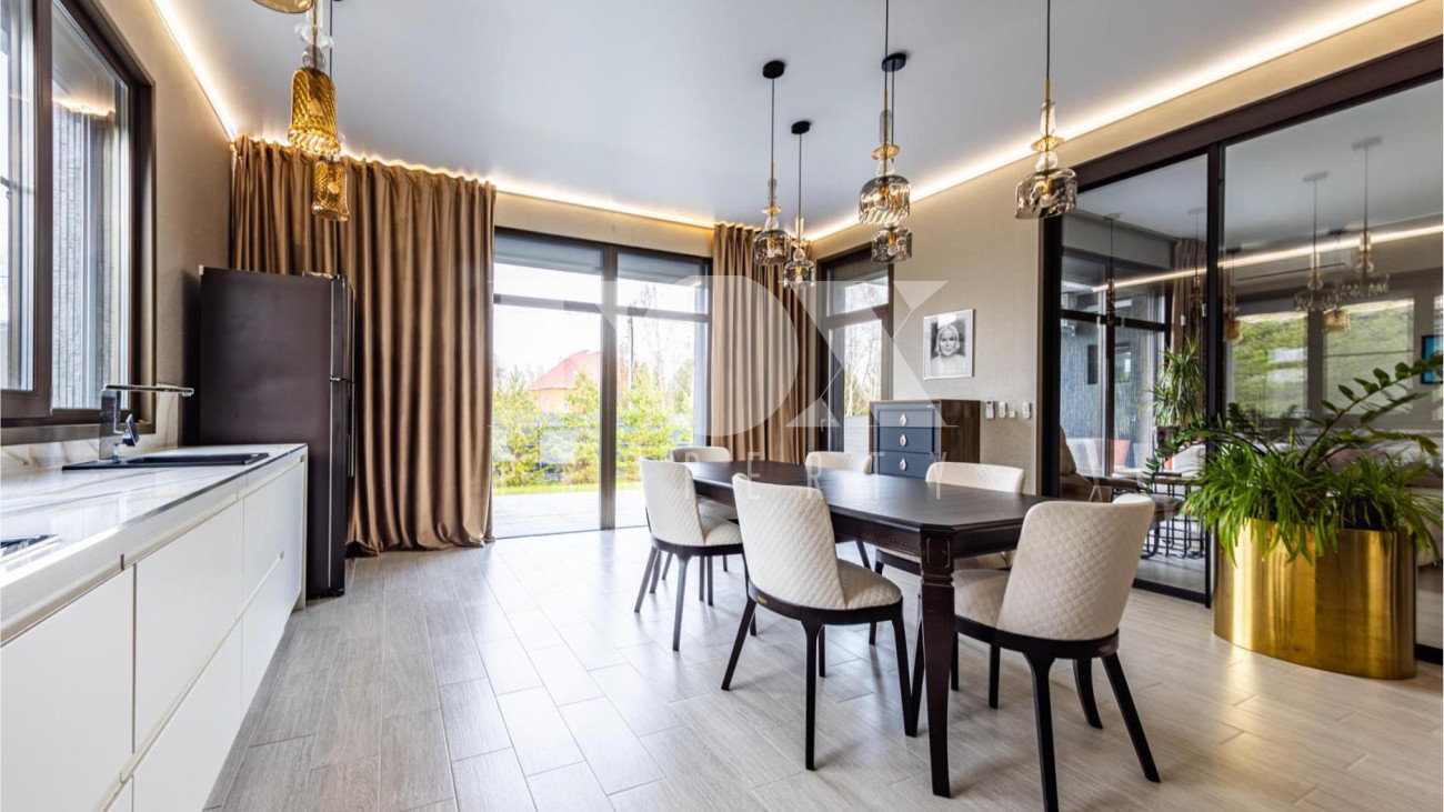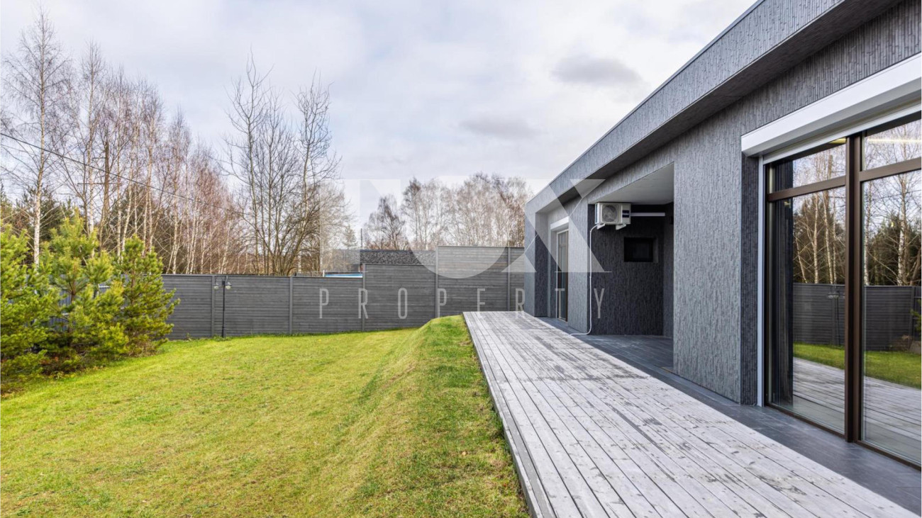 Новый одноэтажный дом в современном стиле площадью 234 кв.м в деревне Борки в 18 км от МКАД по Рублево-Успенскому шоссе. Полностью готов для проживания, продается с мебелью. В доме 4 спальни, 2 санузла, кухня-столовая, гостиная, прихожая, котельная, хозяйственная комната. Расположен в тихой части, вдали от дороги.